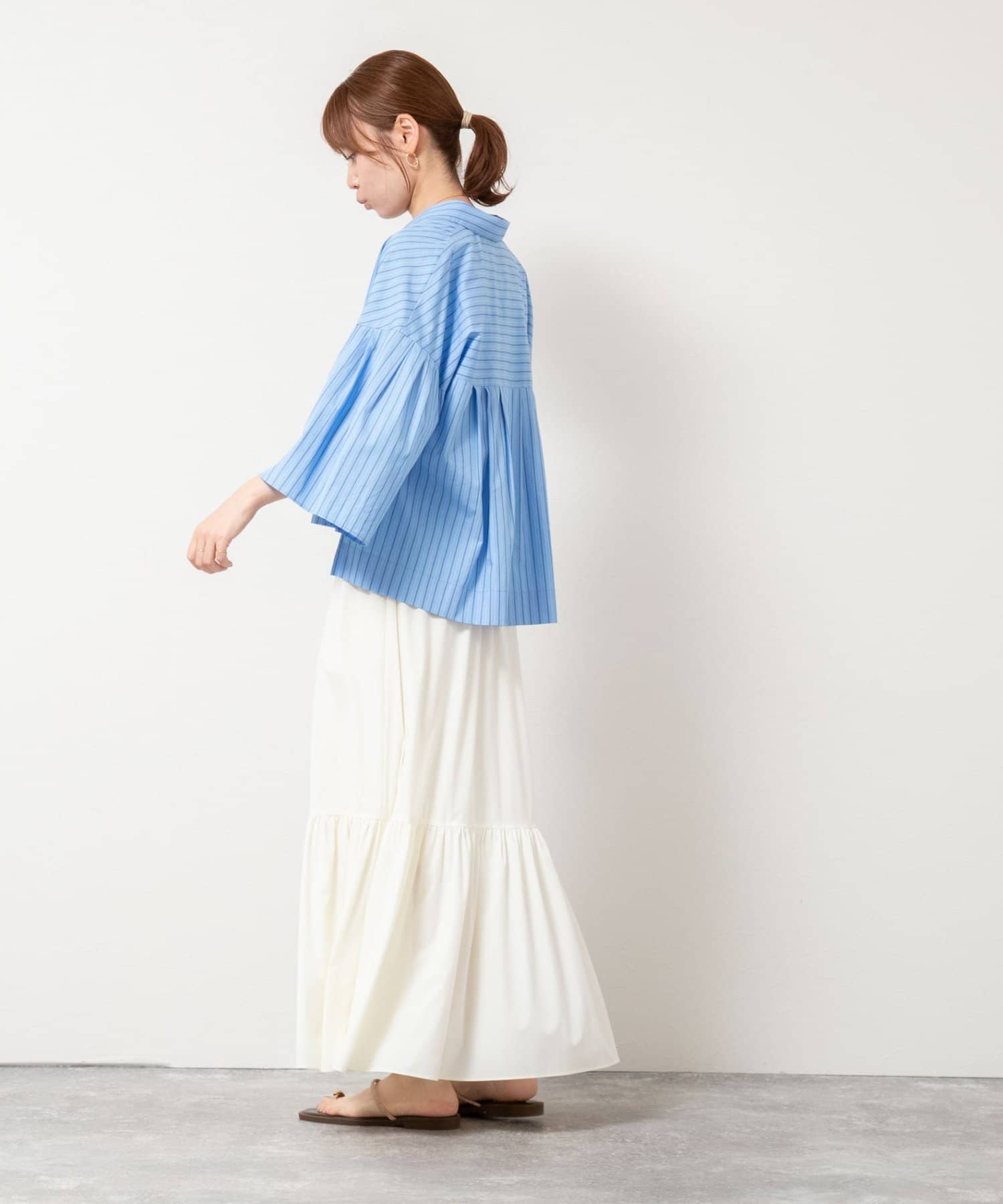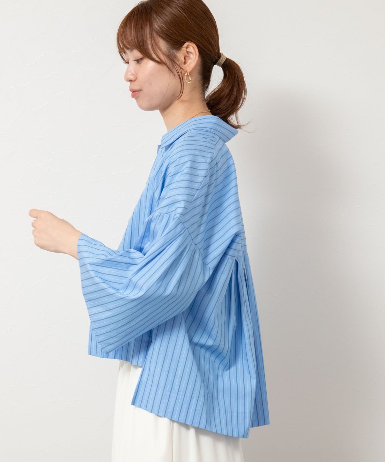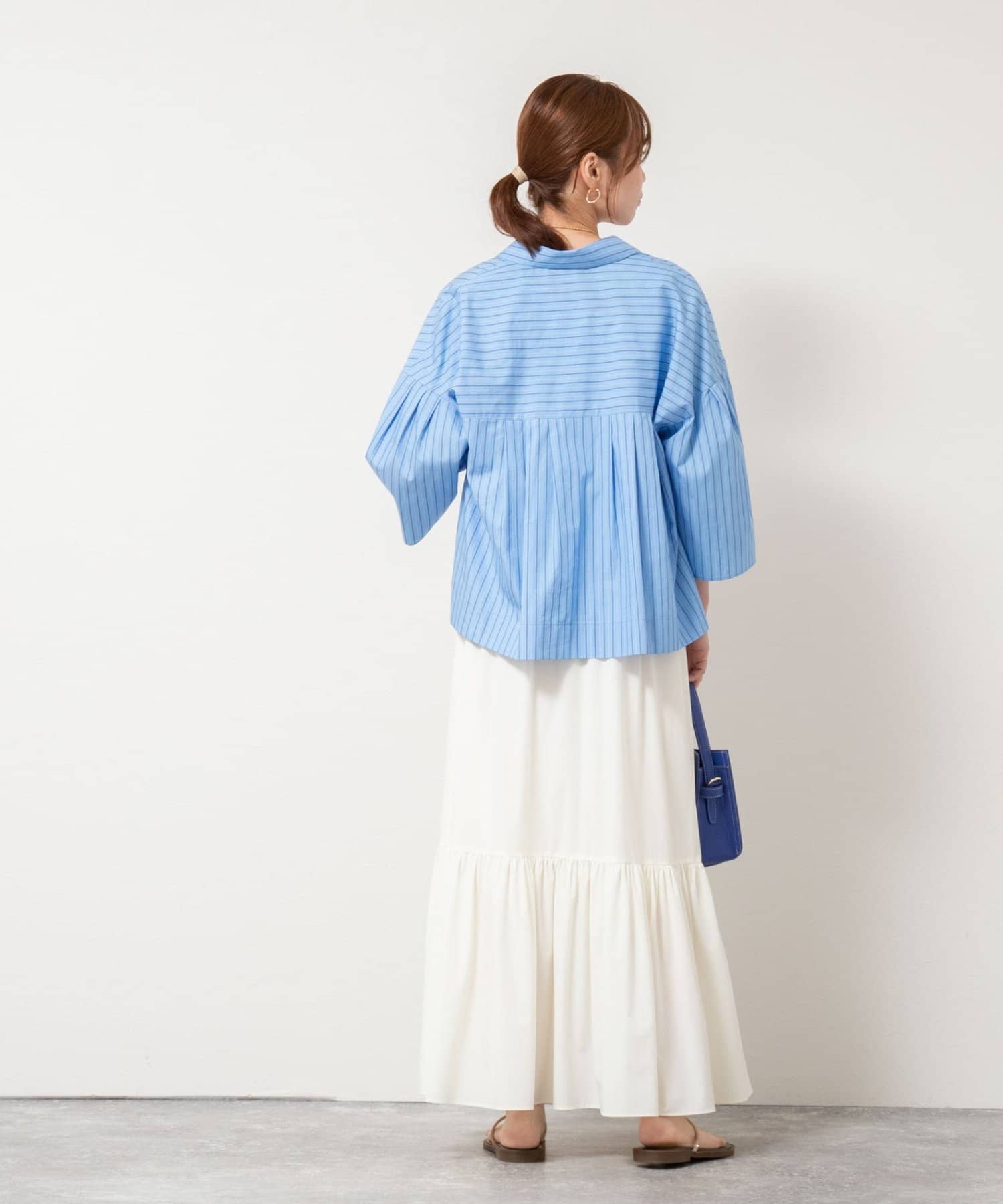 ・まだ暑い秋口に着やすい肌離れ感のあるシルエットのブラウス