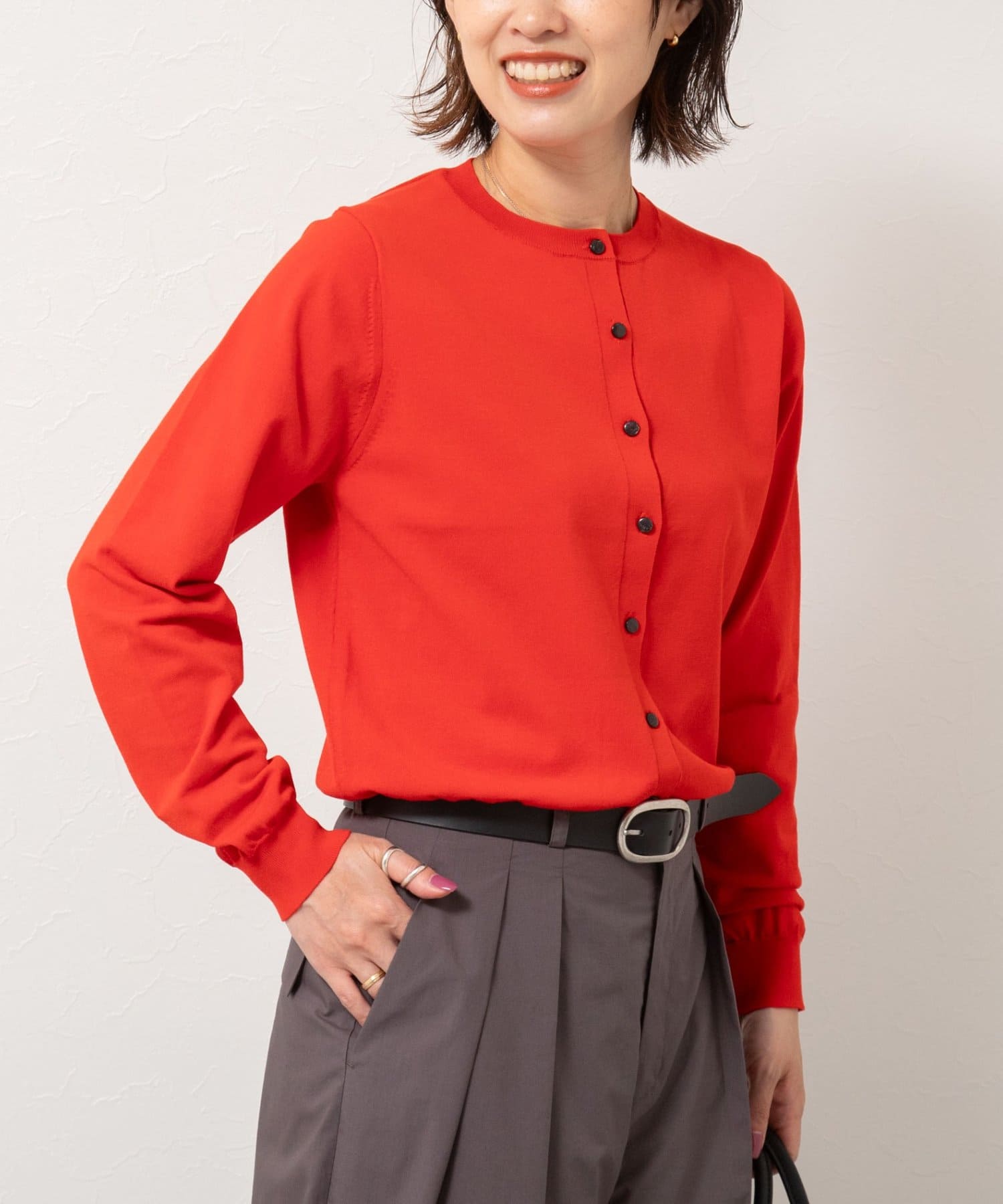 《手洗い可能》《アンサンブル対応》天竺クルーネックカーディガン
