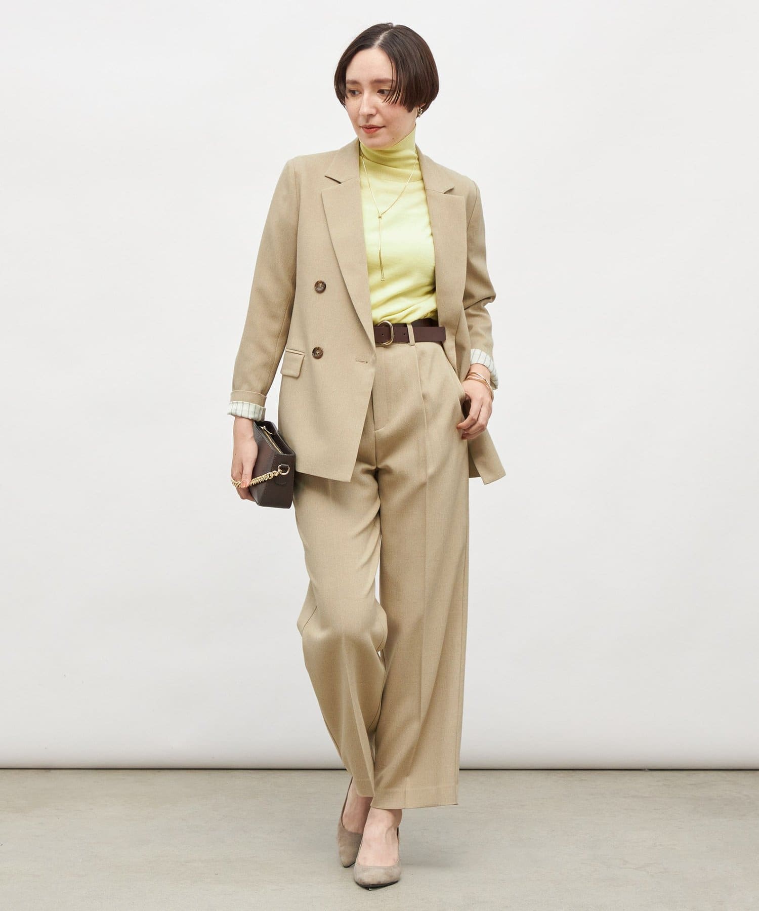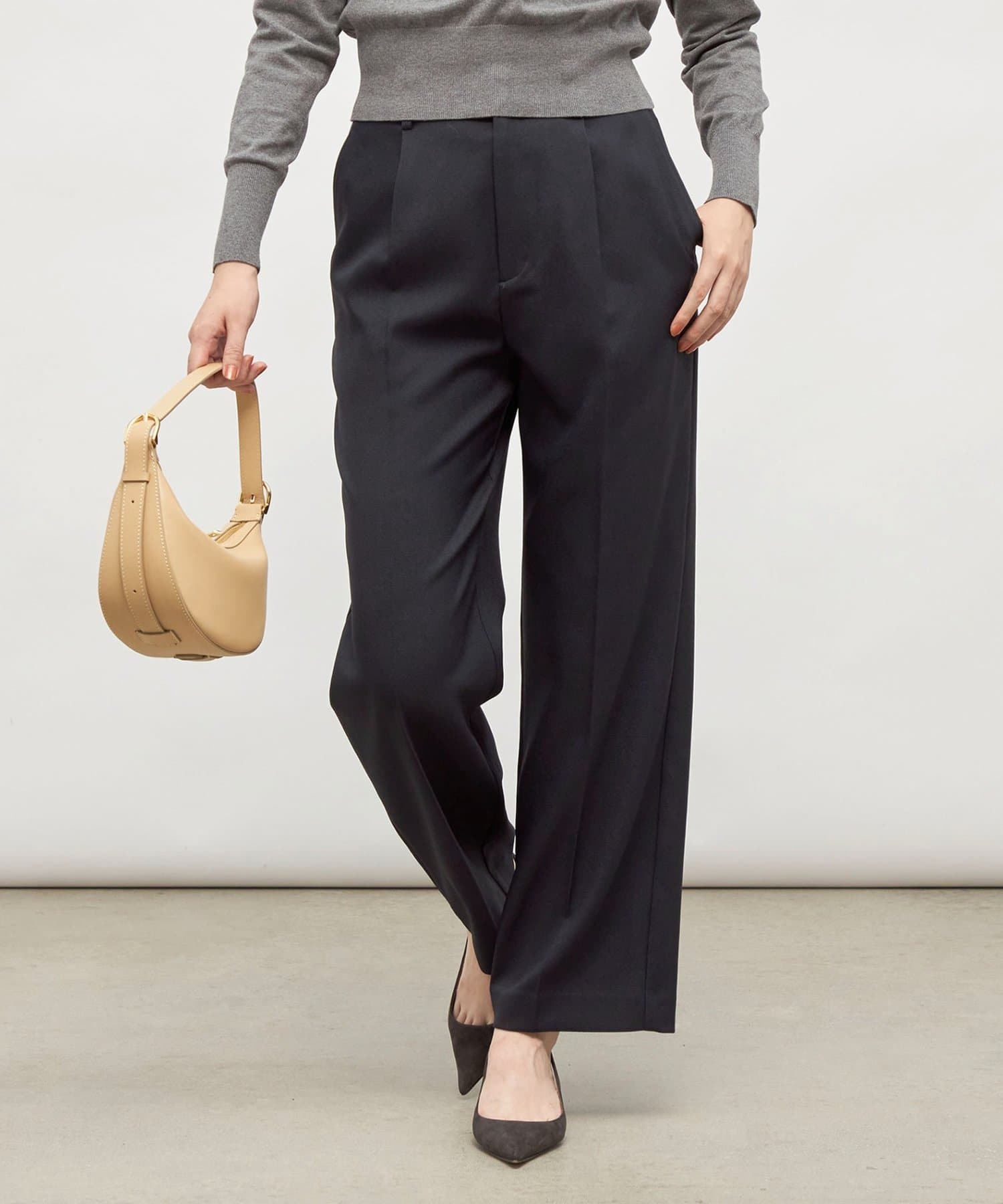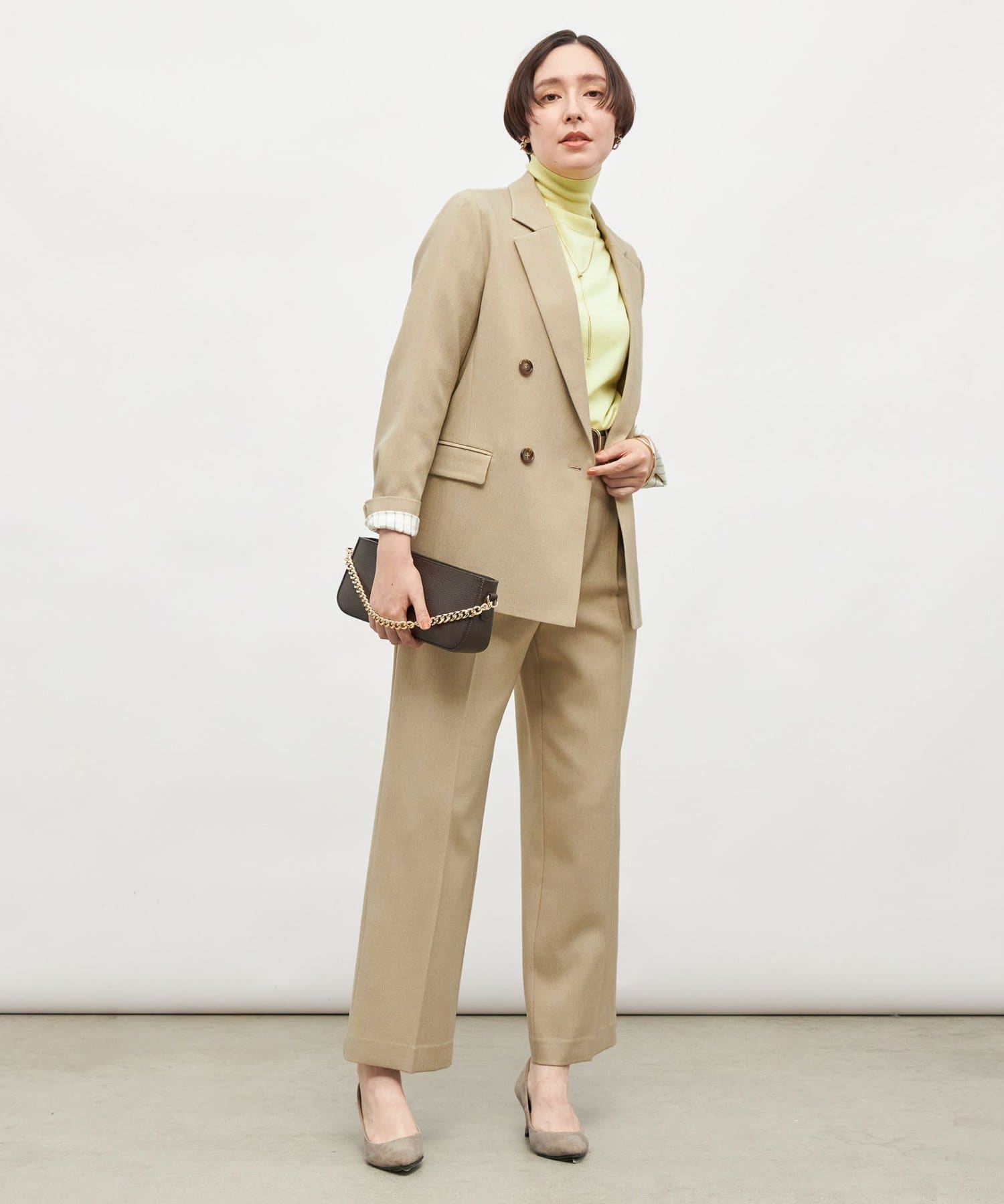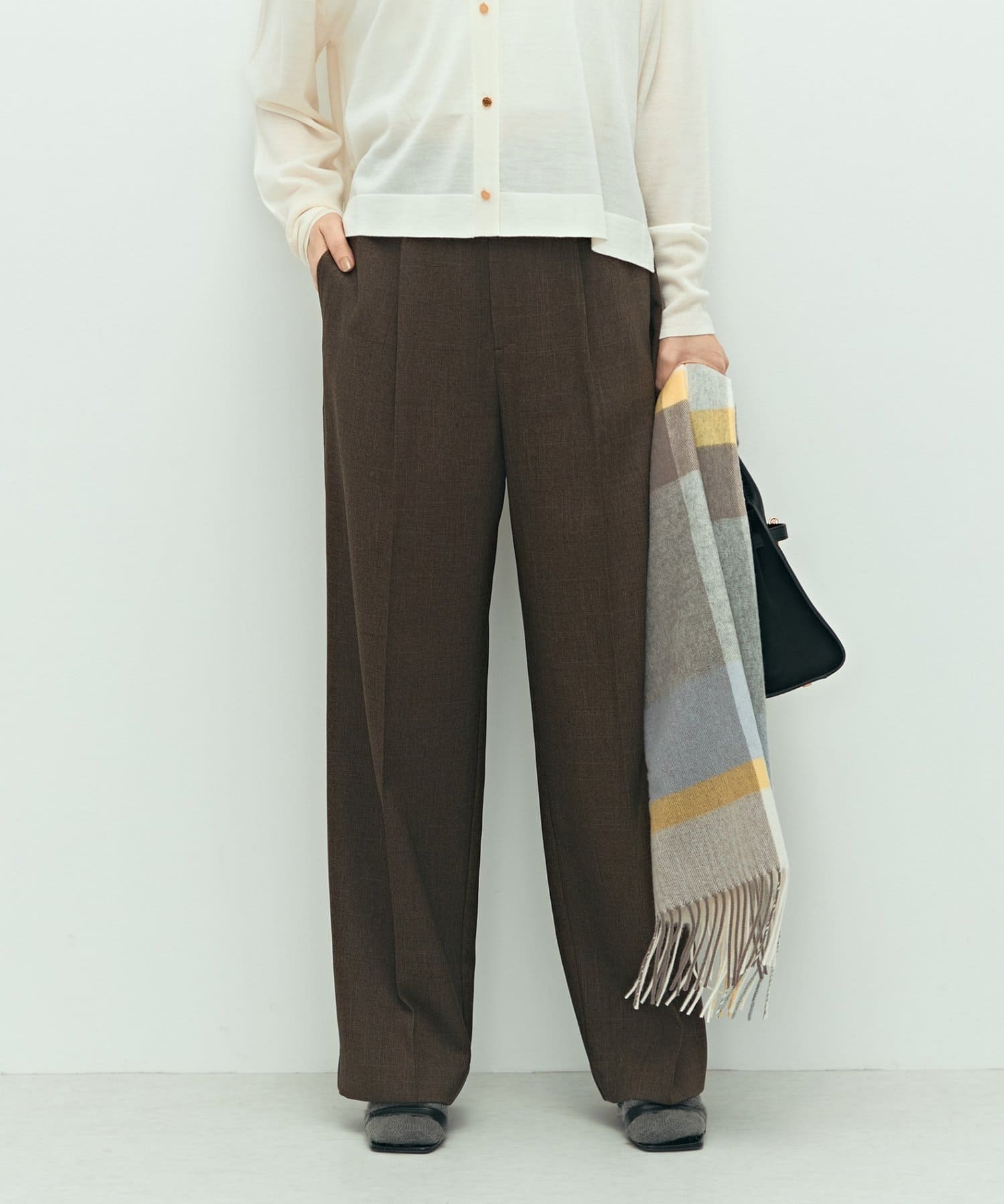 《セットアップ対応》ウォッシャブルウール調セミワイドパンツ