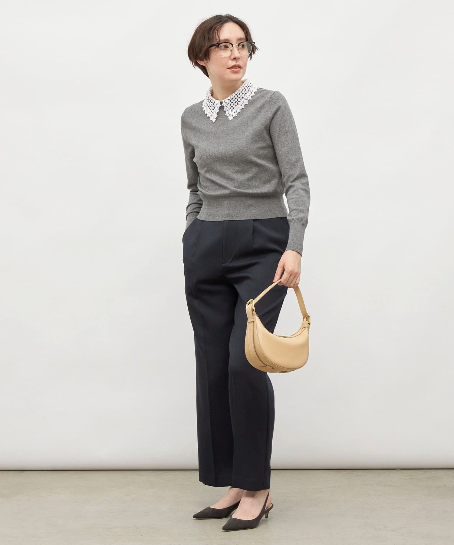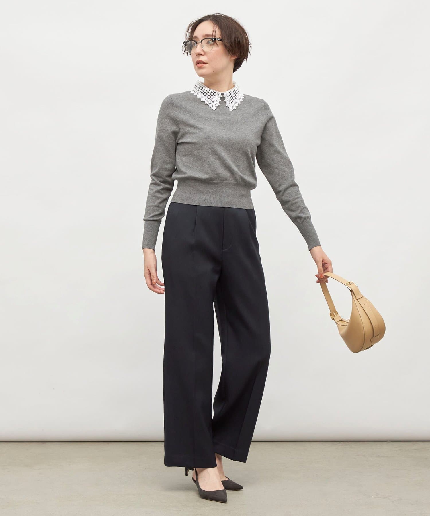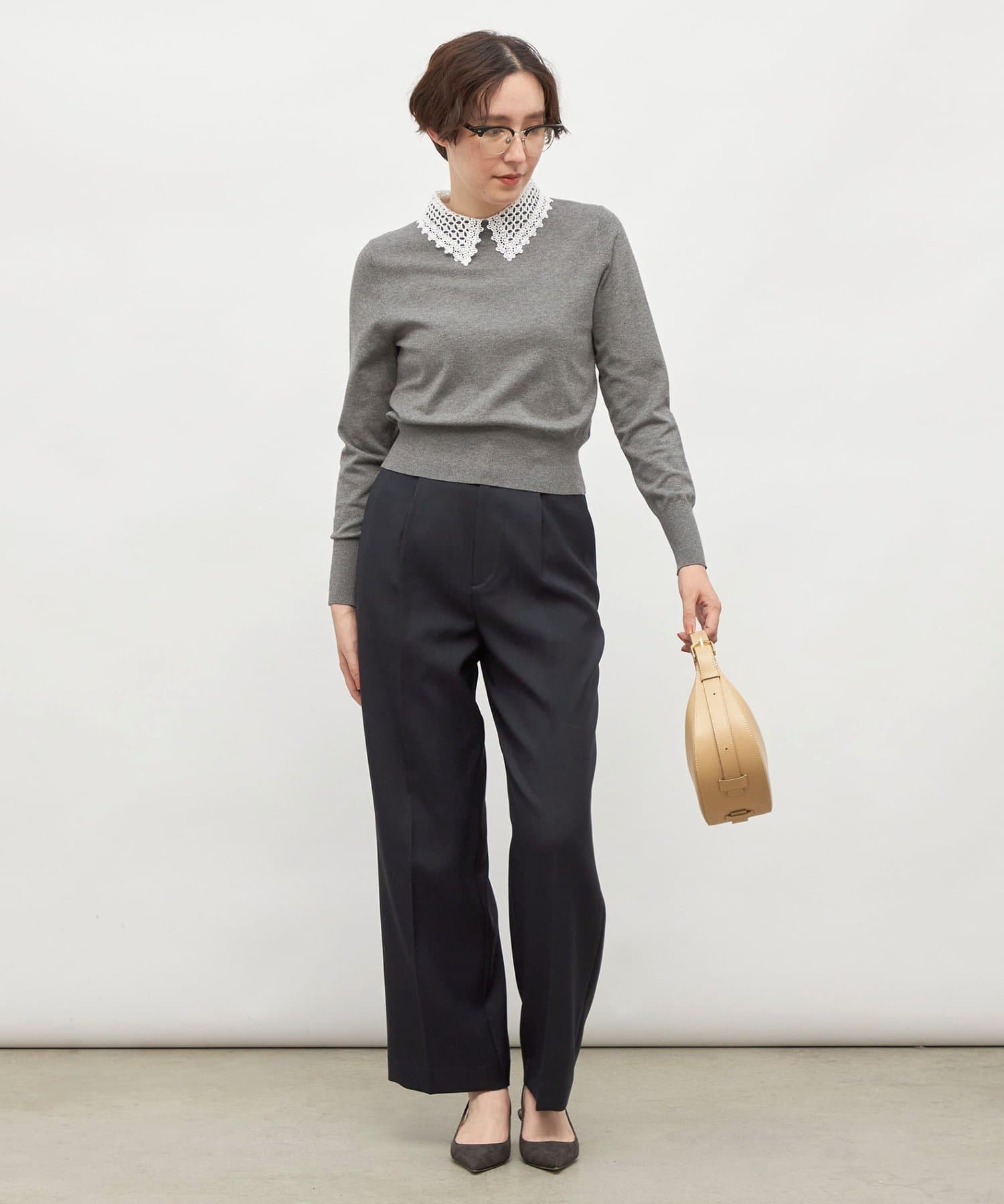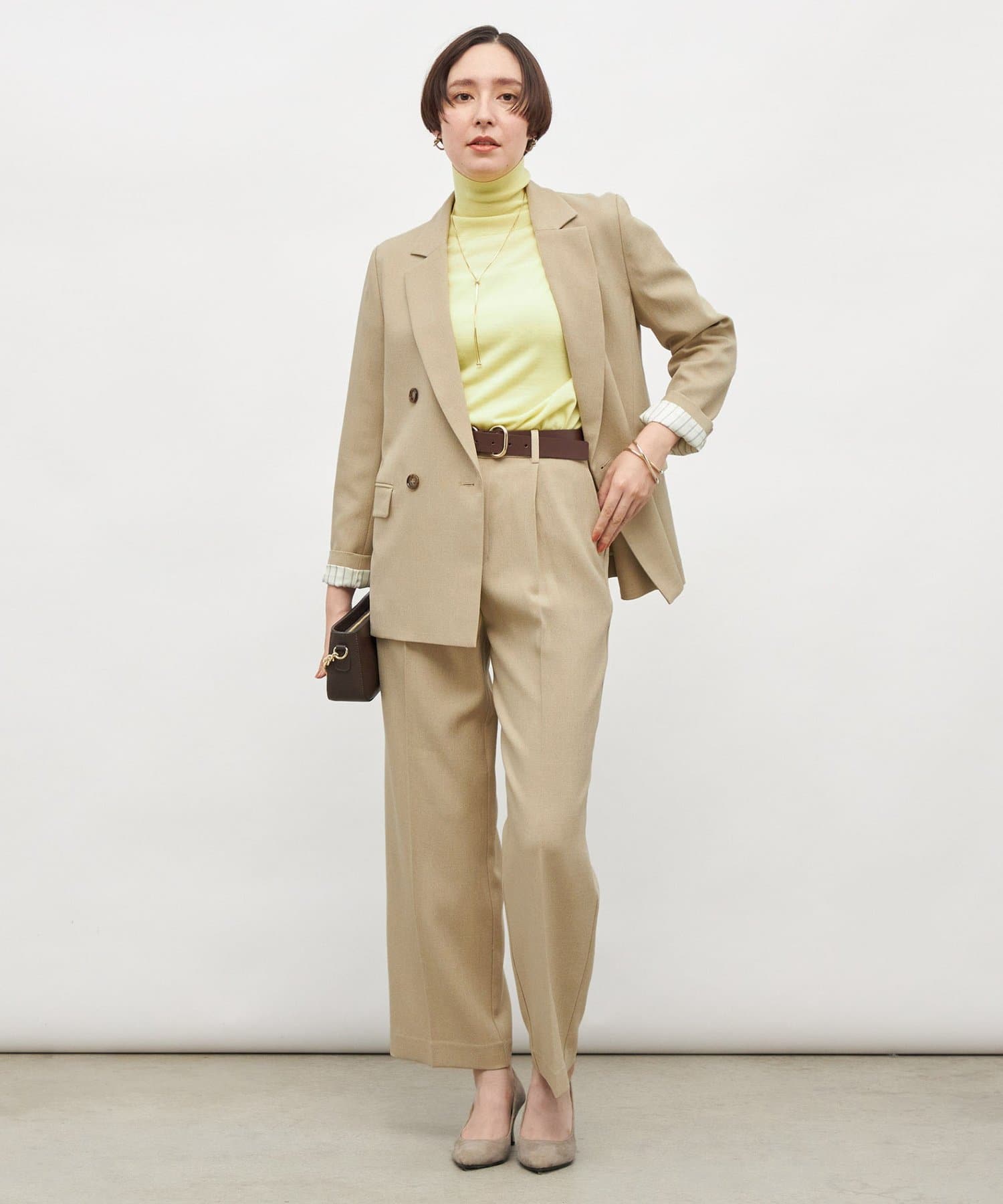 《セットアップ対応》ウォッシャブルウール調セミワイドパンツ