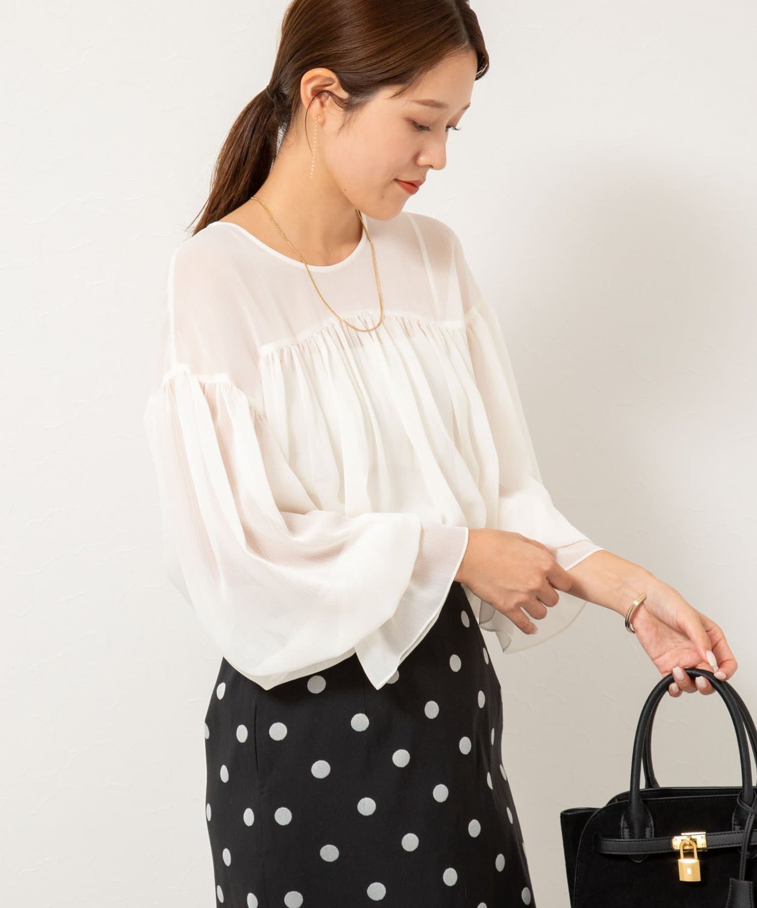 ・前後身頃と袖に切り替えを入れて、ギャザーを寄せたブラウス