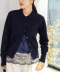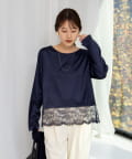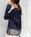 ・裾にフェミニンなスカラップレースを付けたサテンブラウス
