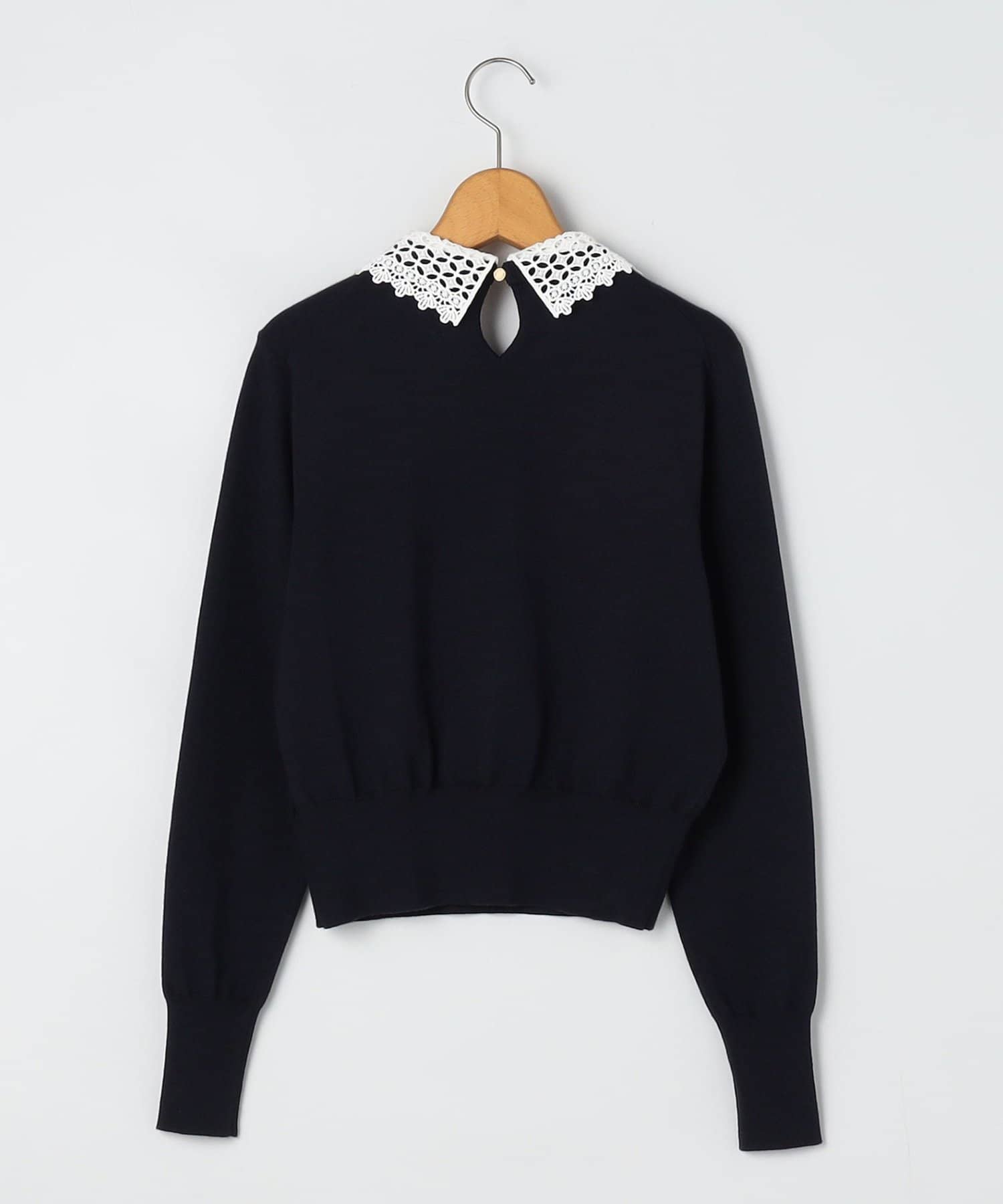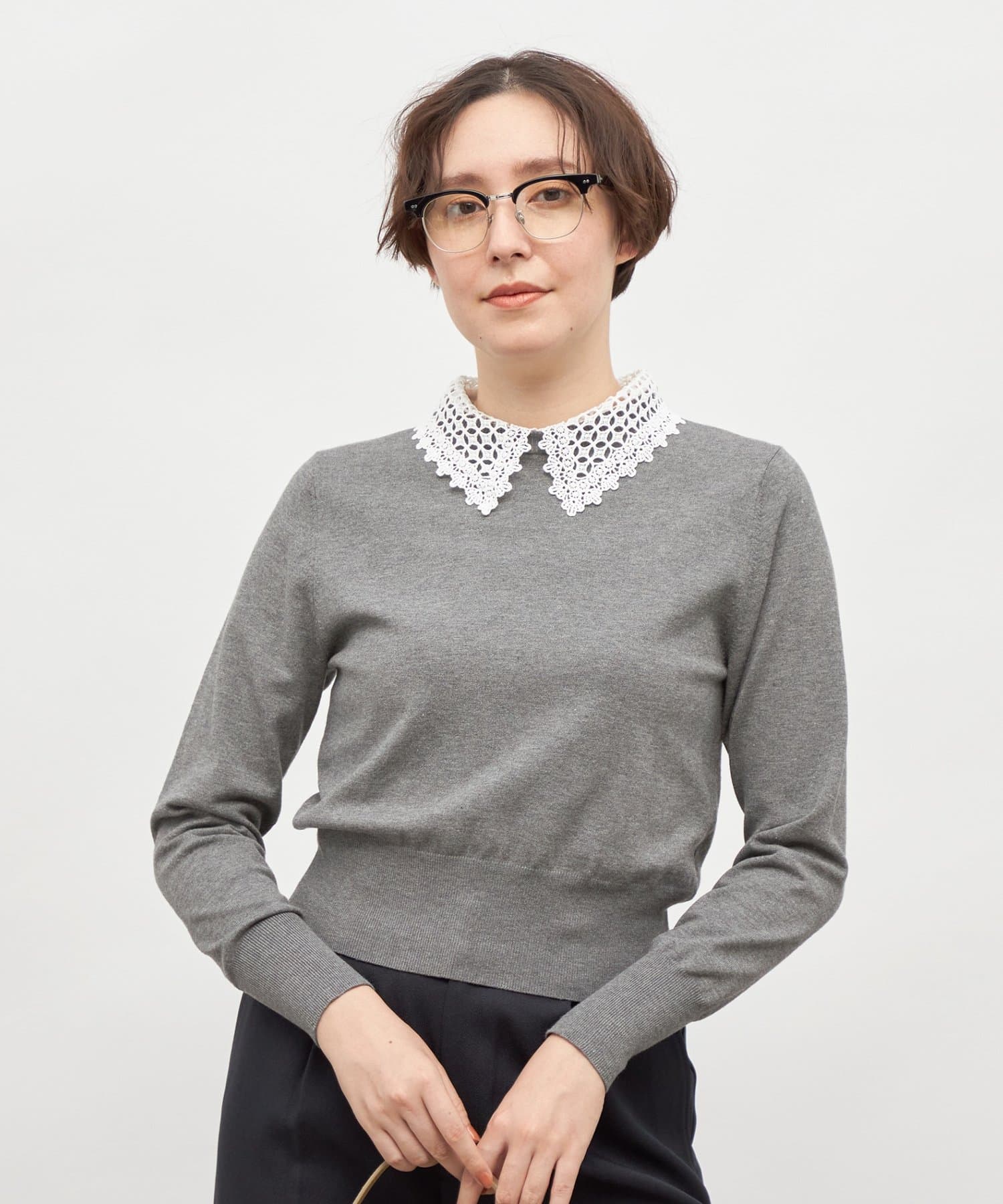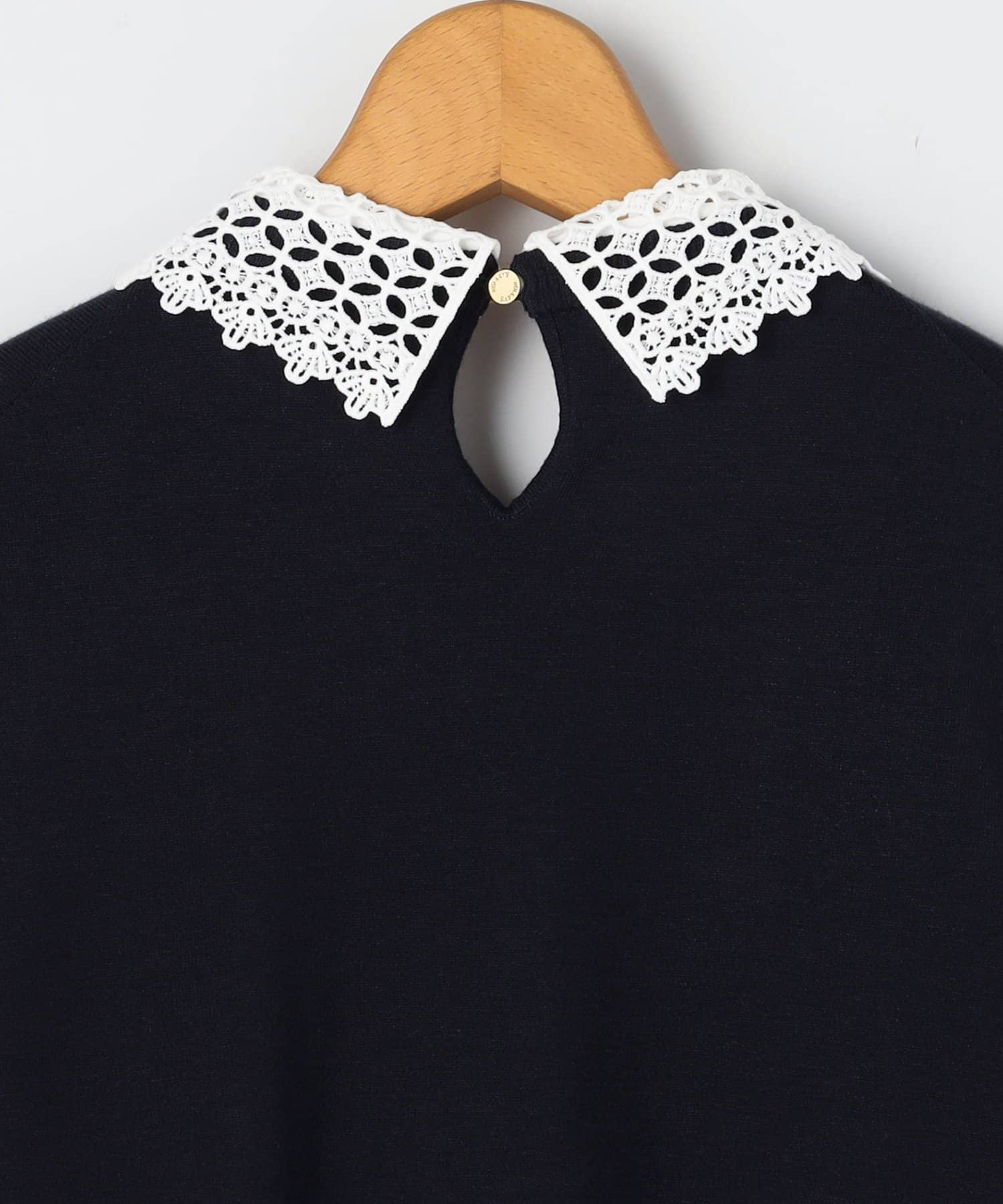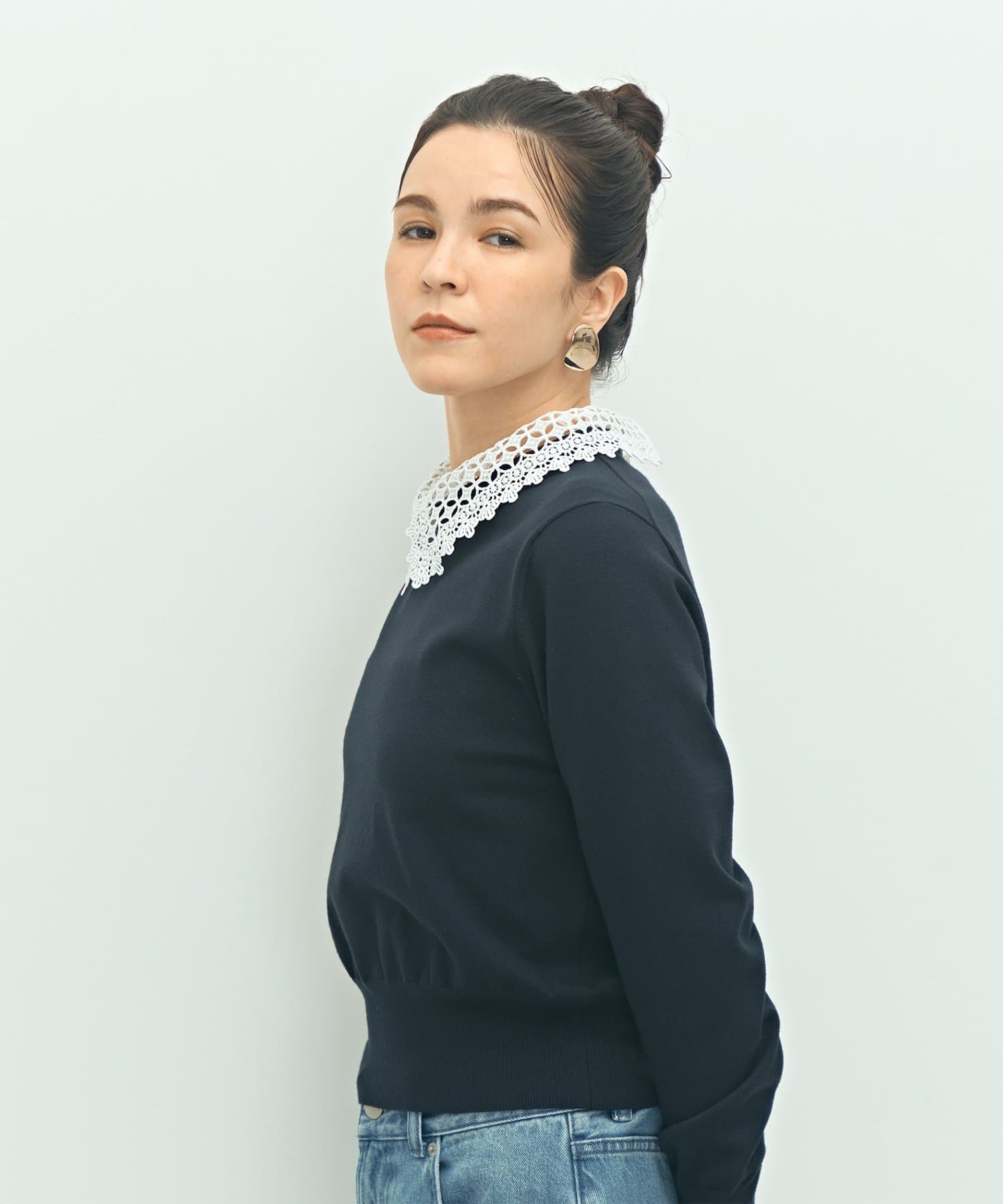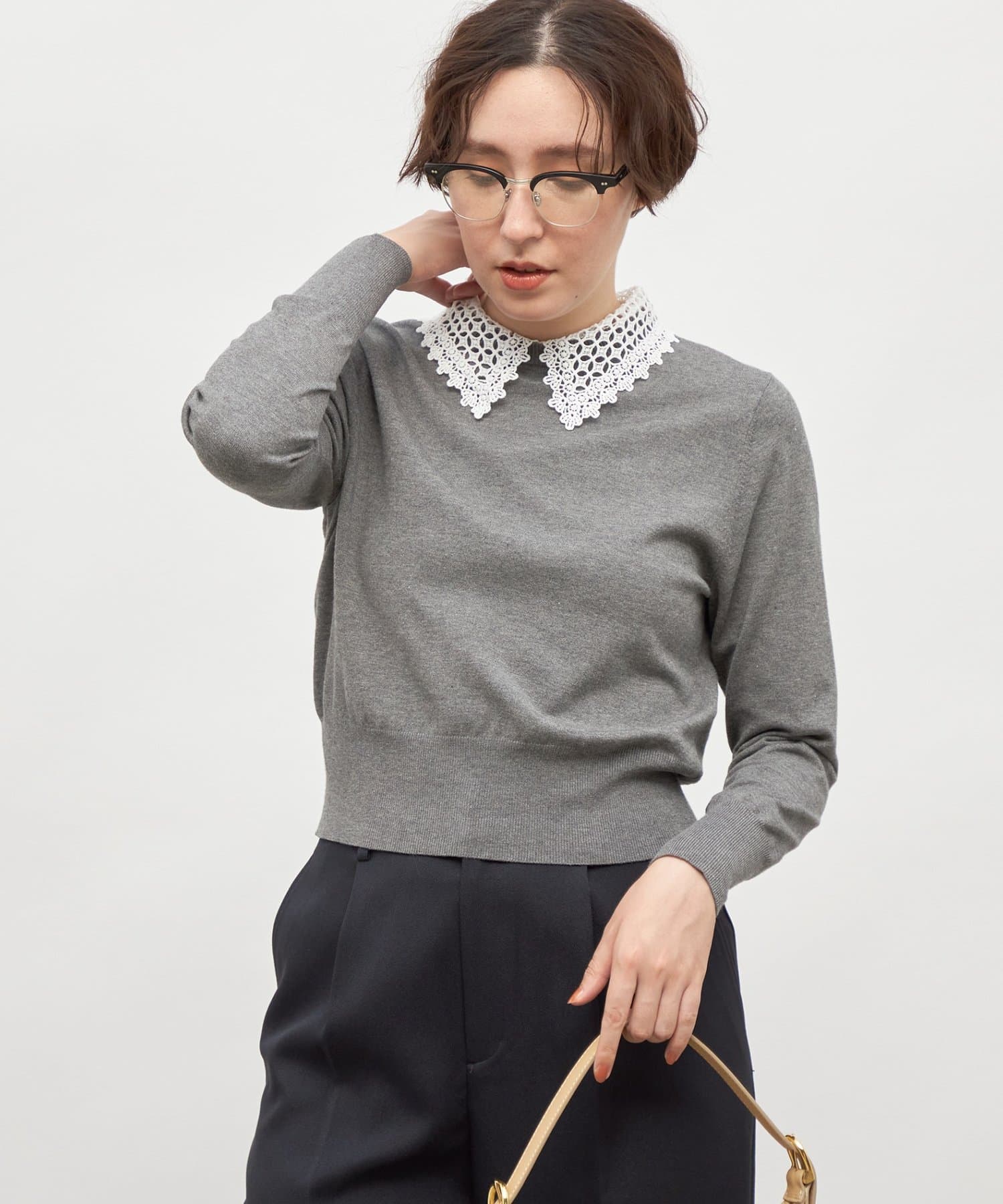 ・取り外し可能な白のレース衿がアクセントのプルオーバーニット