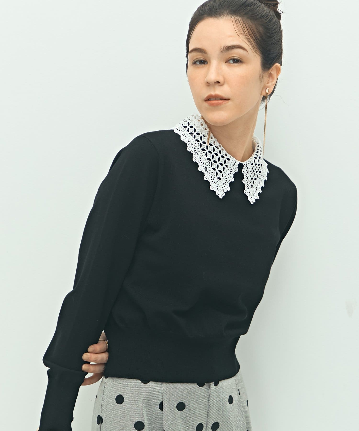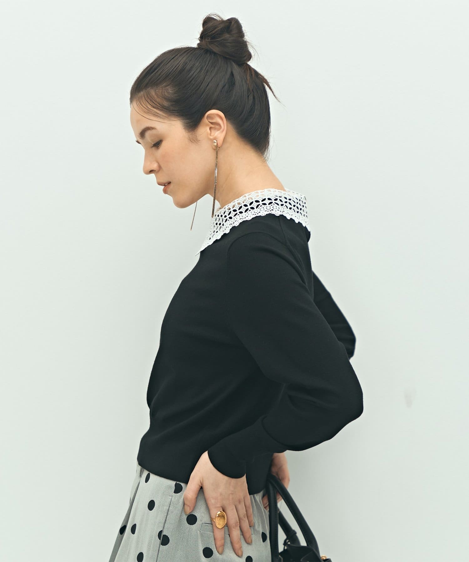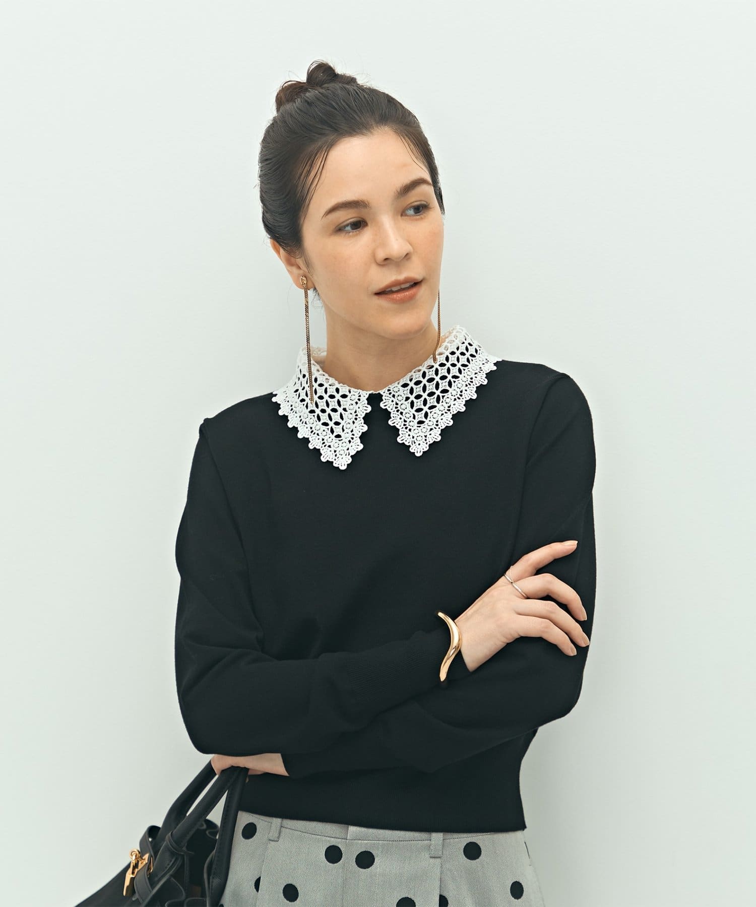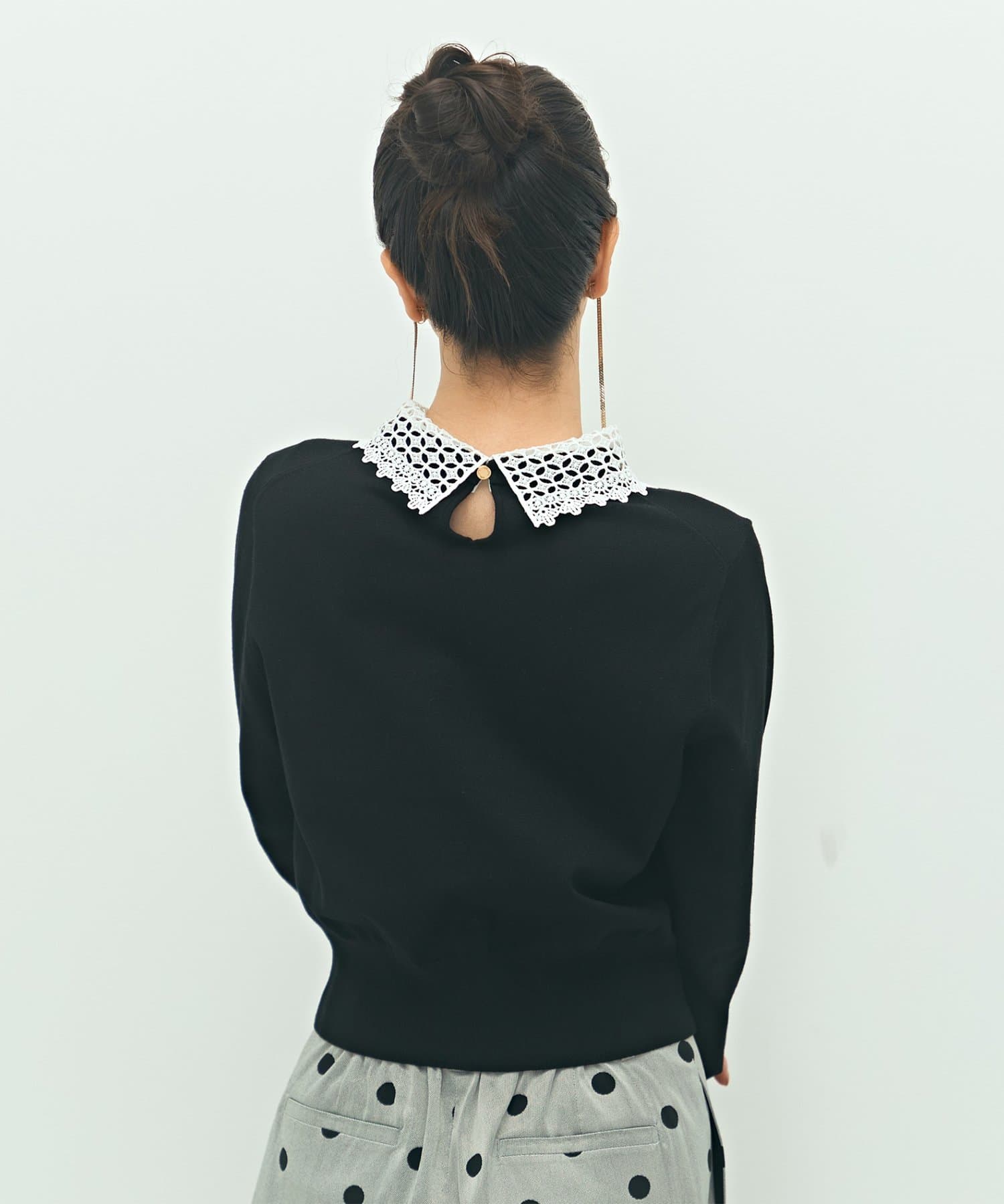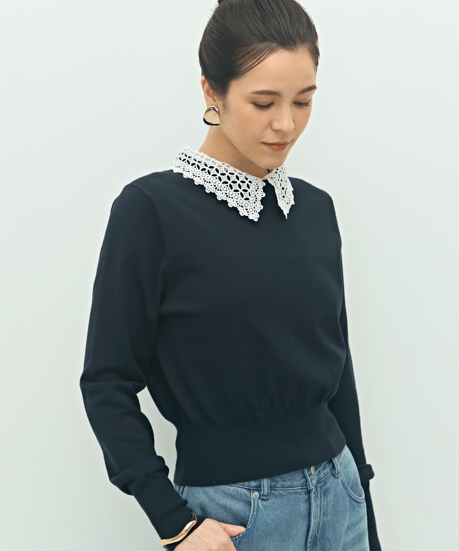 ・取り外し可能な白のレース衿がアクセントのプルオーバーニット