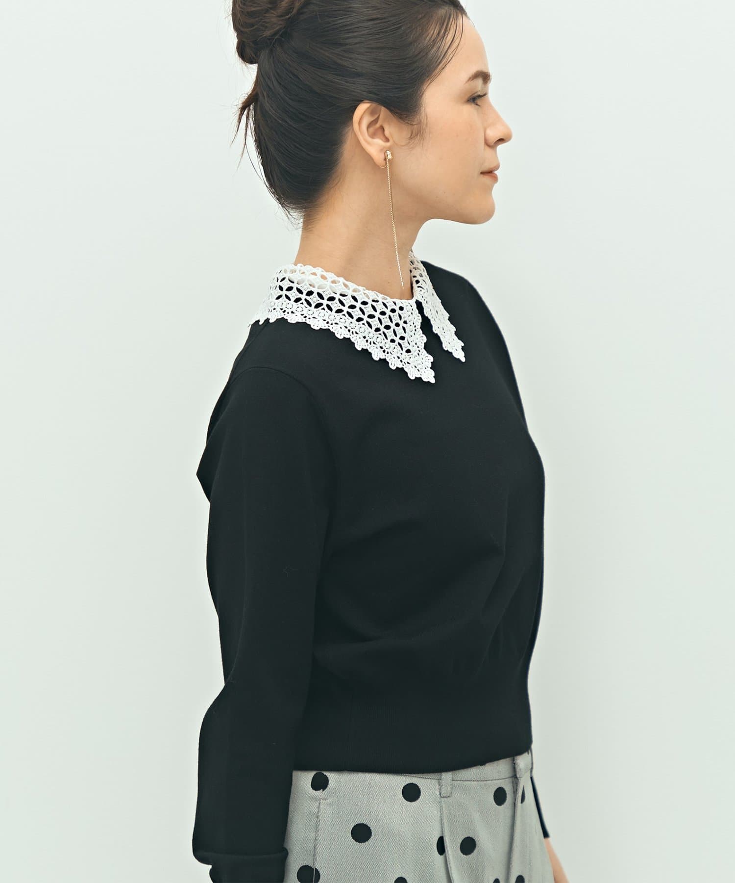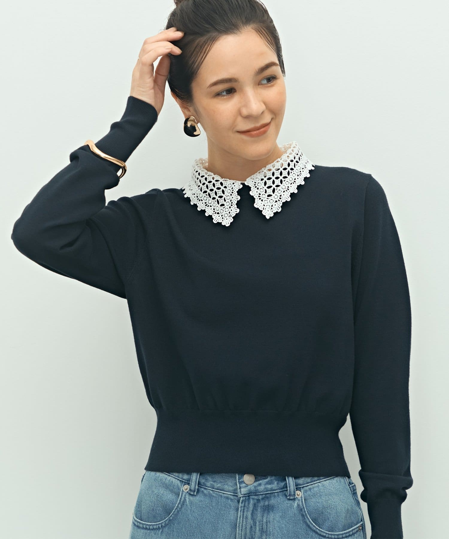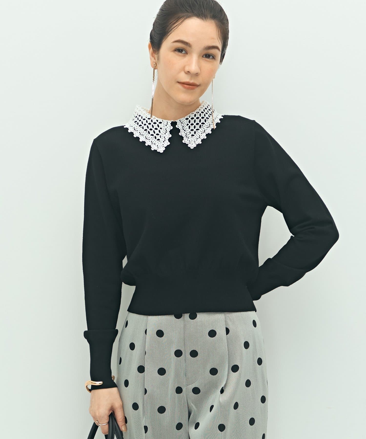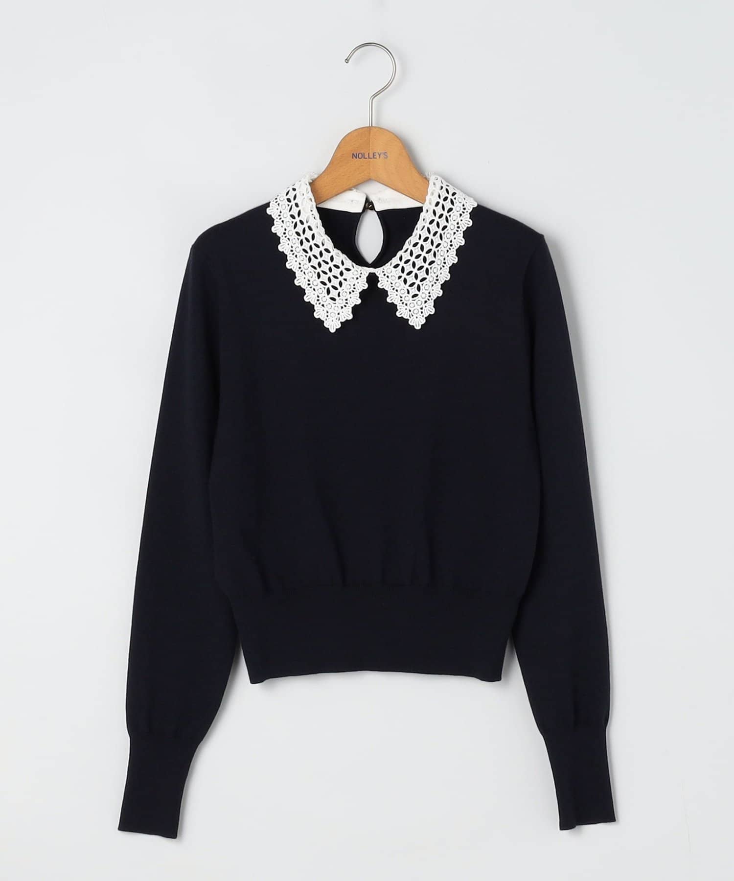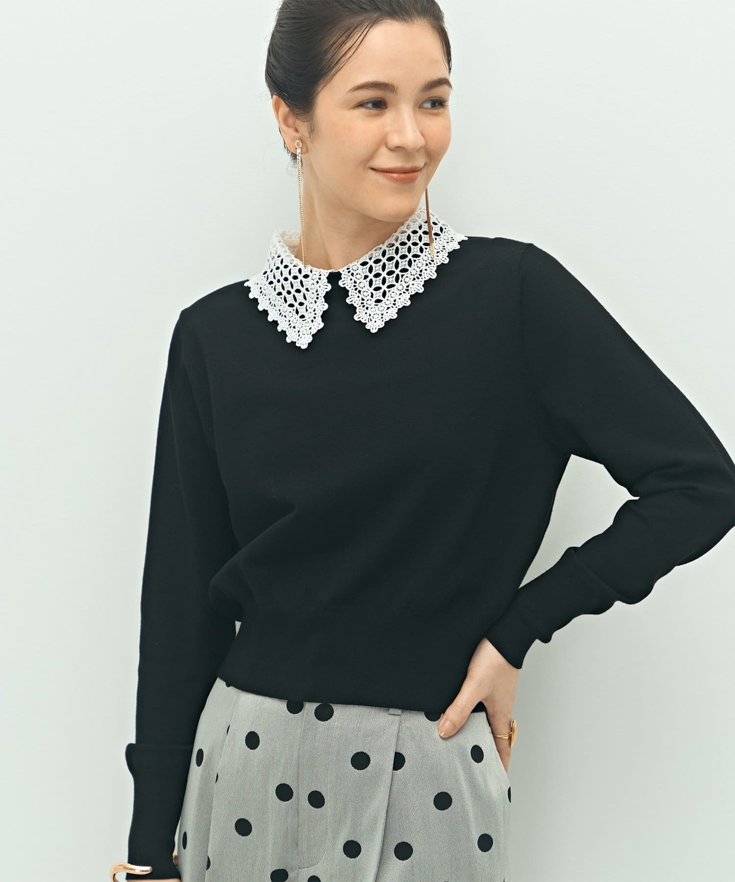 ・取り外し可能な白のレース衿がアクセントのプルオーバーニット
