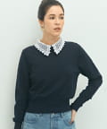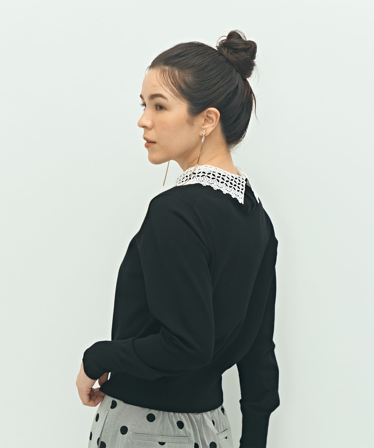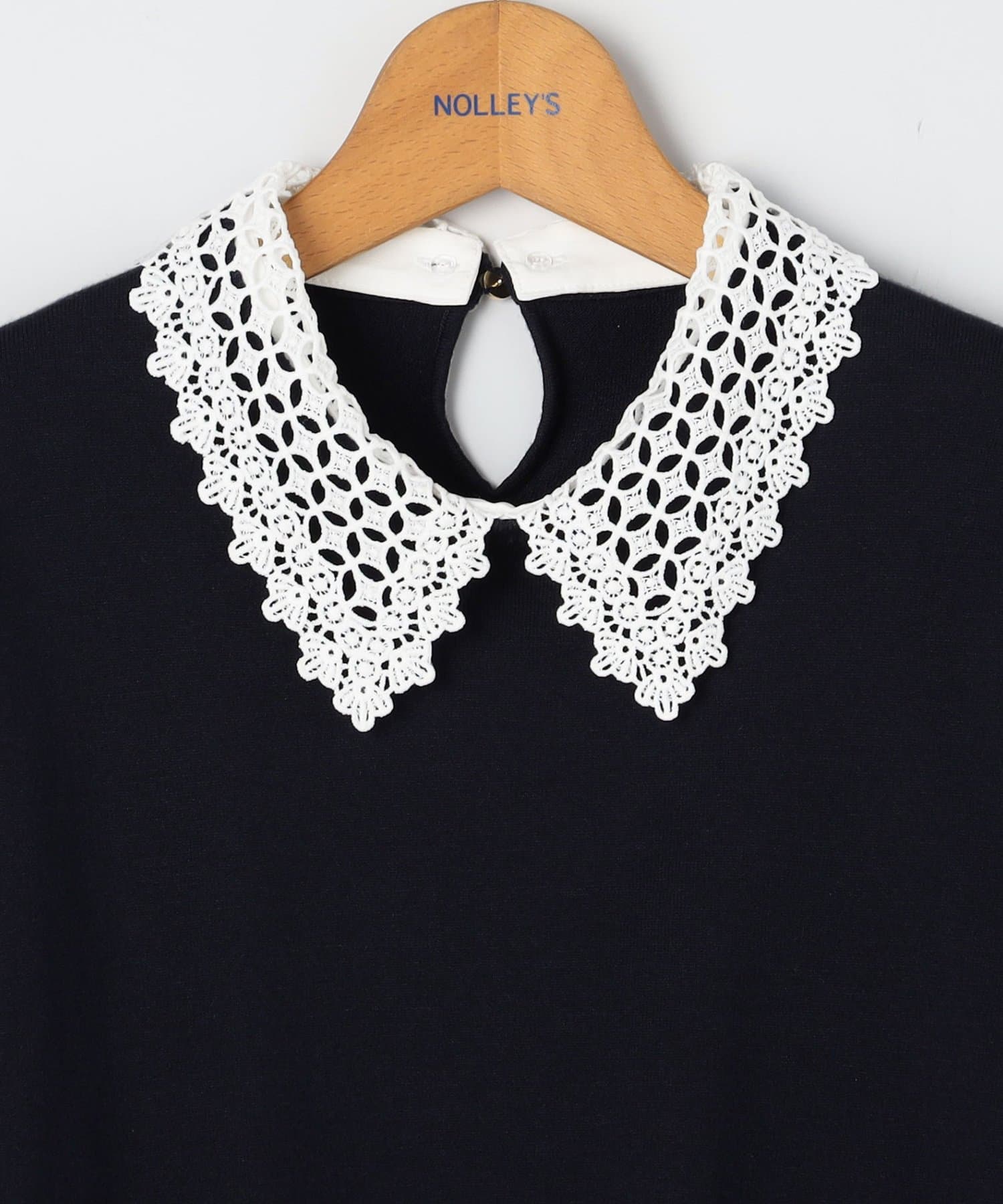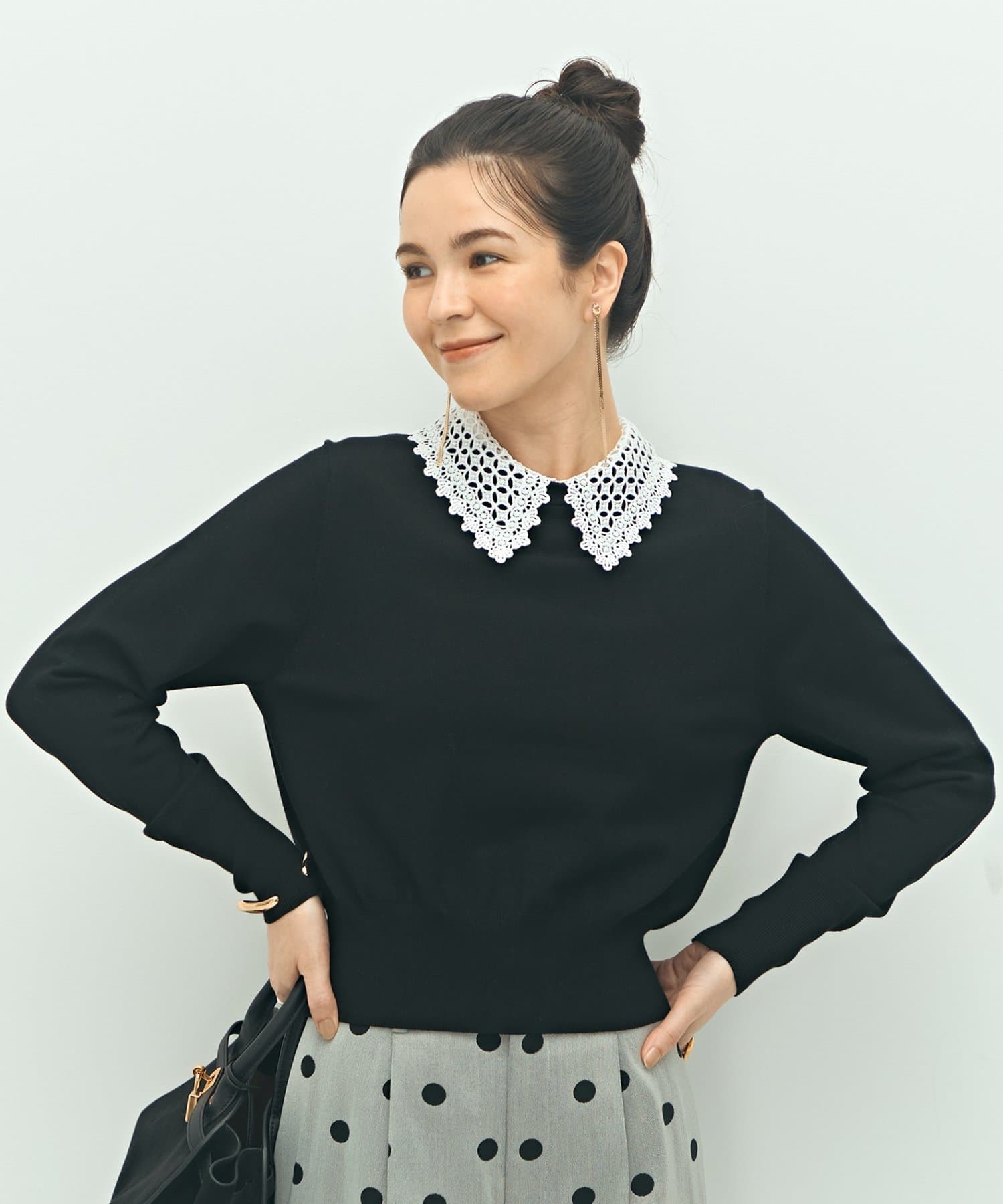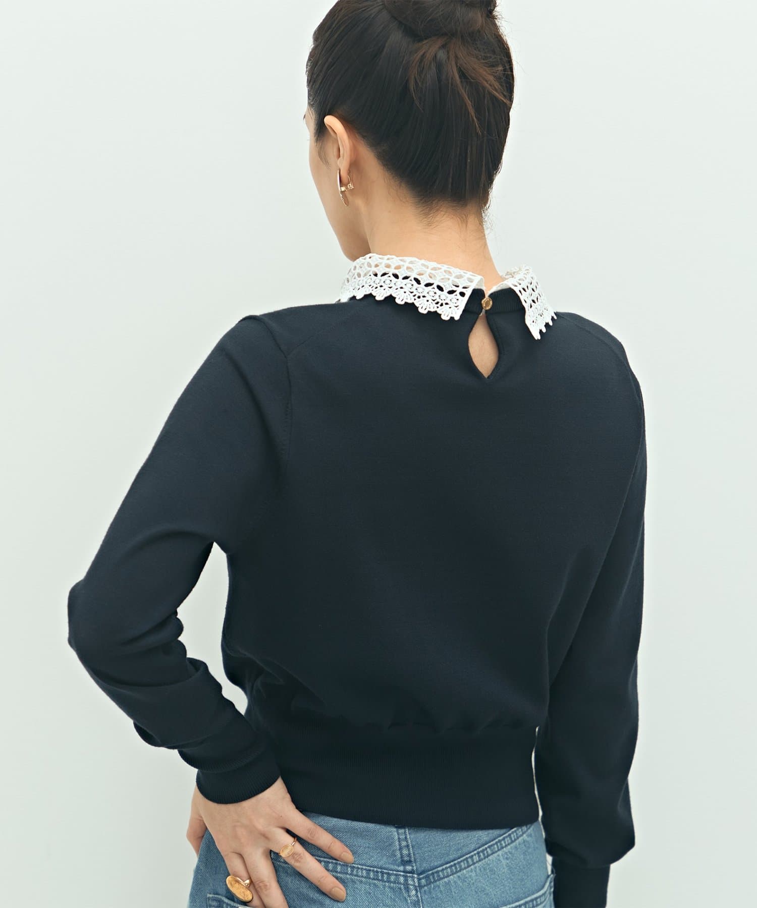 ・取り外し可能な白のレース衿がアクセントのプルオーバーニット