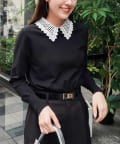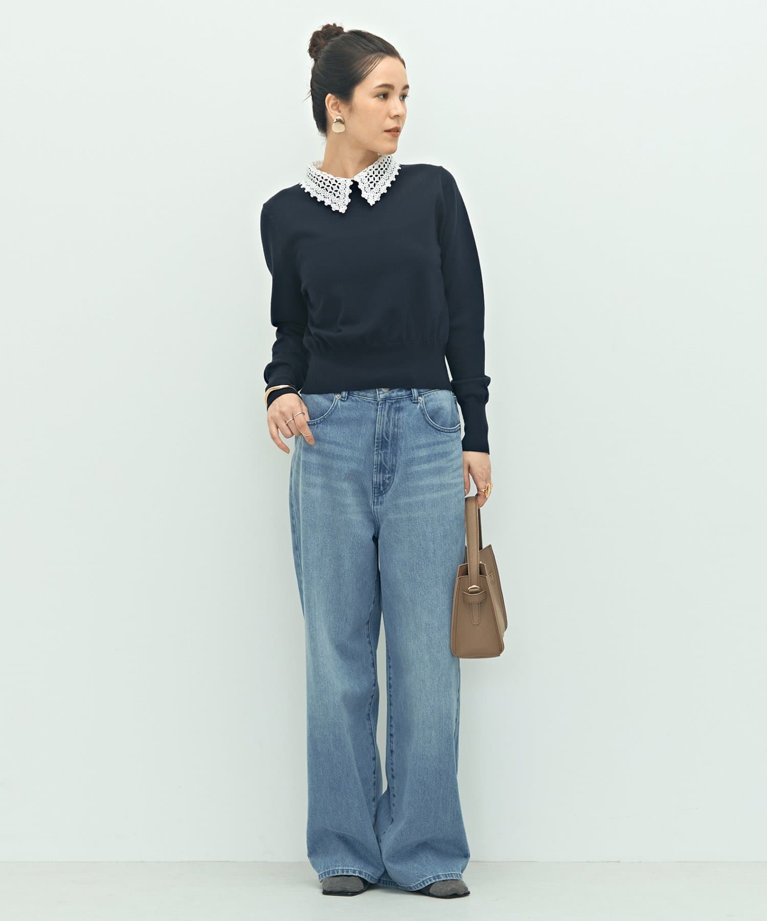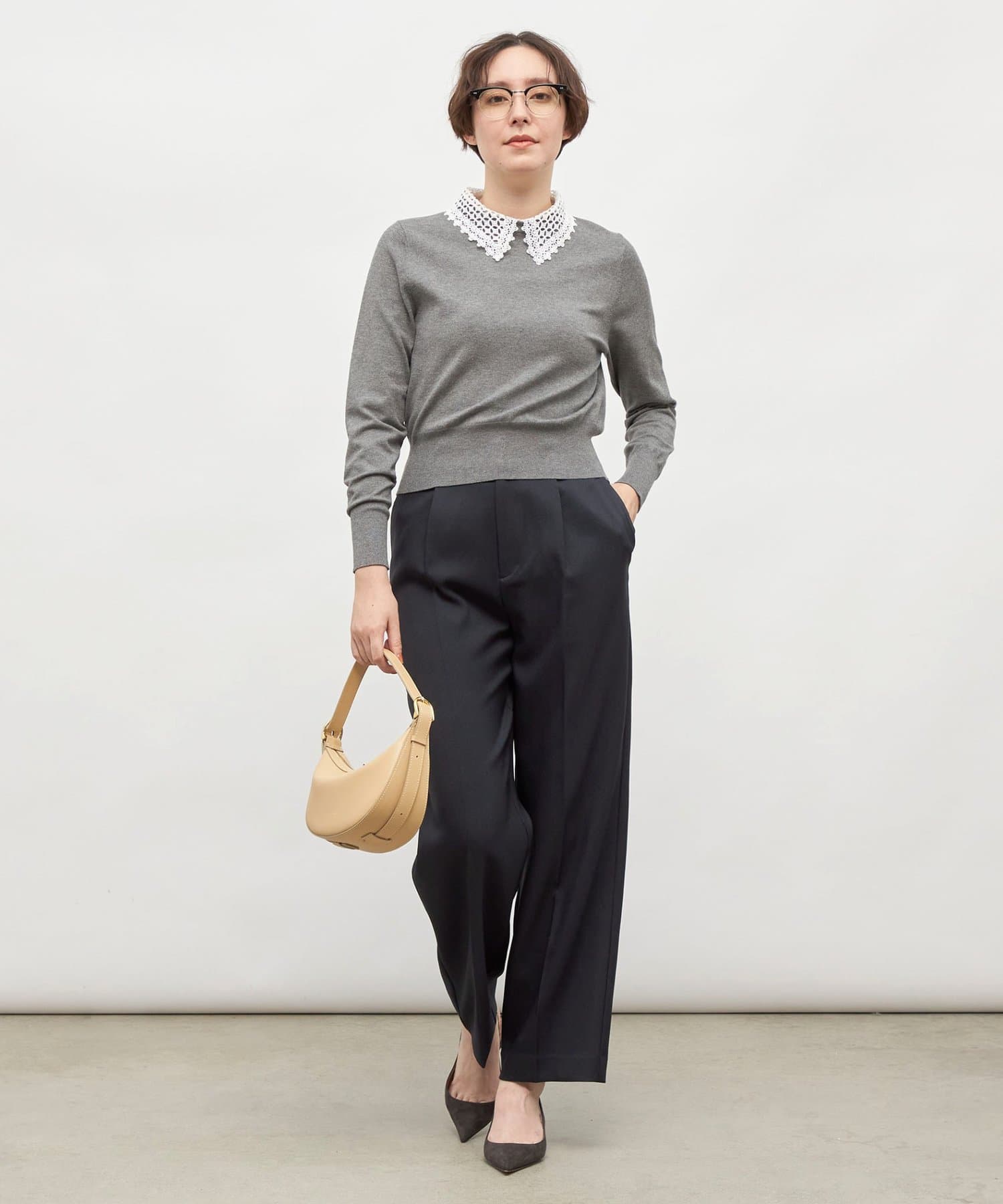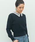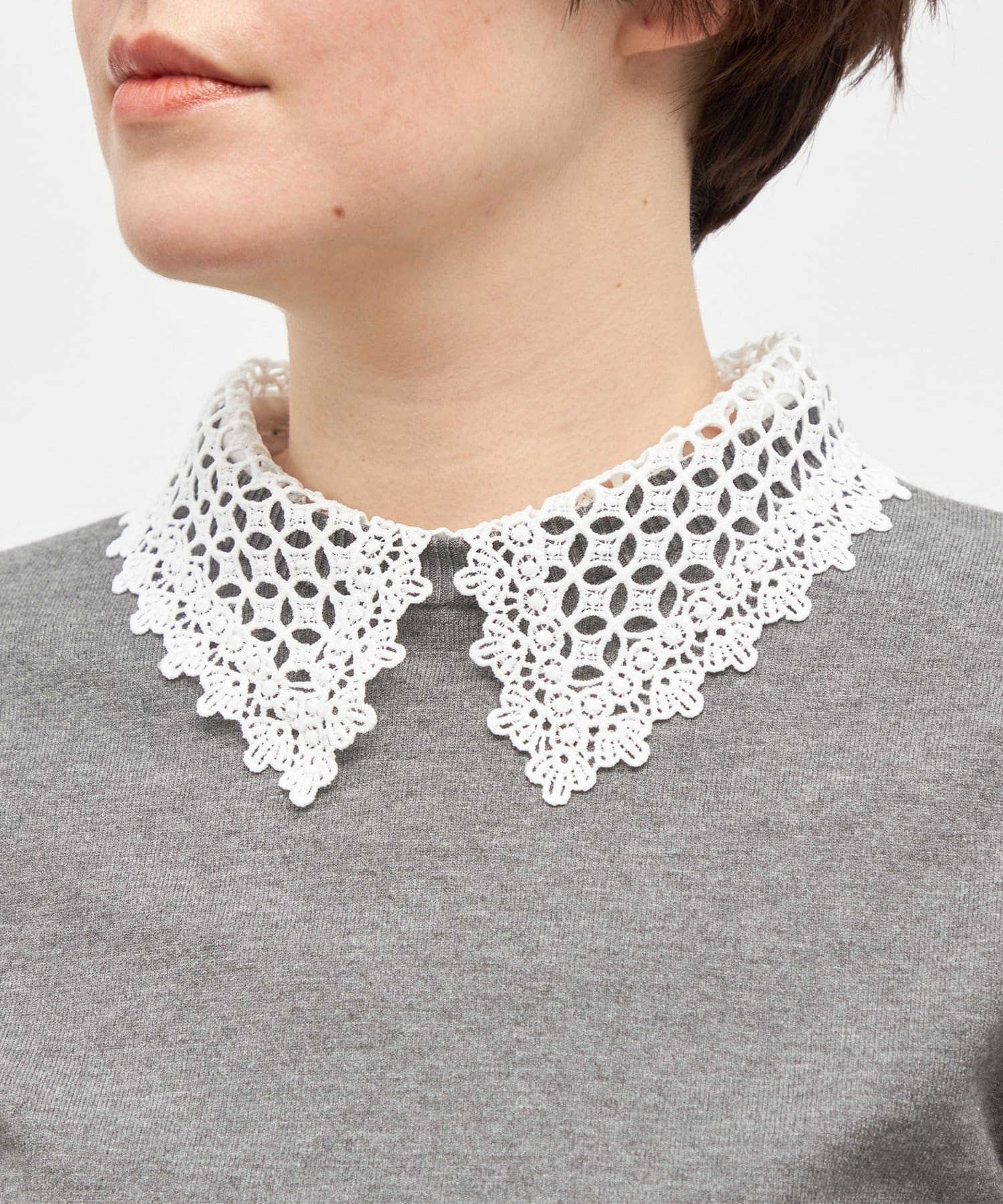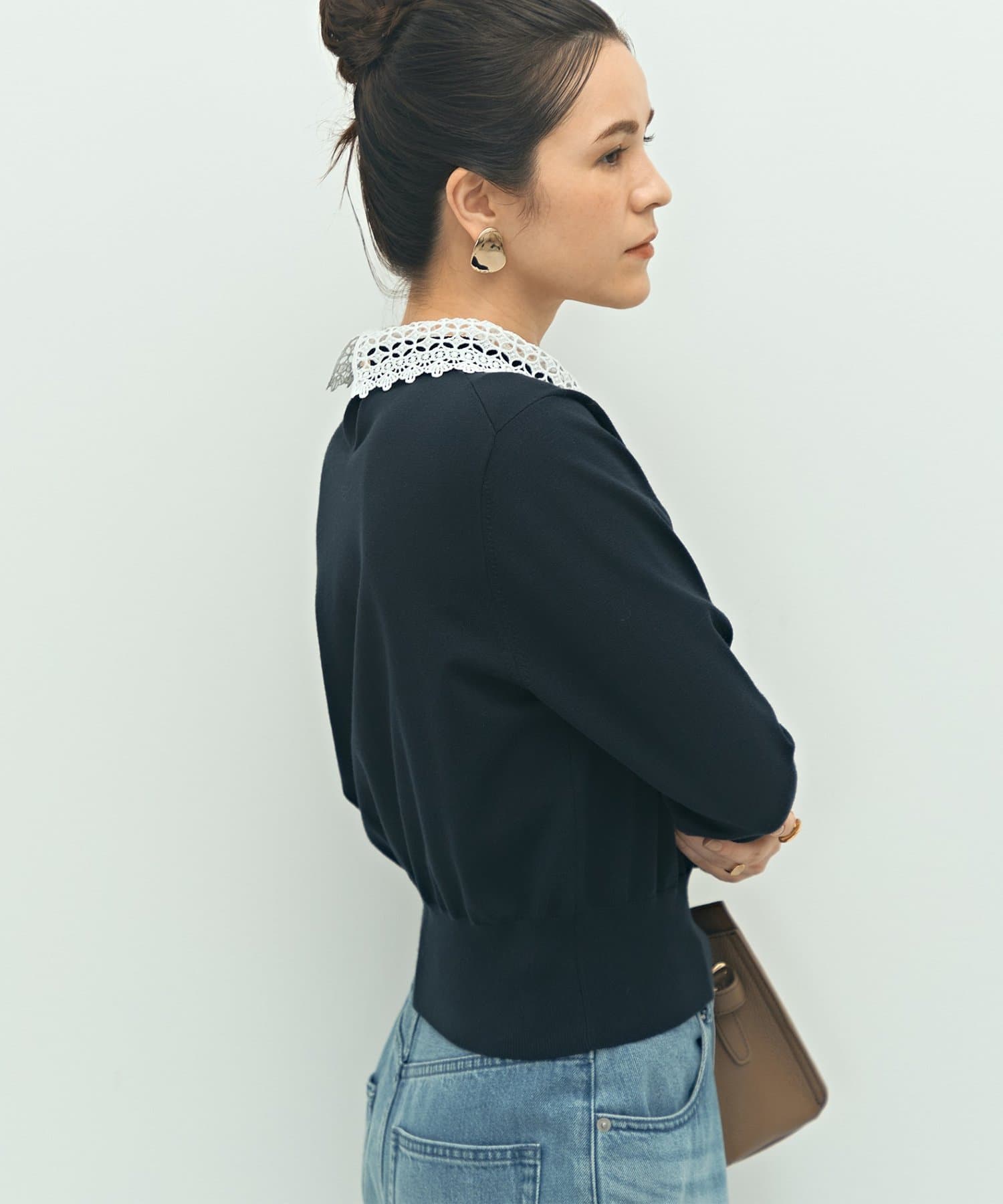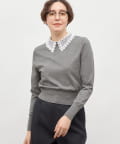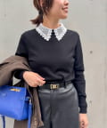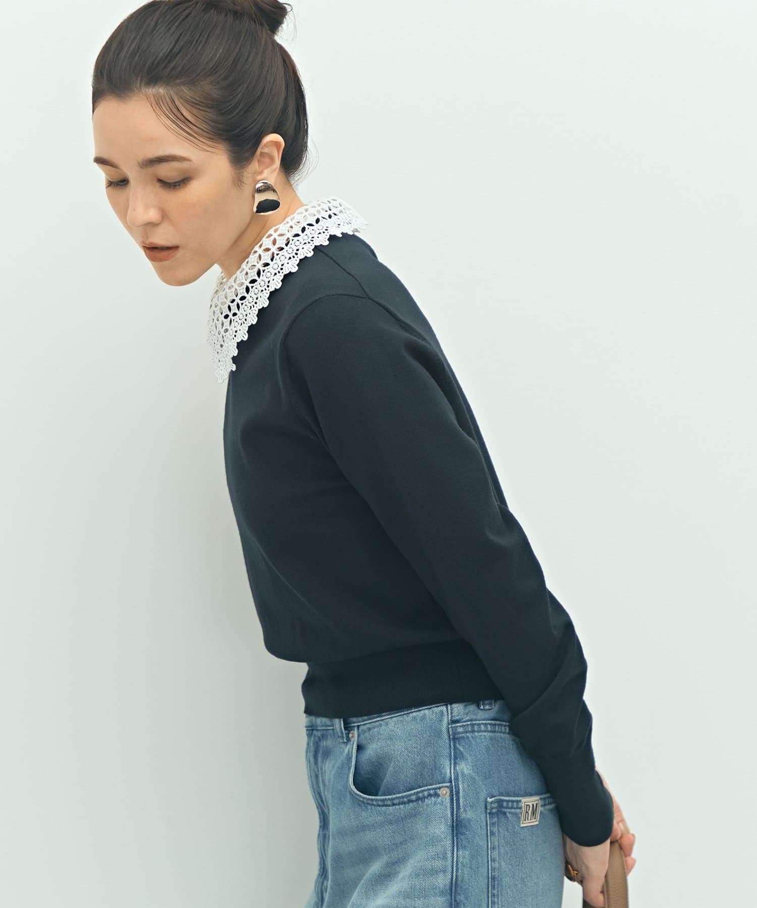 ・取り外し可能な白のレース衿がアクセントのプルオーバーニット