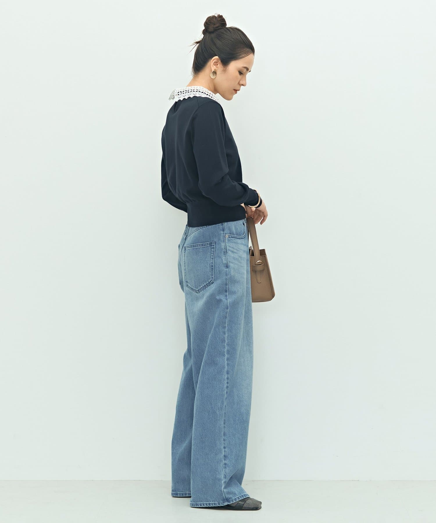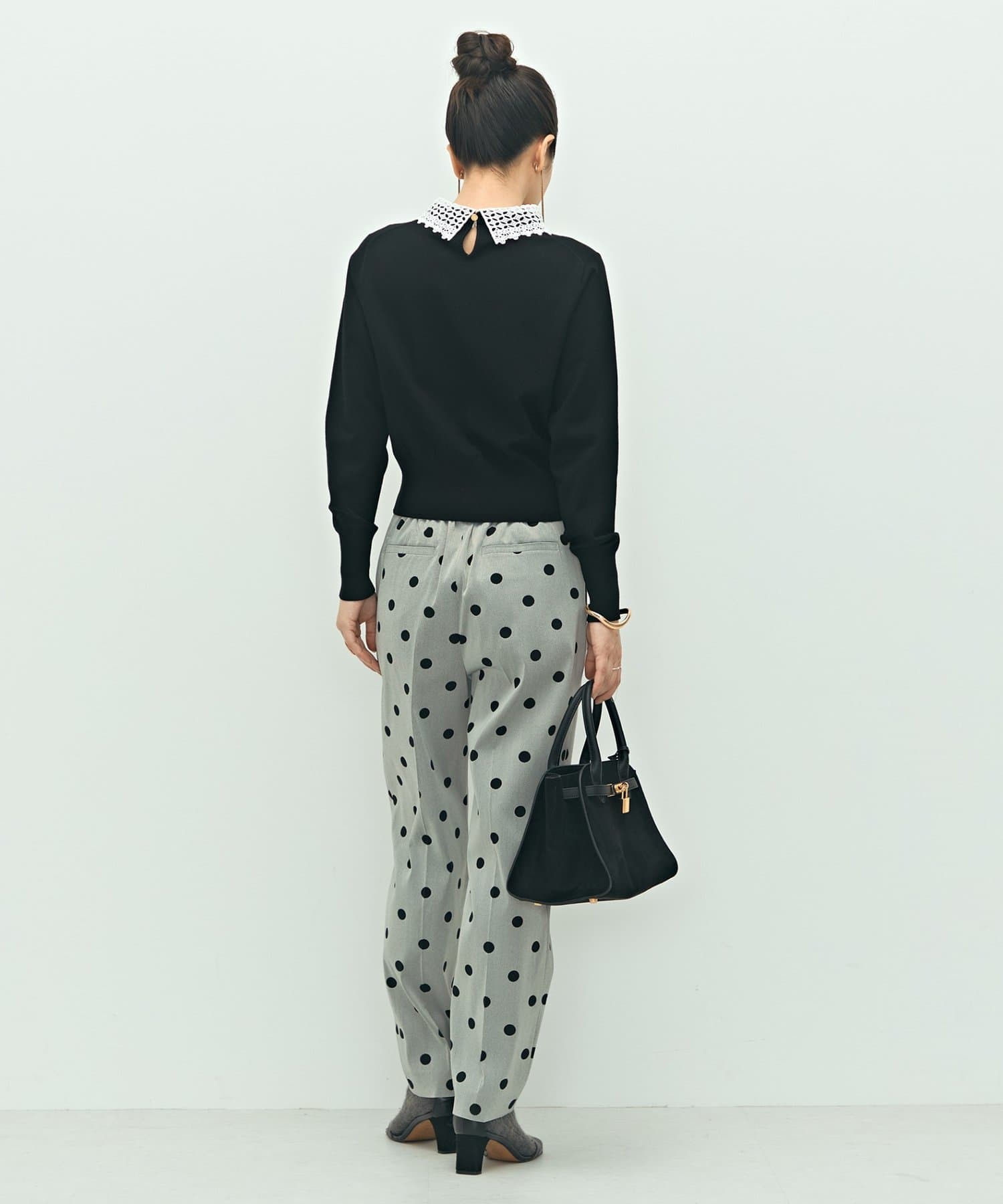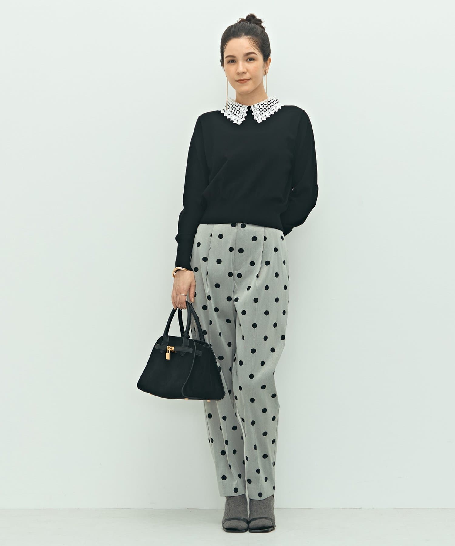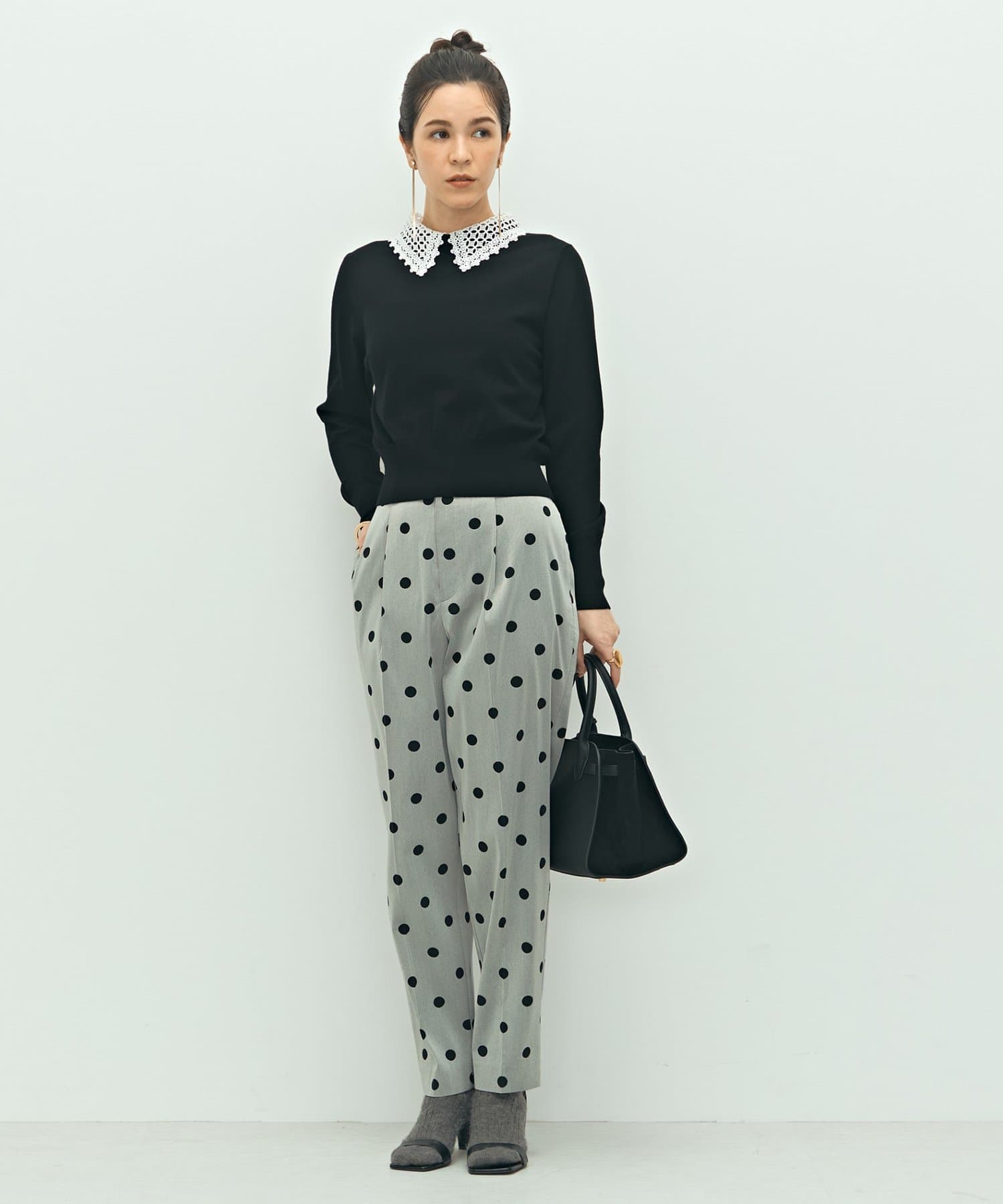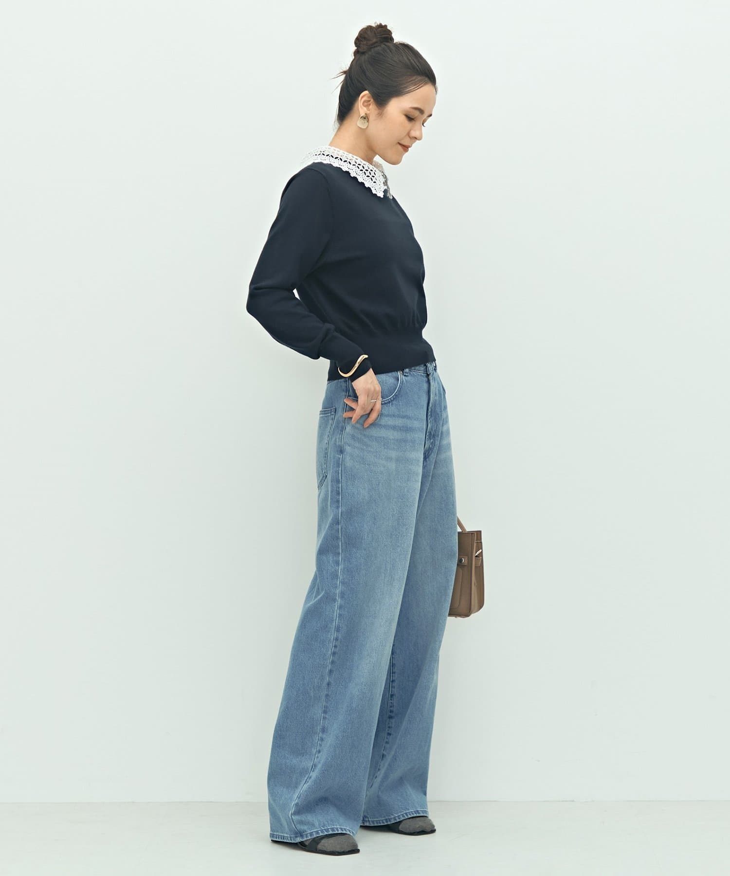 ・取り外し可能な白のレース衿がアクセントのプルオーバーニット