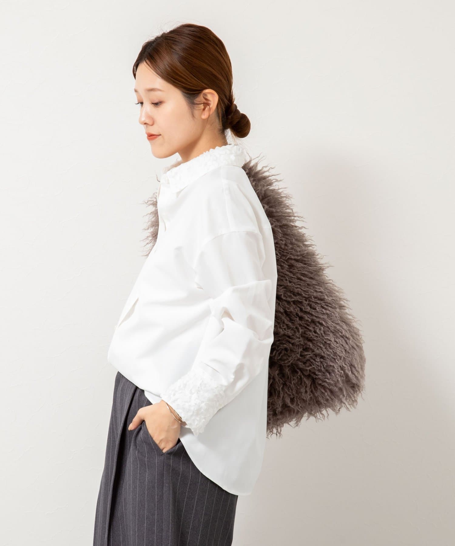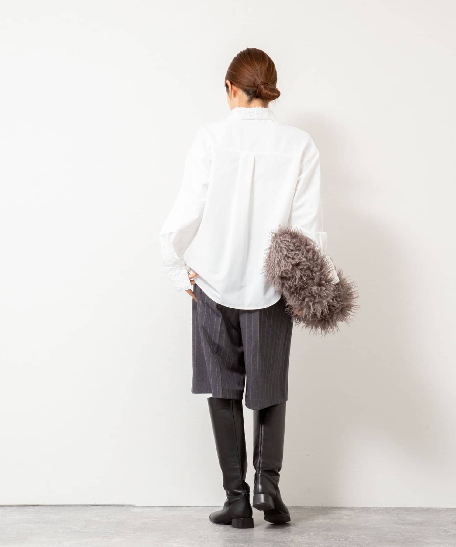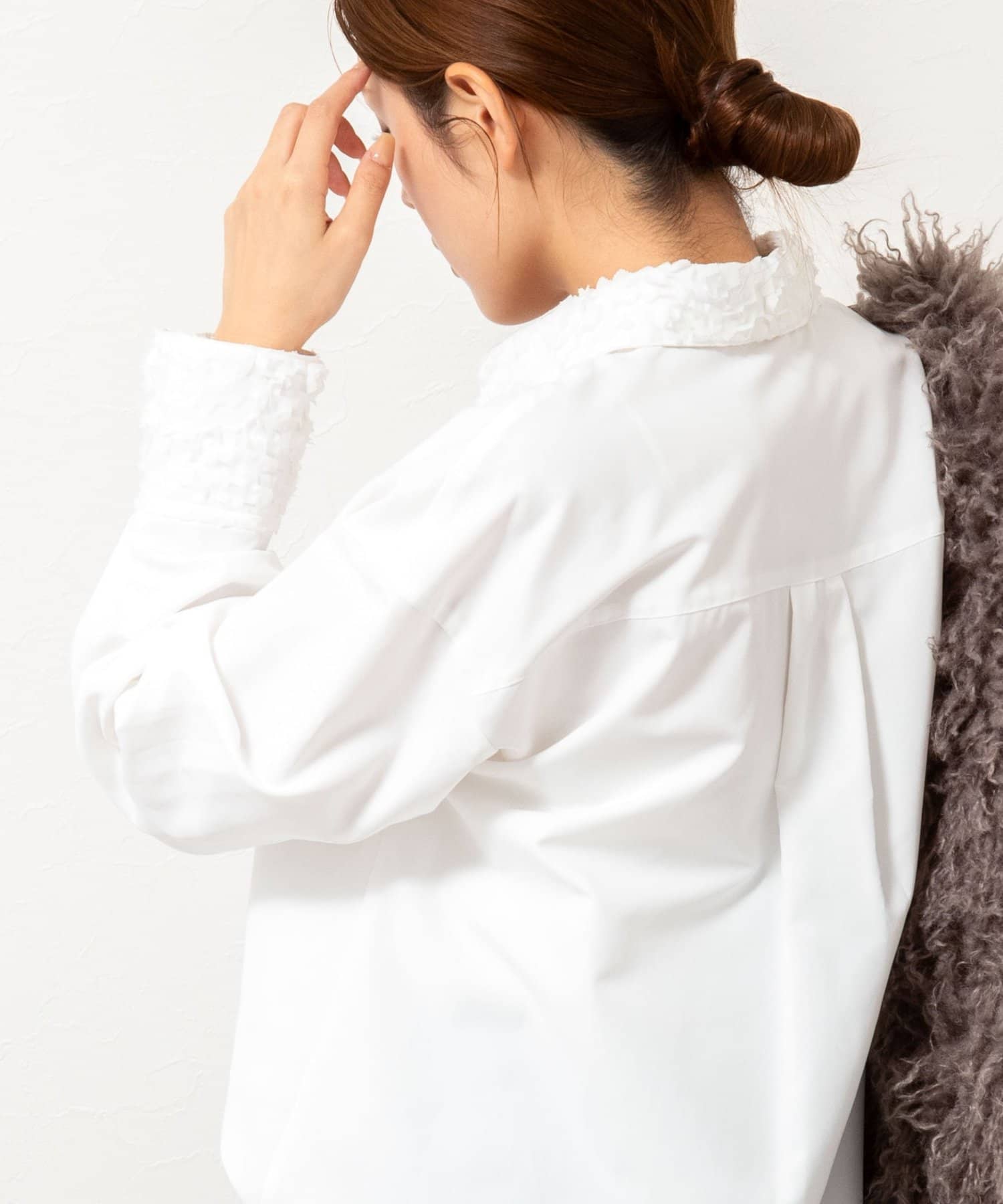 ・3Dレースを襟とカフスに施したシャツ