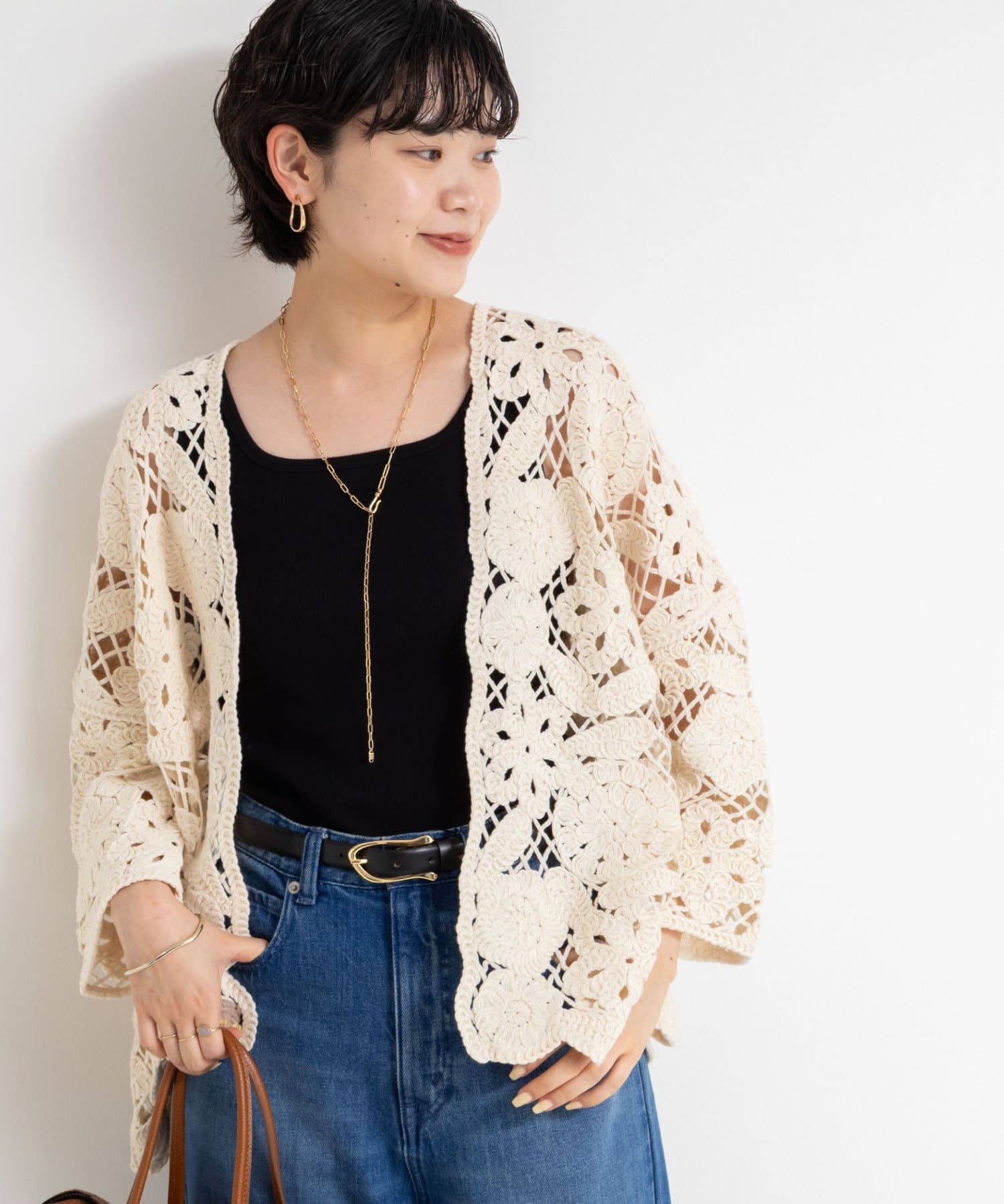 ・ゆったりしたサイズ感とざっくり編みのデザインが大人可愛い1枚