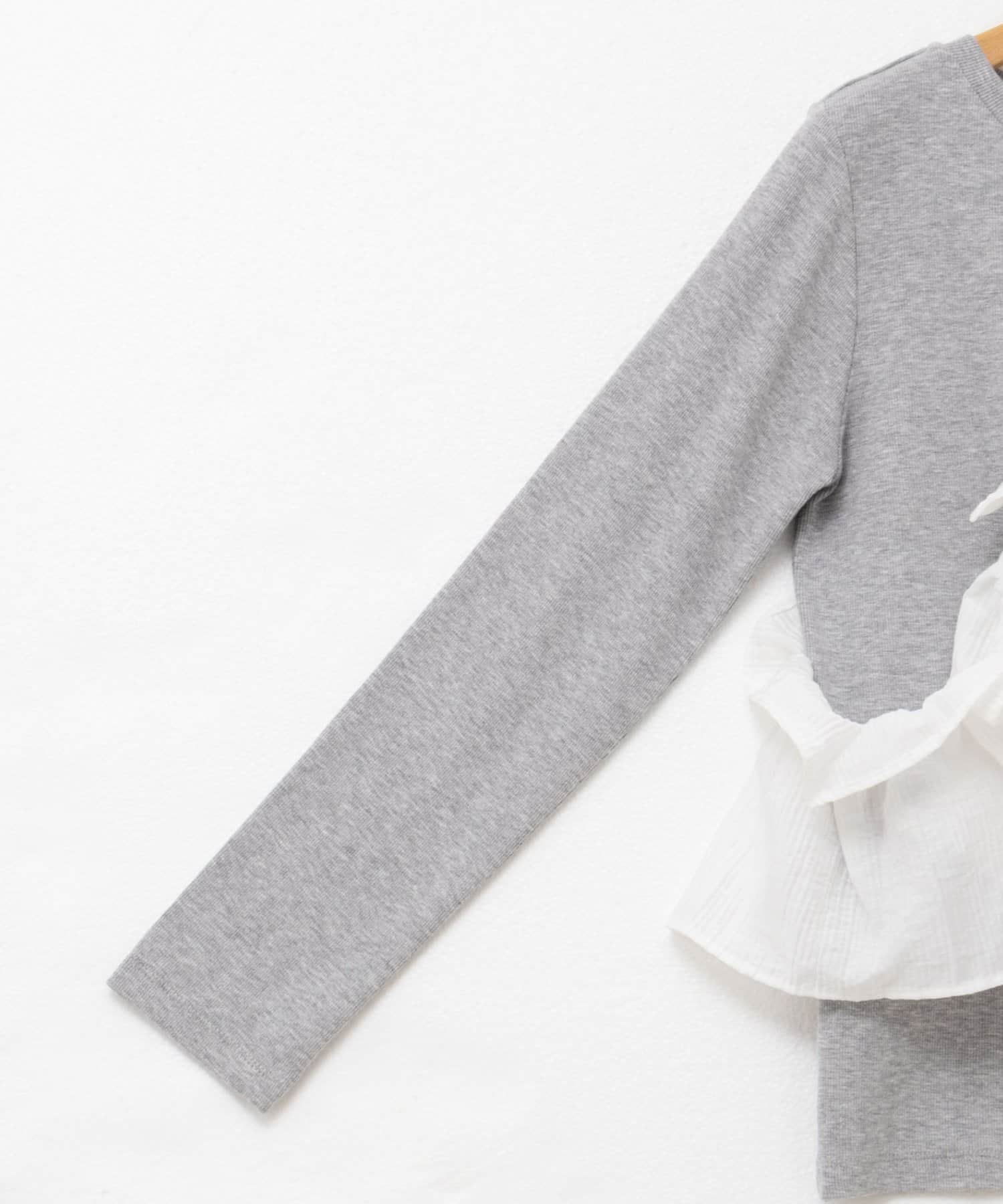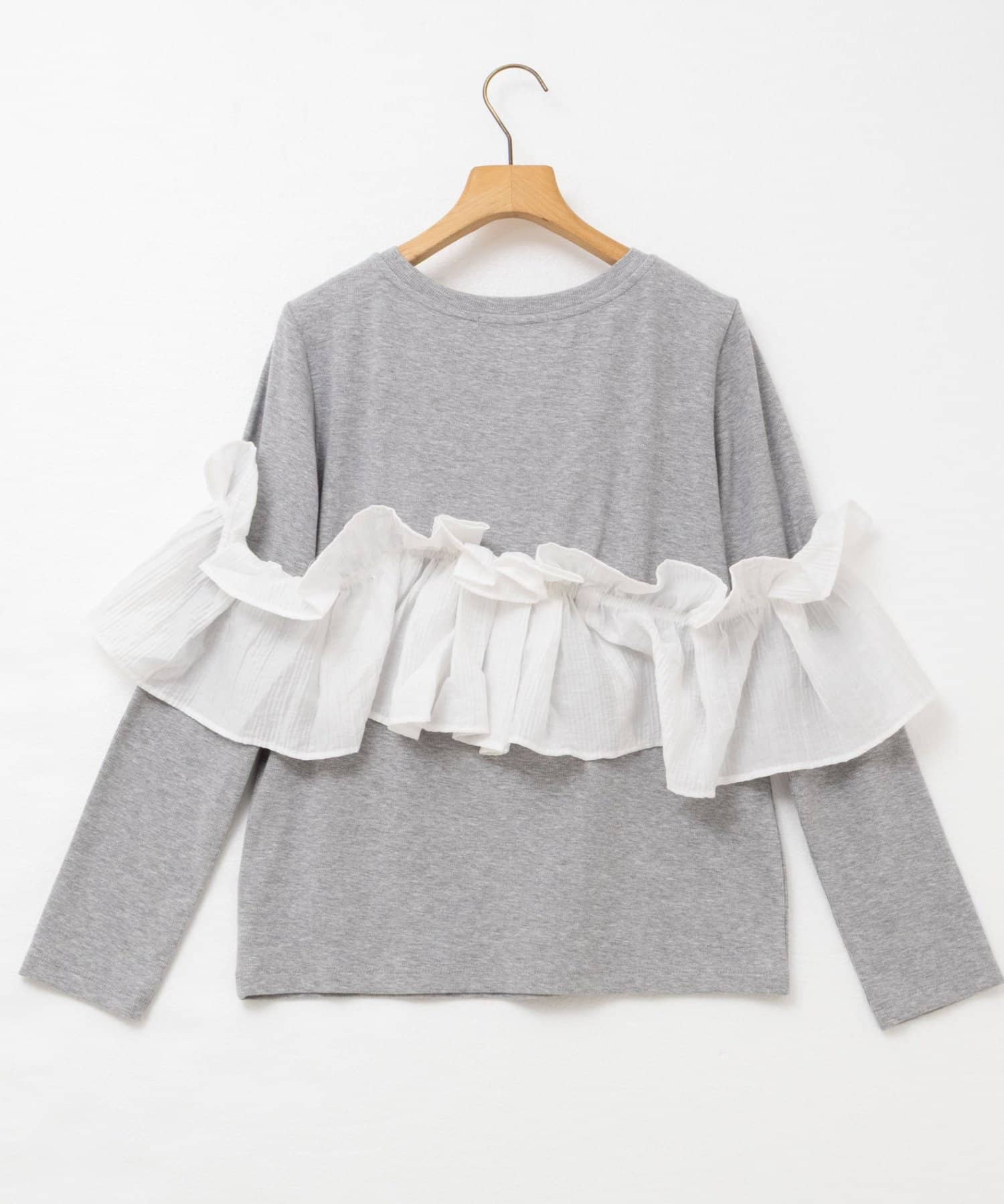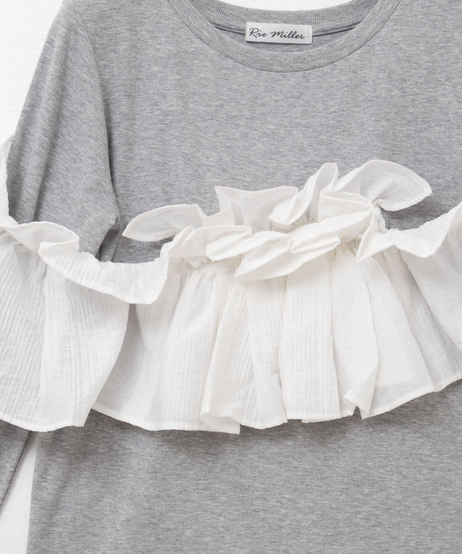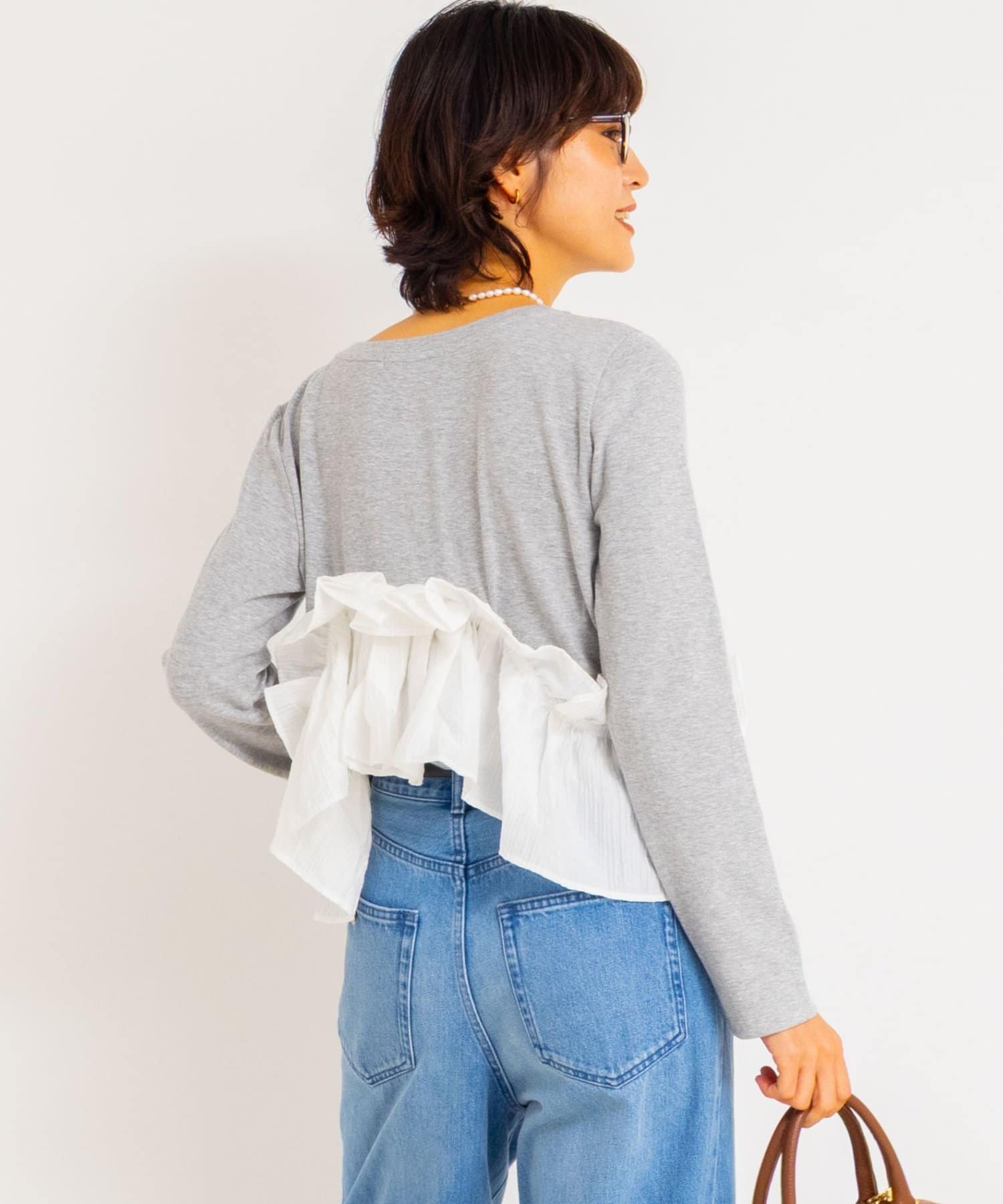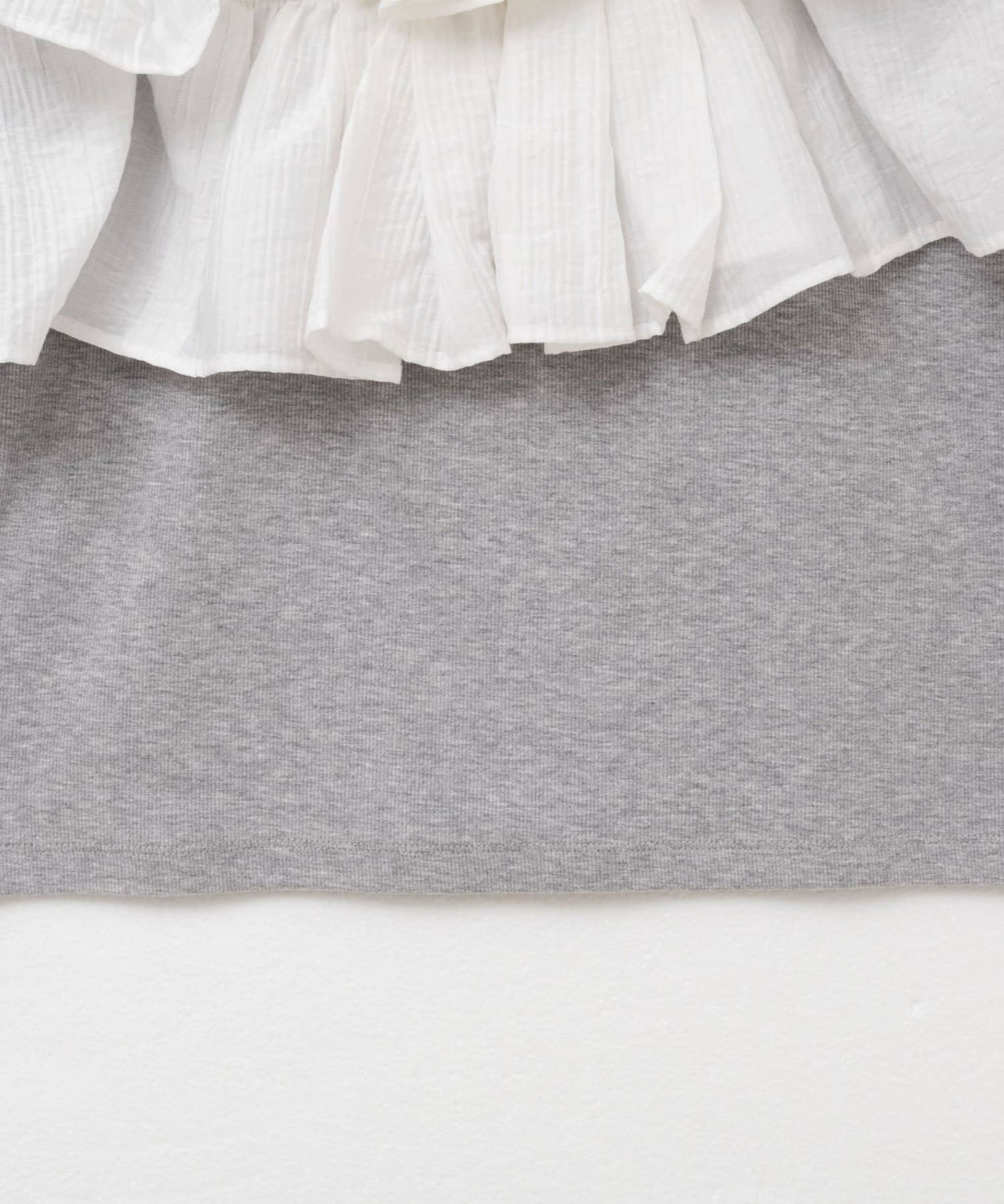 ・フリル部分は布帛を使用した、異素材使いのフェミニンな1枚