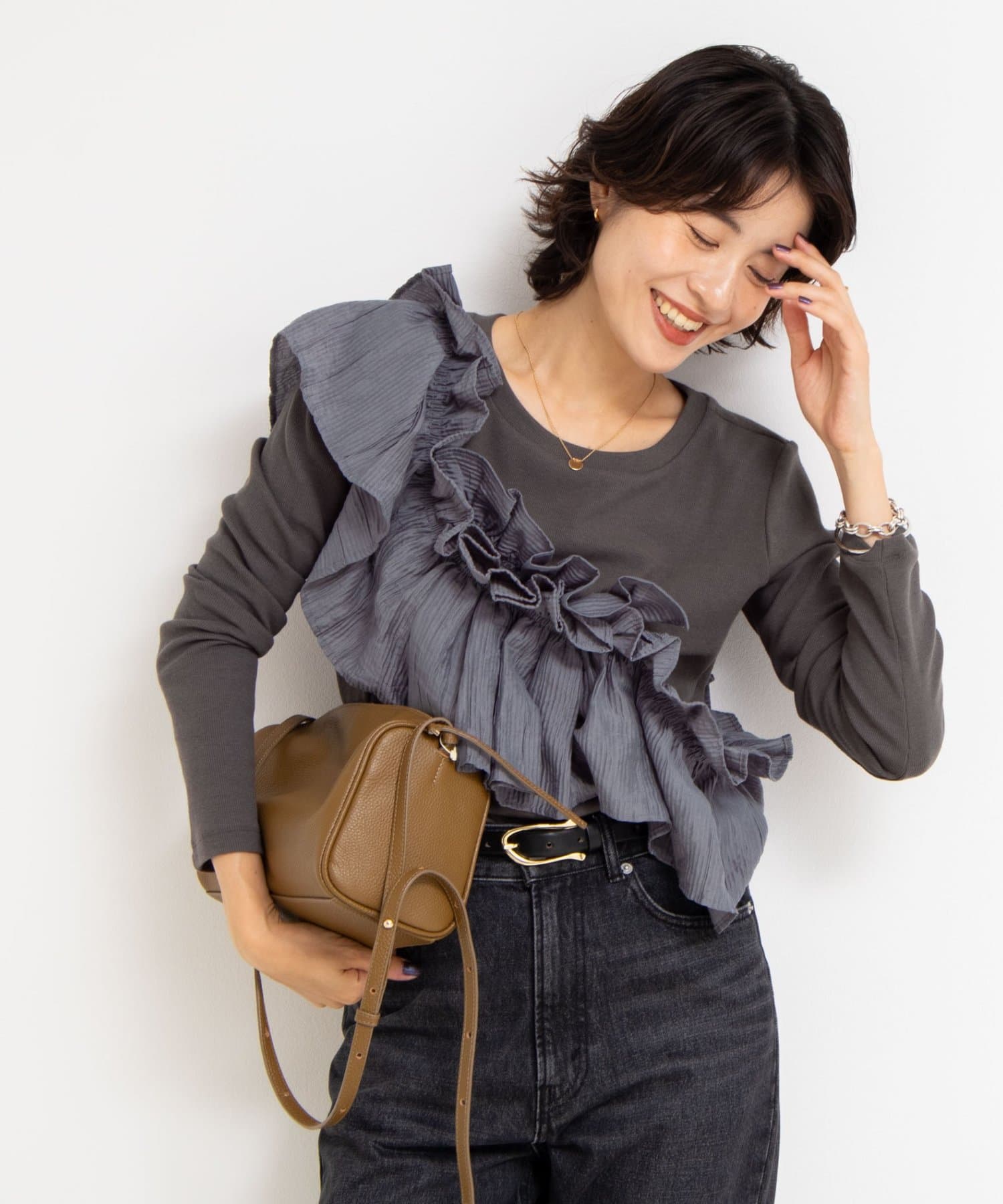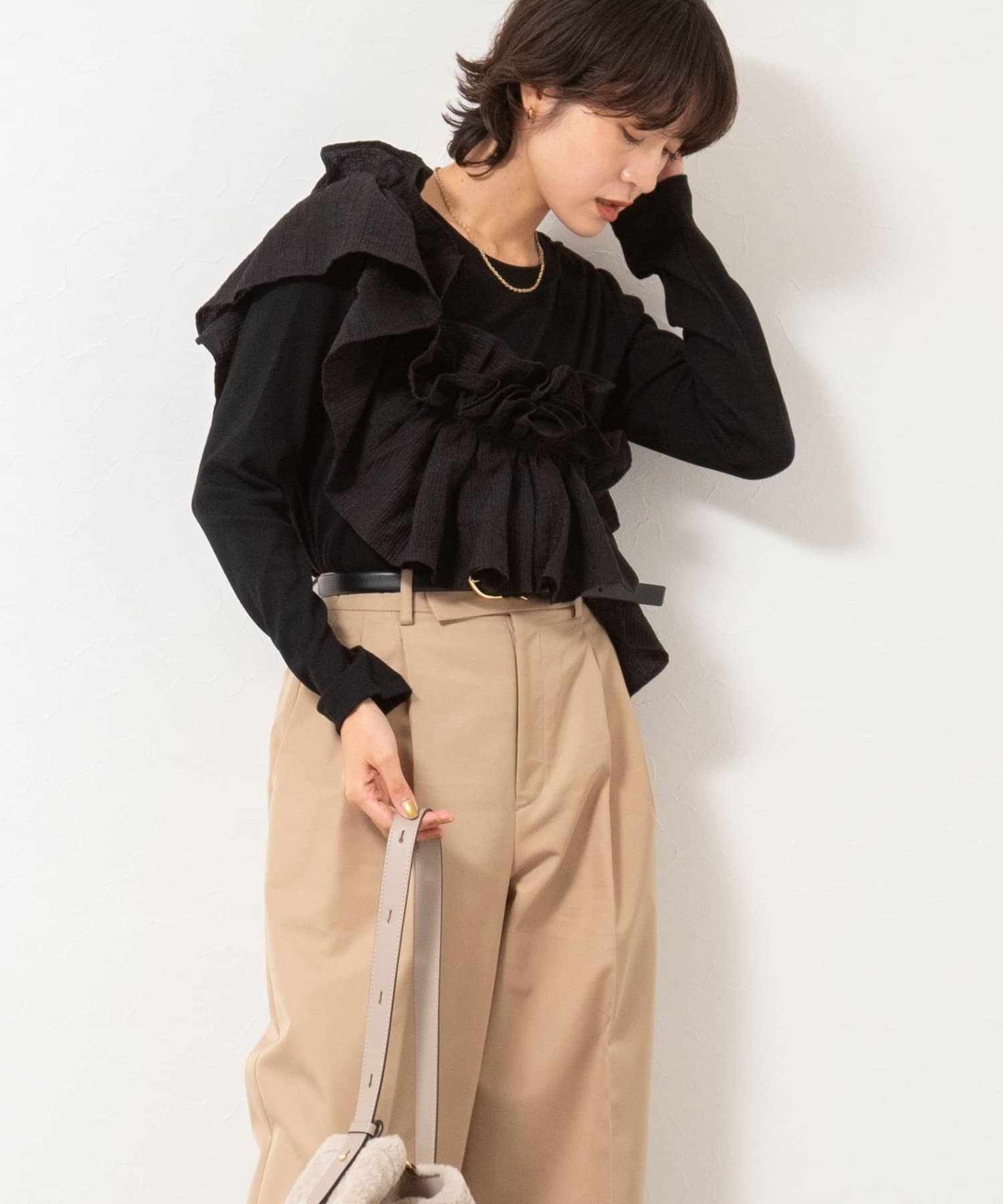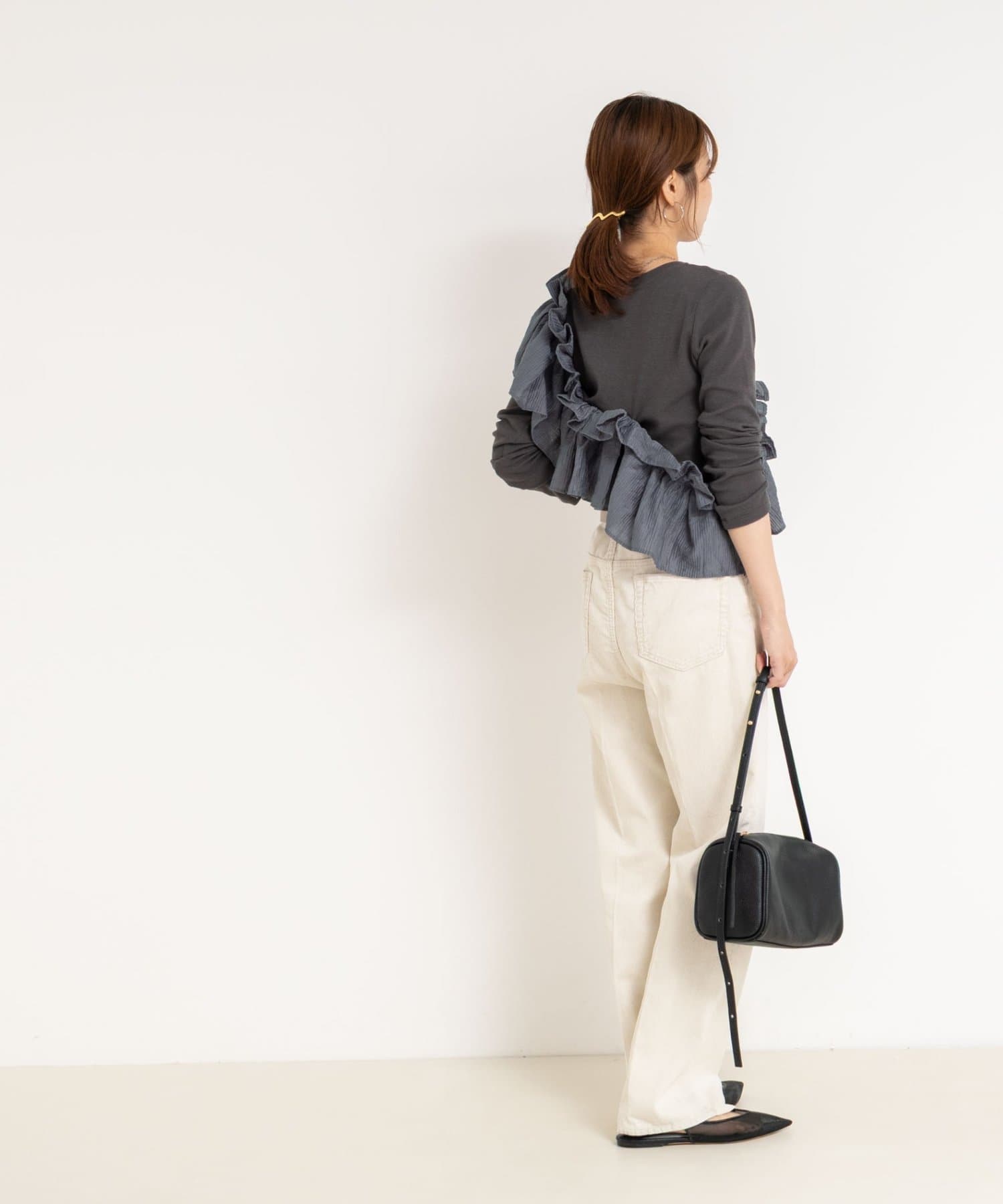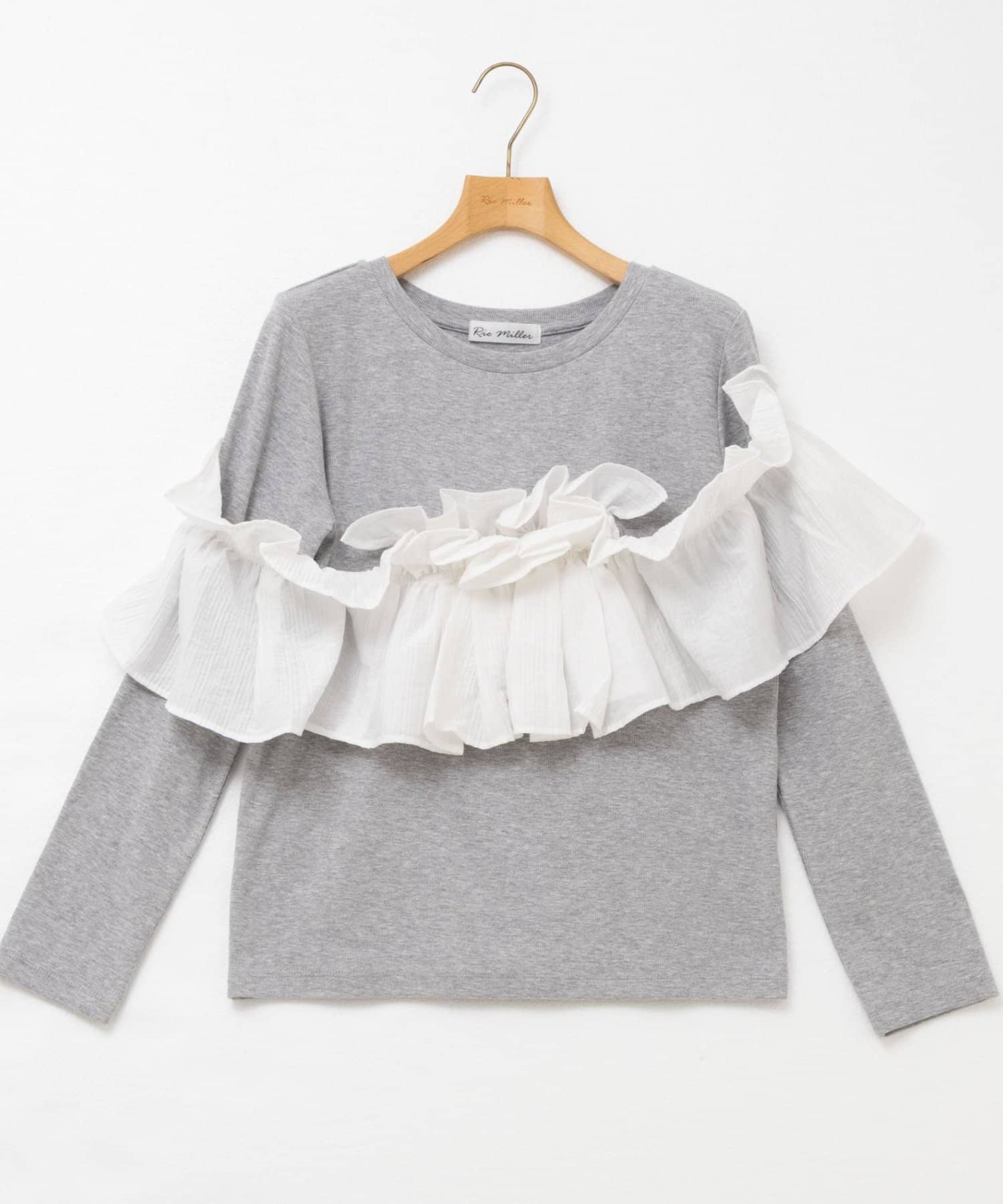 ・フリル部分は布帛を使用した、異素材使いのフェミニンな1枚