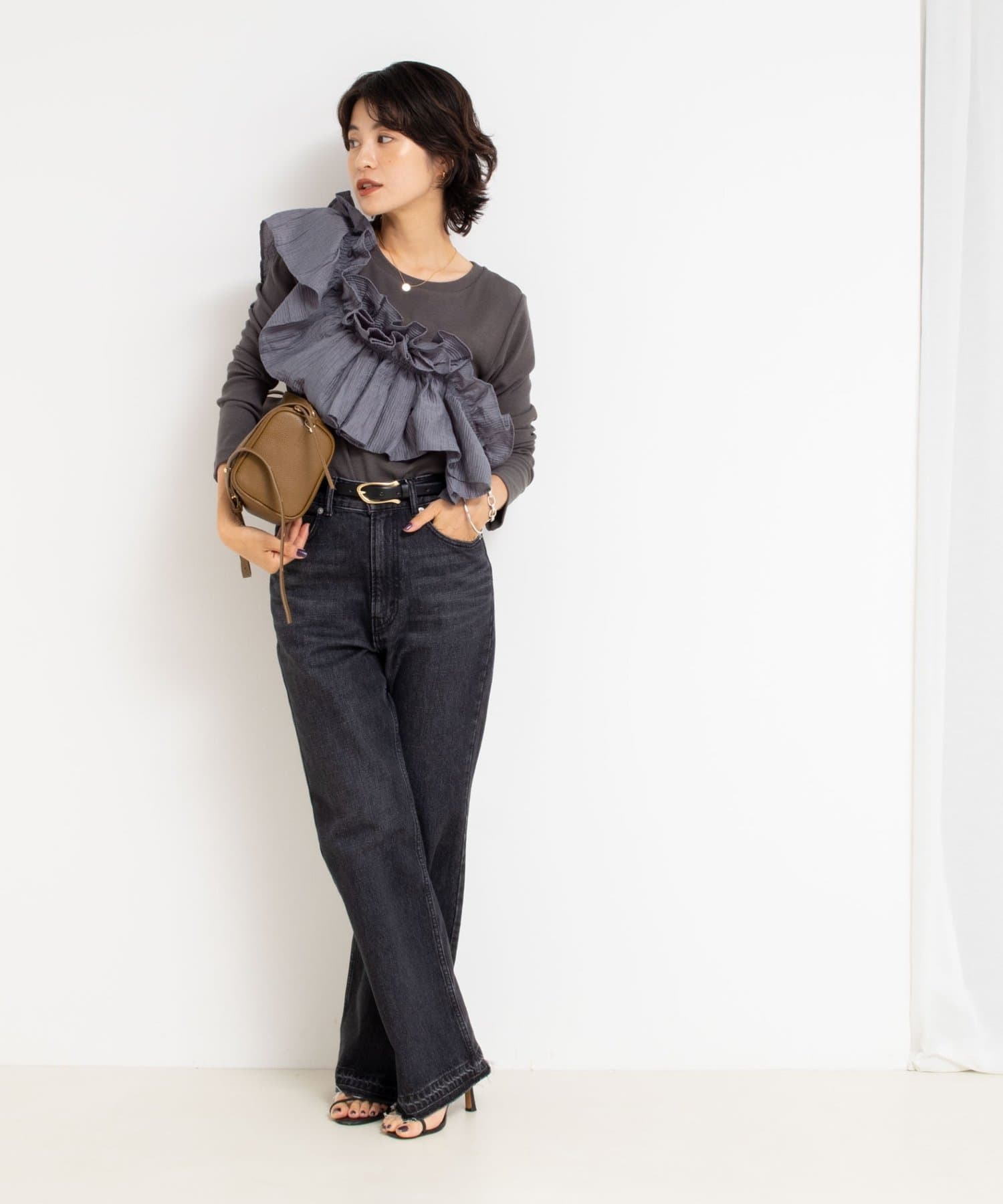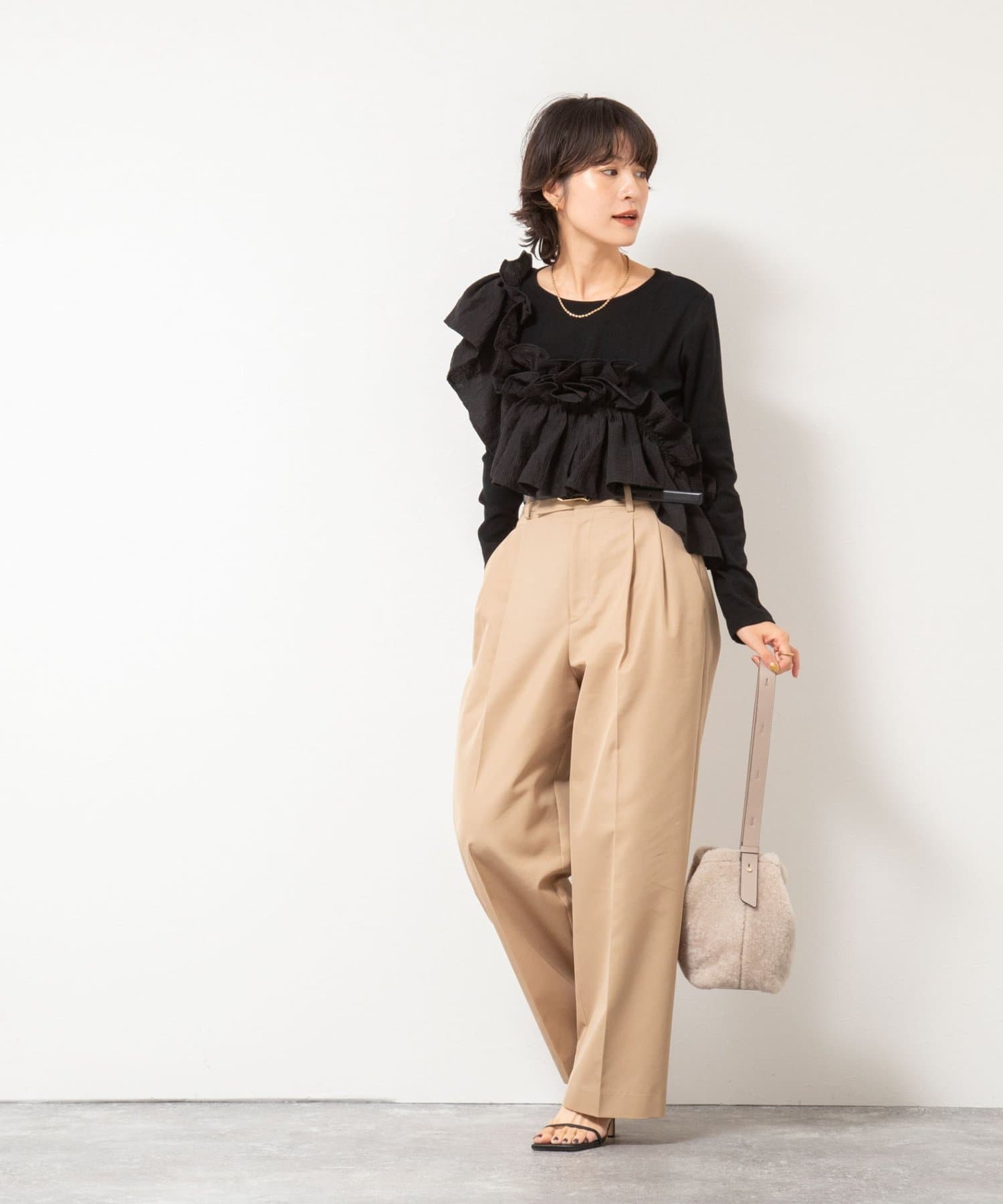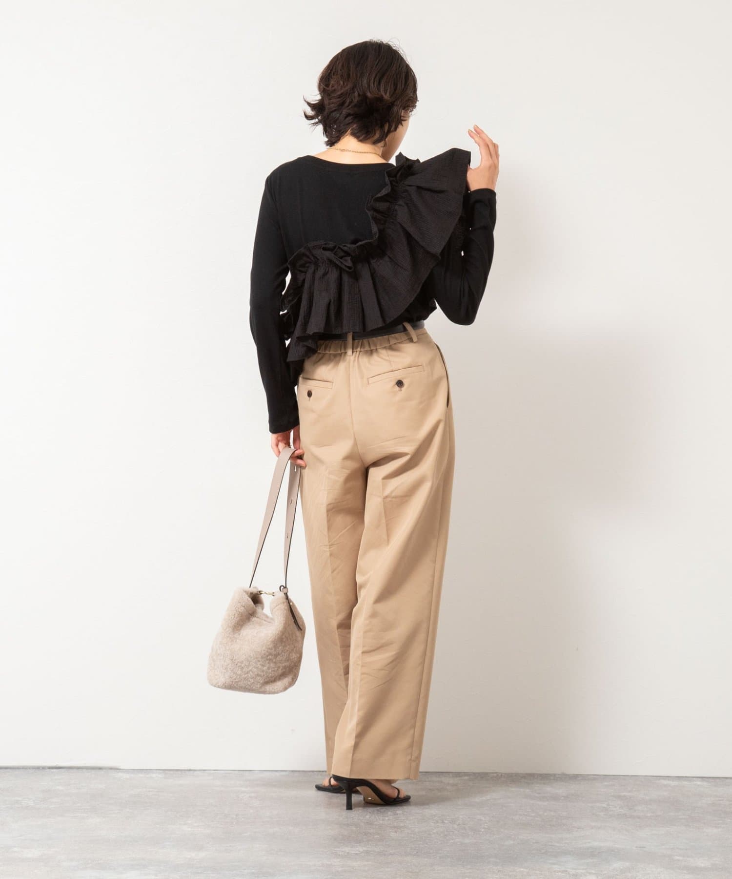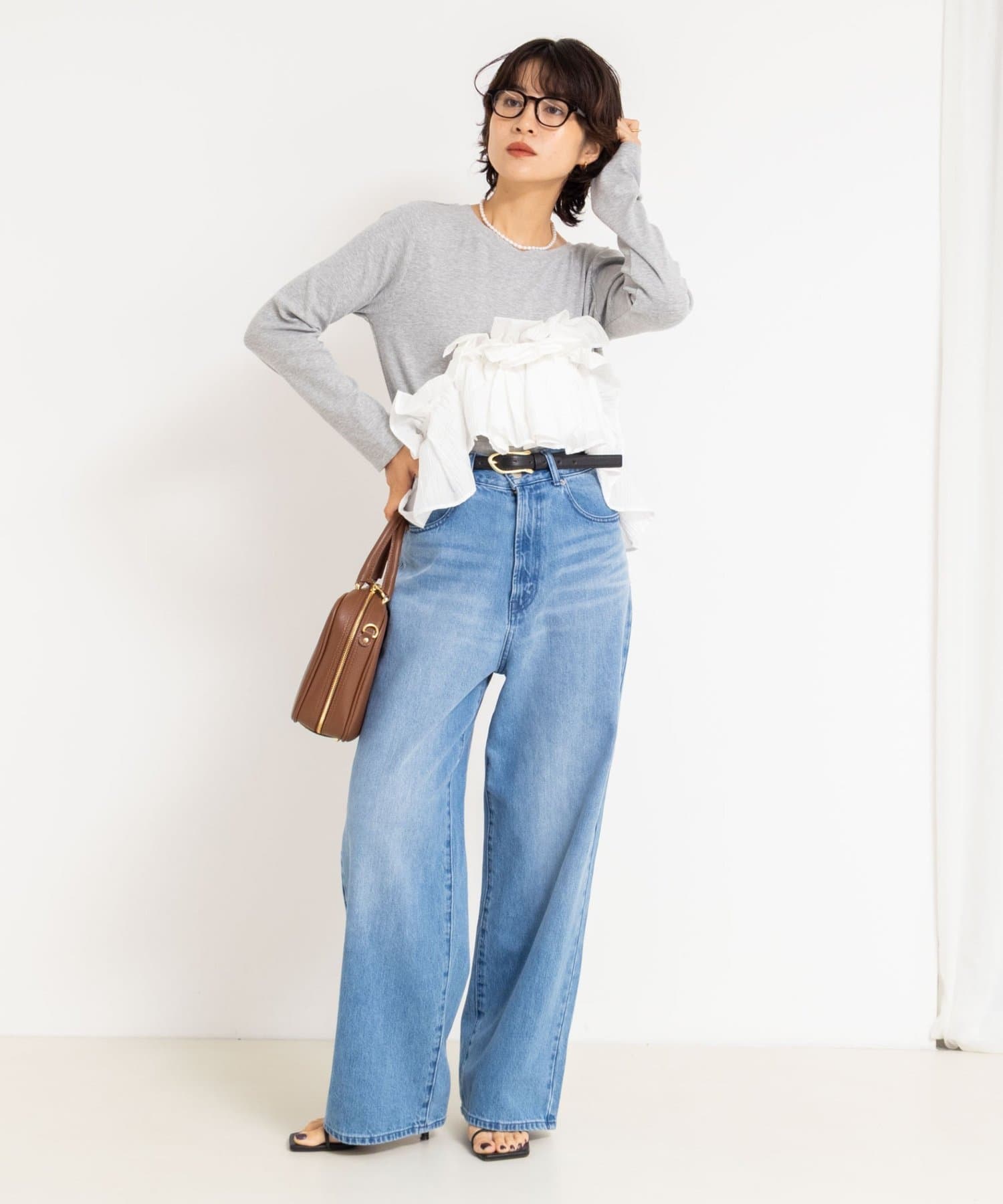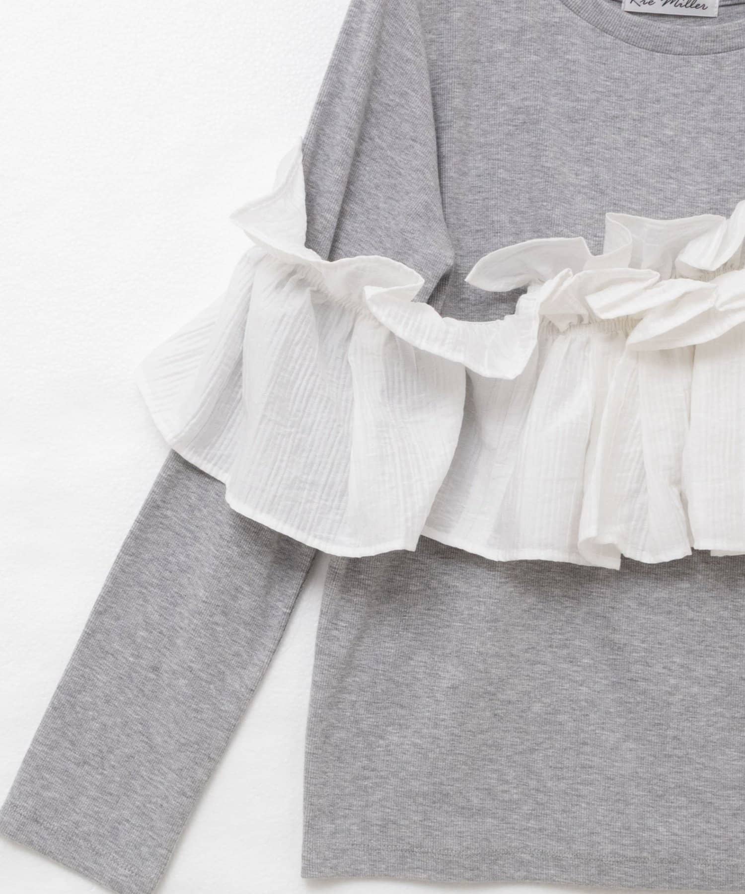 ・フリル部分は布帛を使用した、異素材使いのフェミニンな1枚