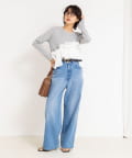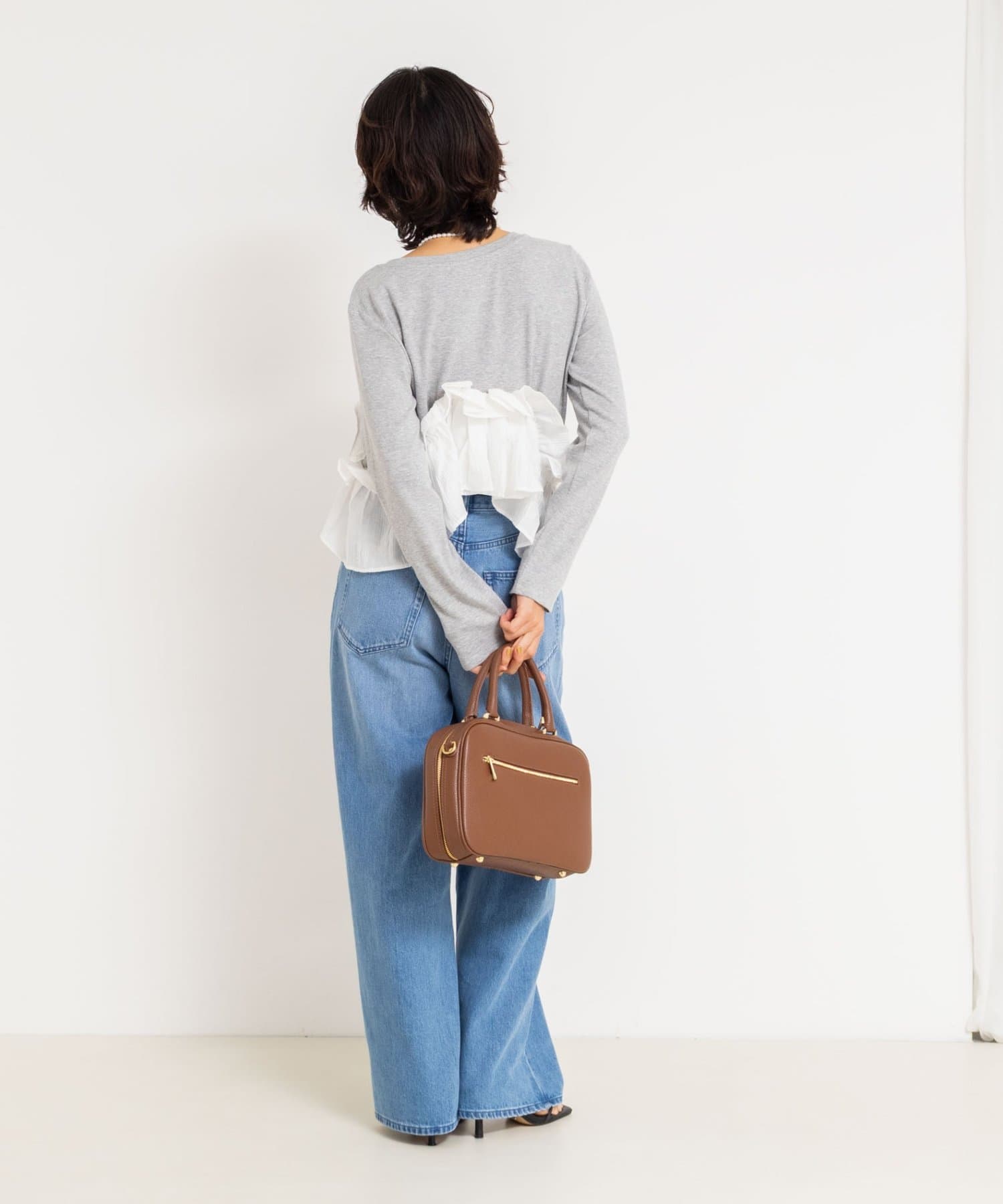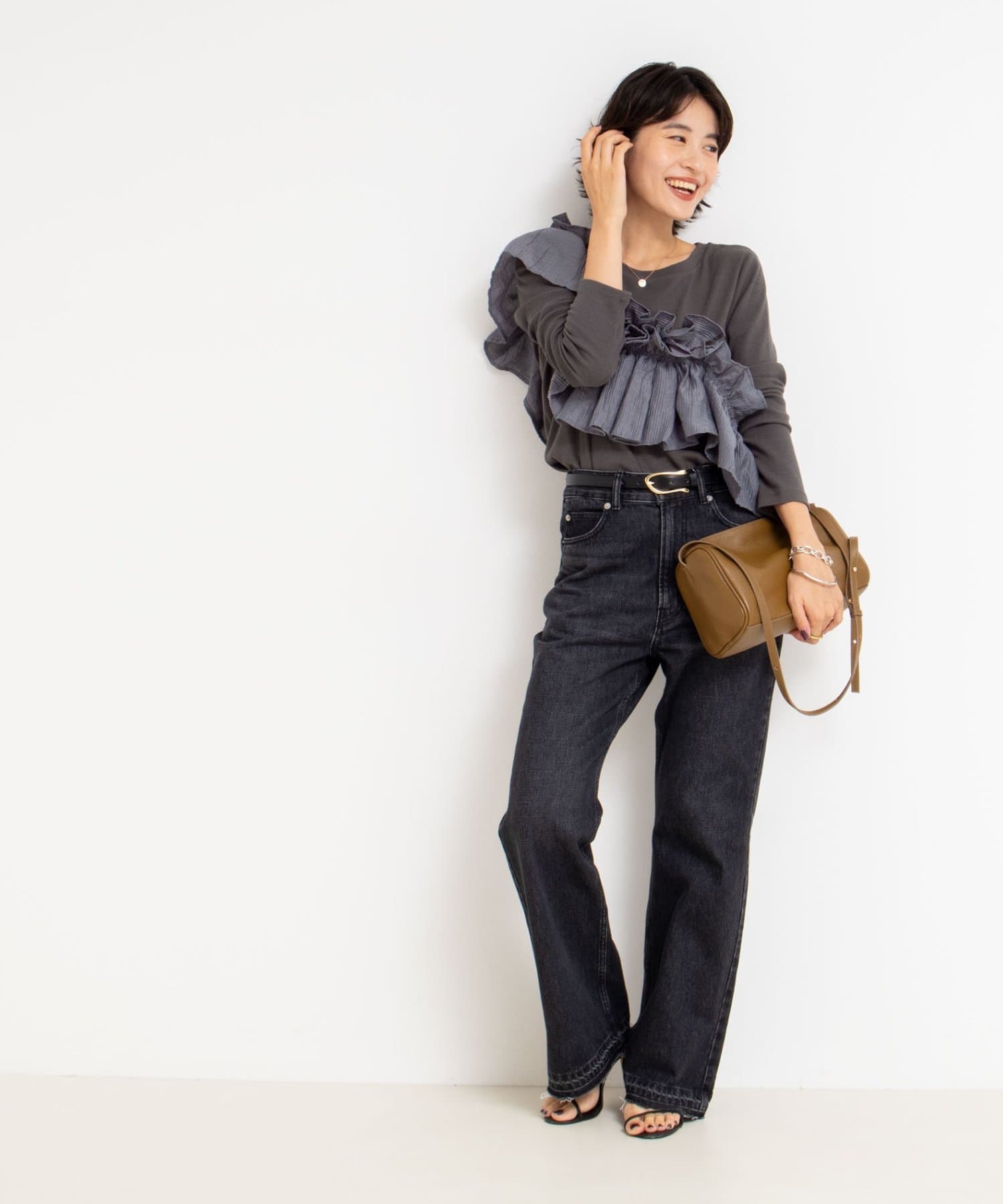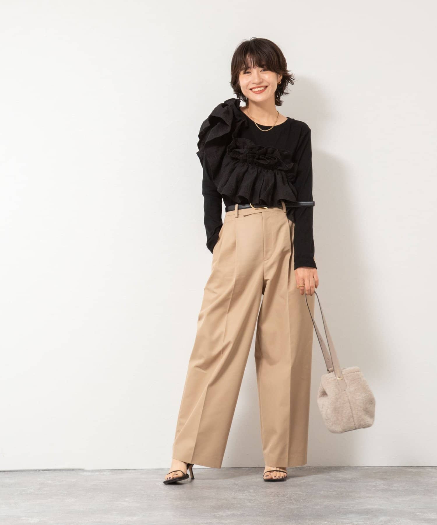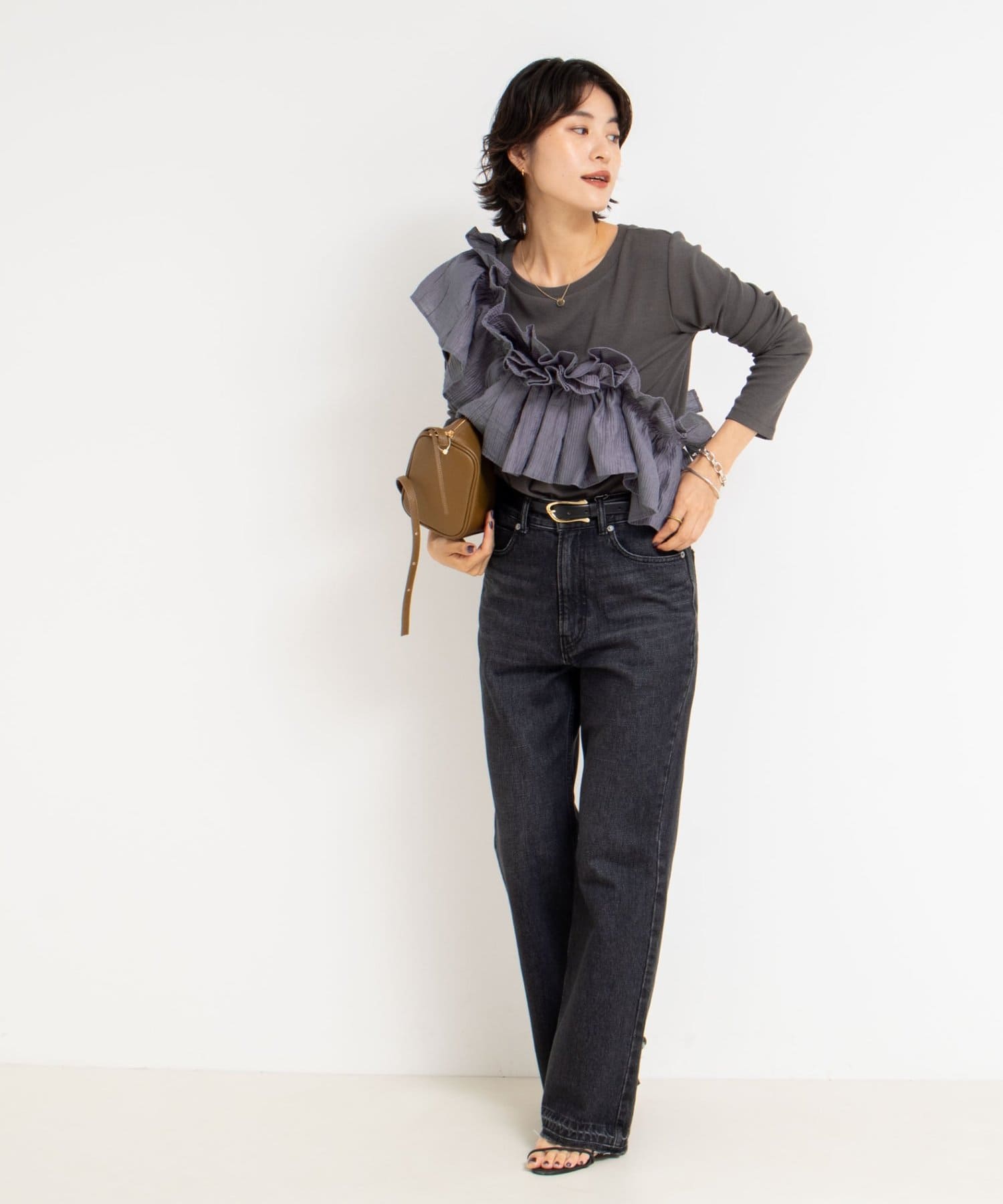 ・フリル部分は布帛を使用した、異素材使いのフェミニンな1枚