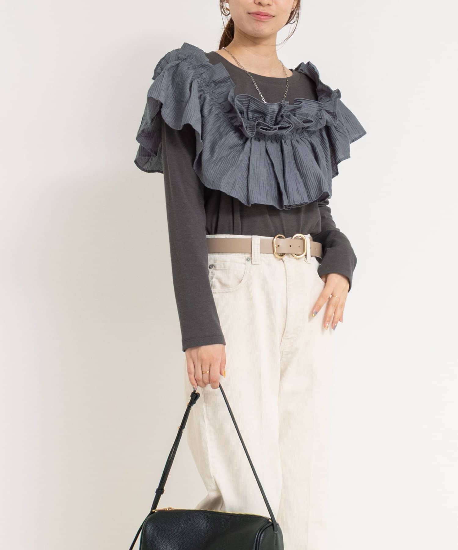 ・フリルの位置を変えることで様々な着こなしが楽しめる3WAYデザイン