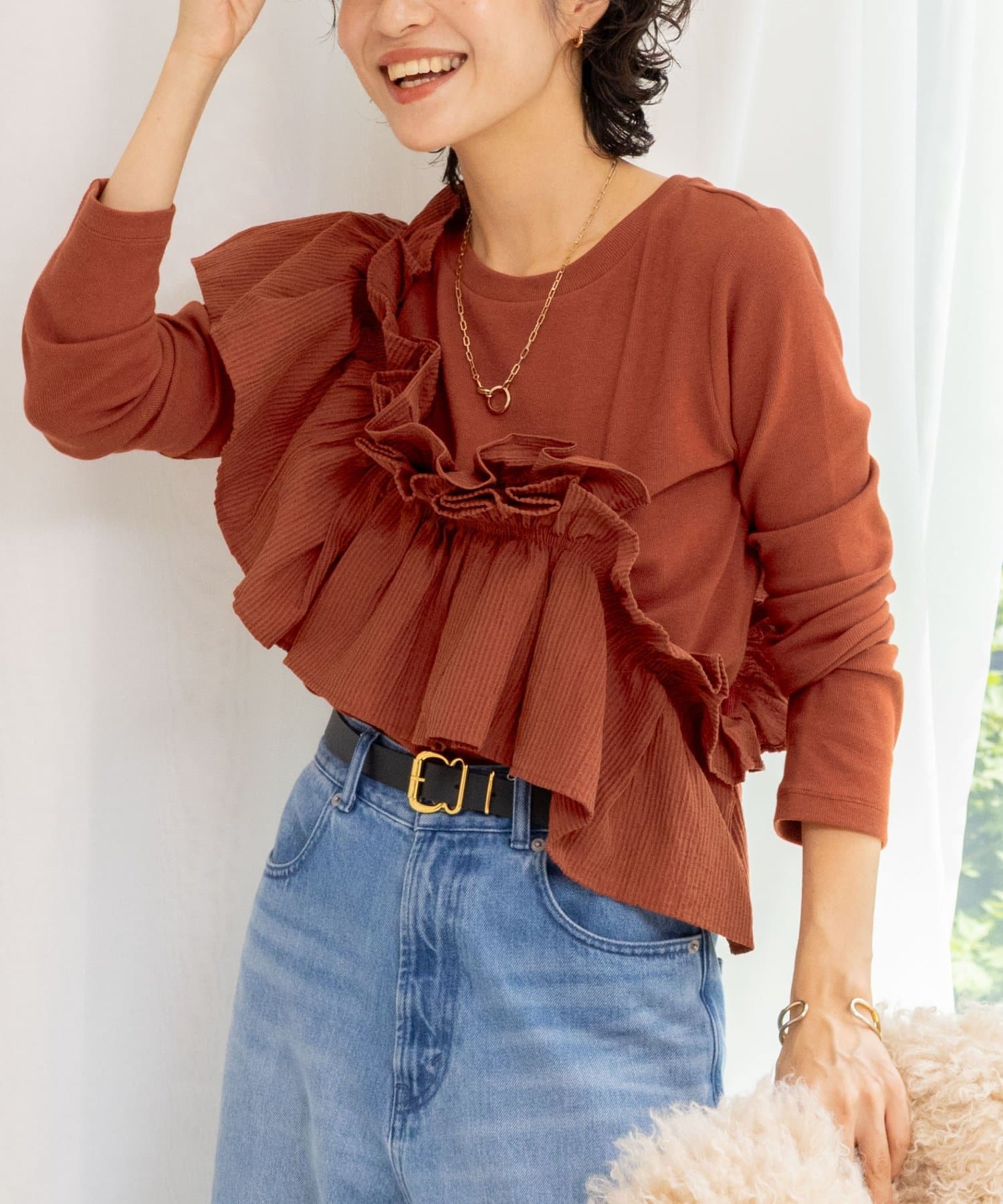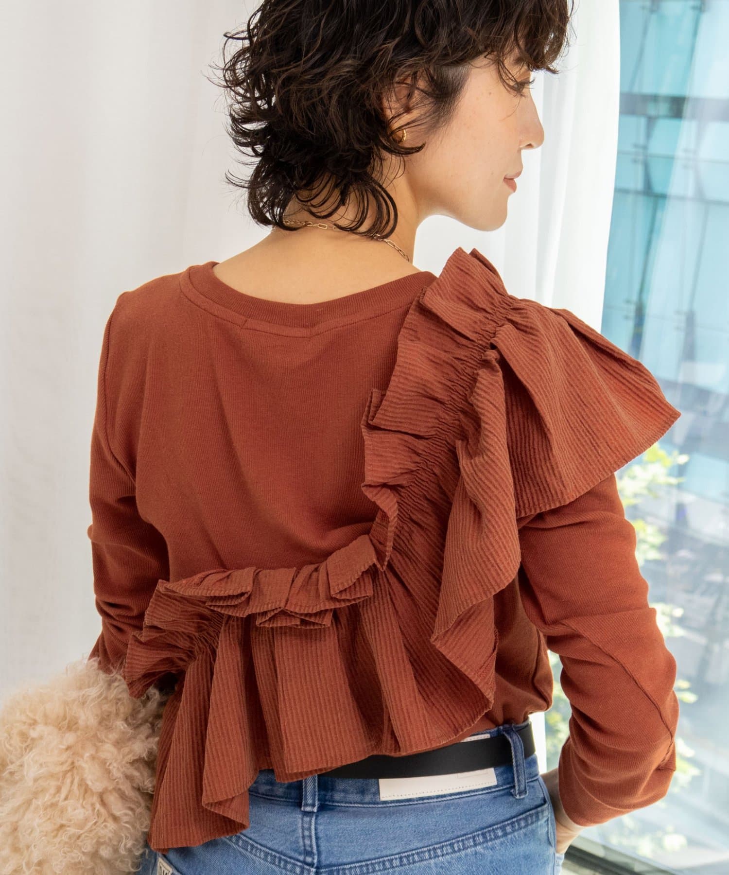TOP > NOLLEY'S > レディース > トップス > Tシャツ/カットソー > 3WAYリブフリルロンT
