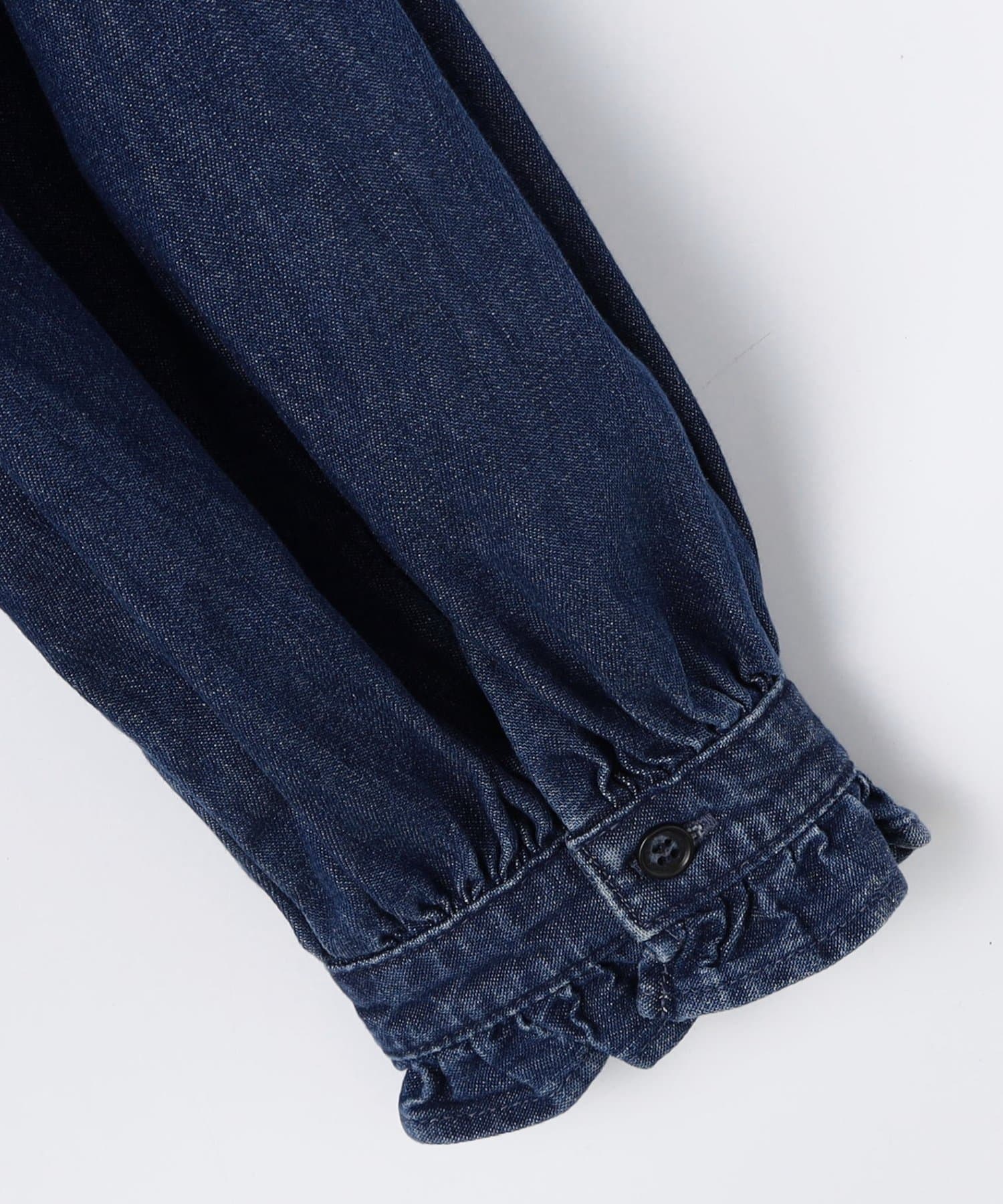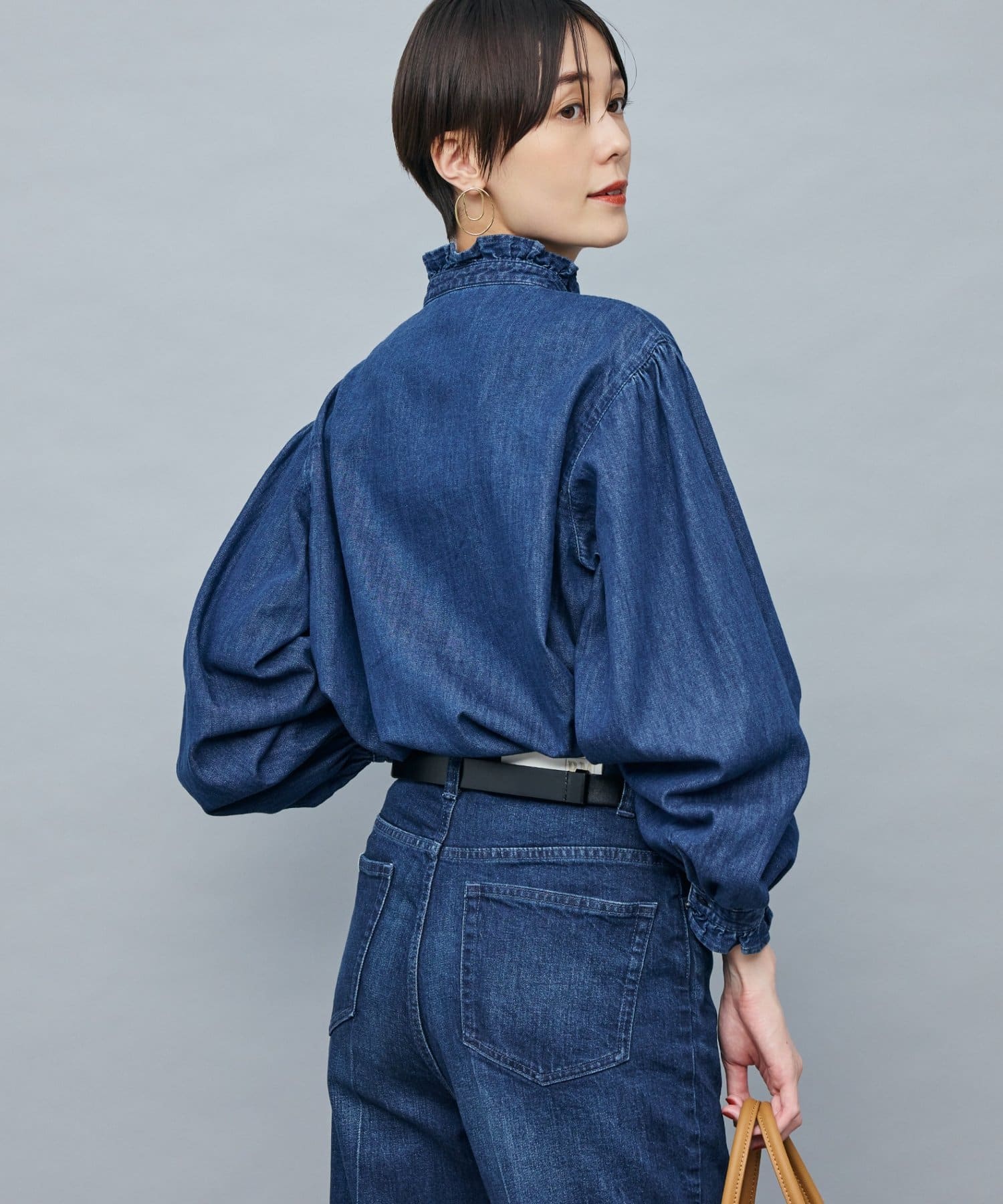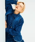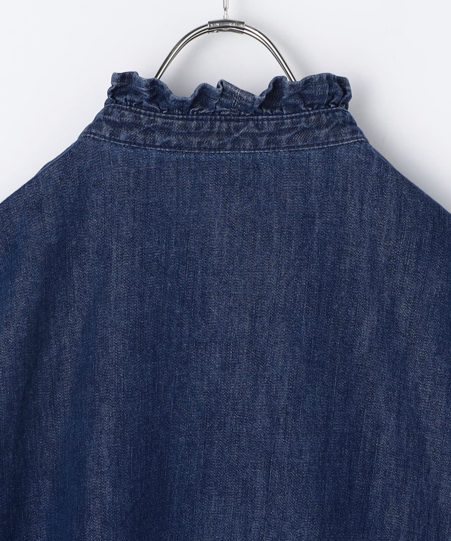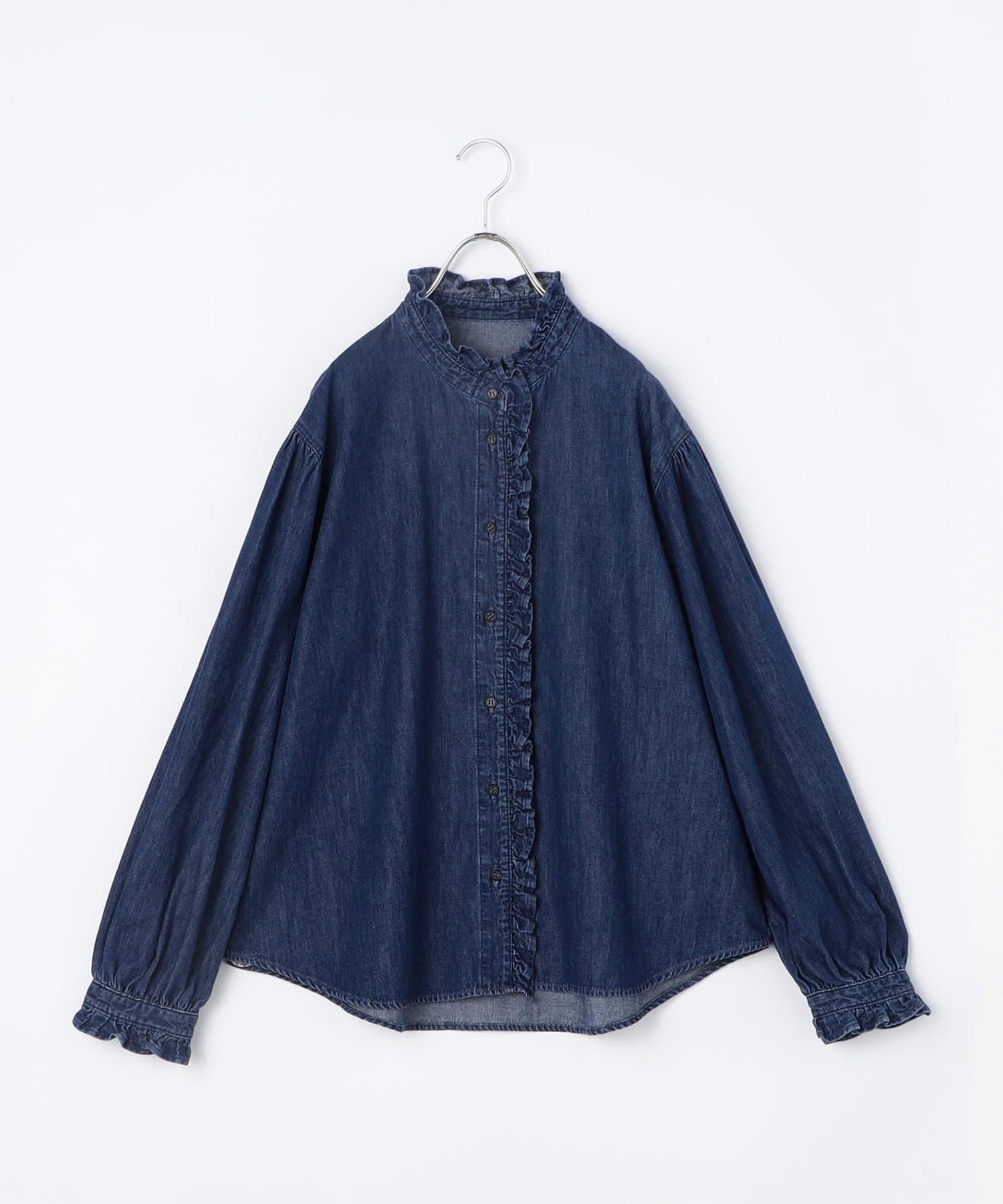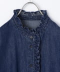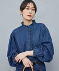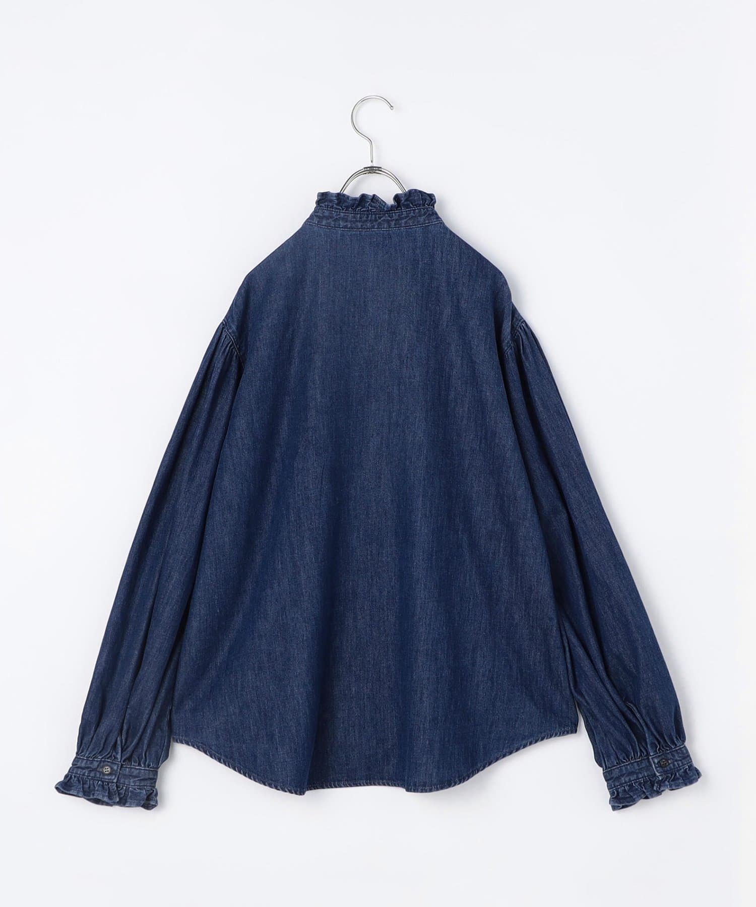 ・袖のボリュームとスタンドフリルがポイントのデニムシャツ