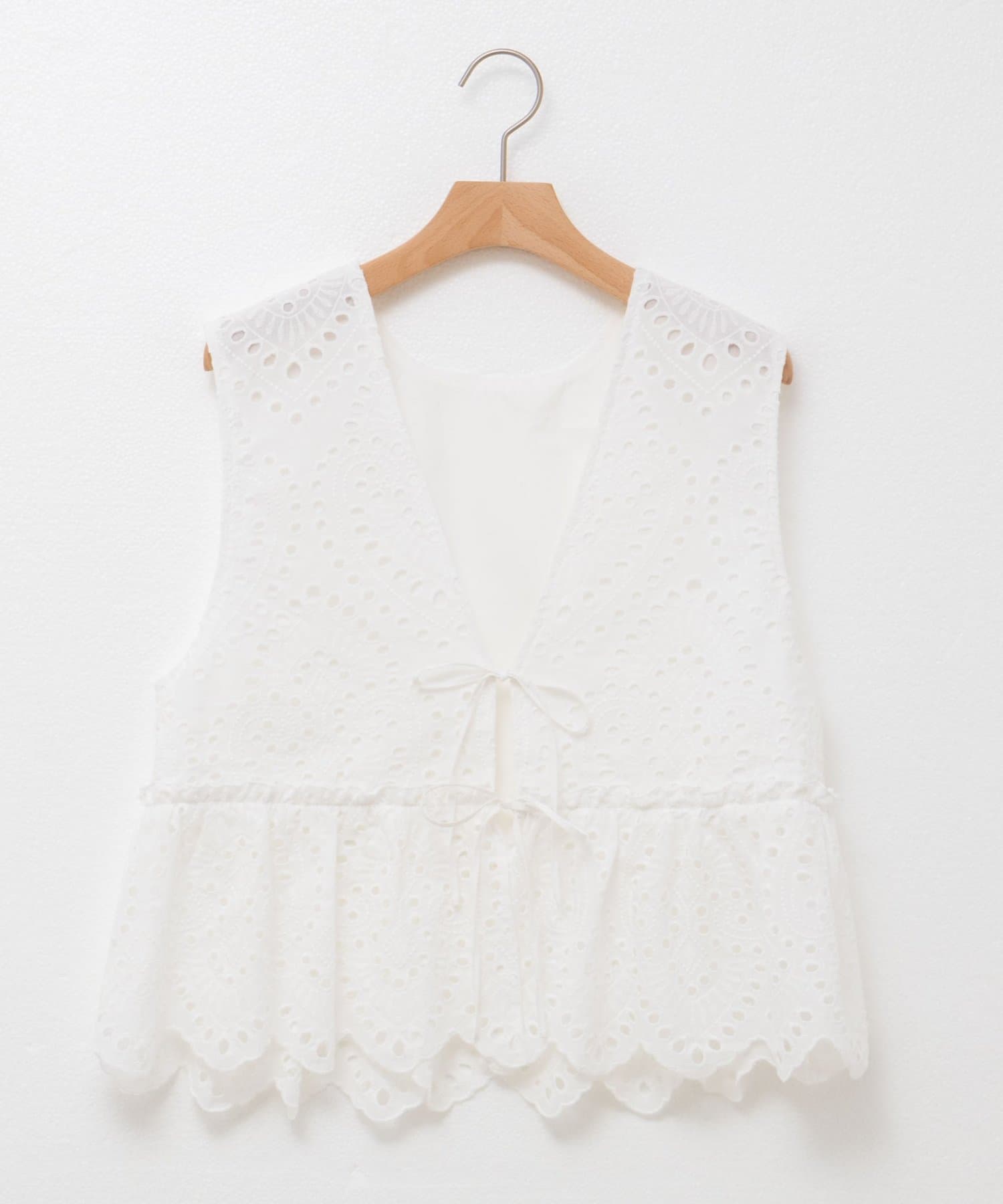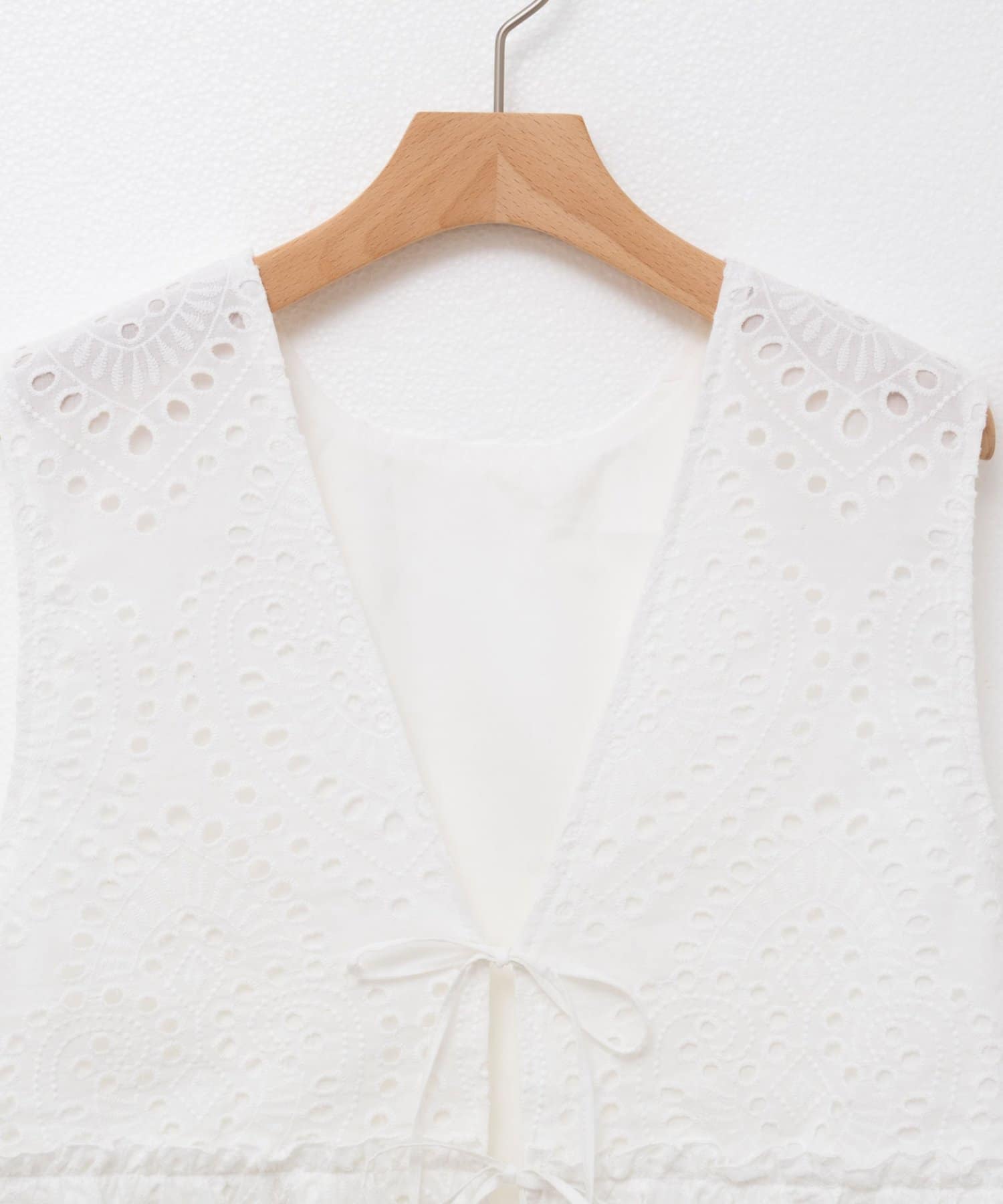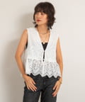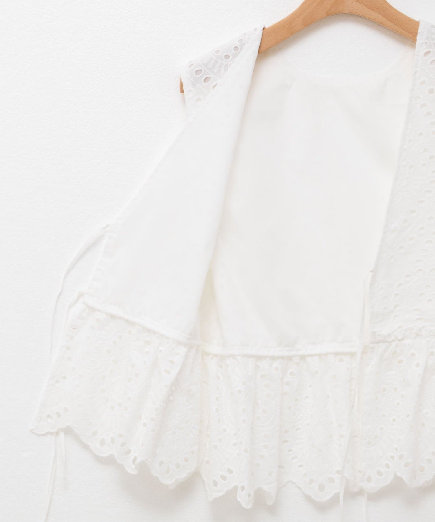 【MAQWEL】《セットアップ対応》ウォッシャブルエンブロイダリーレースベスト