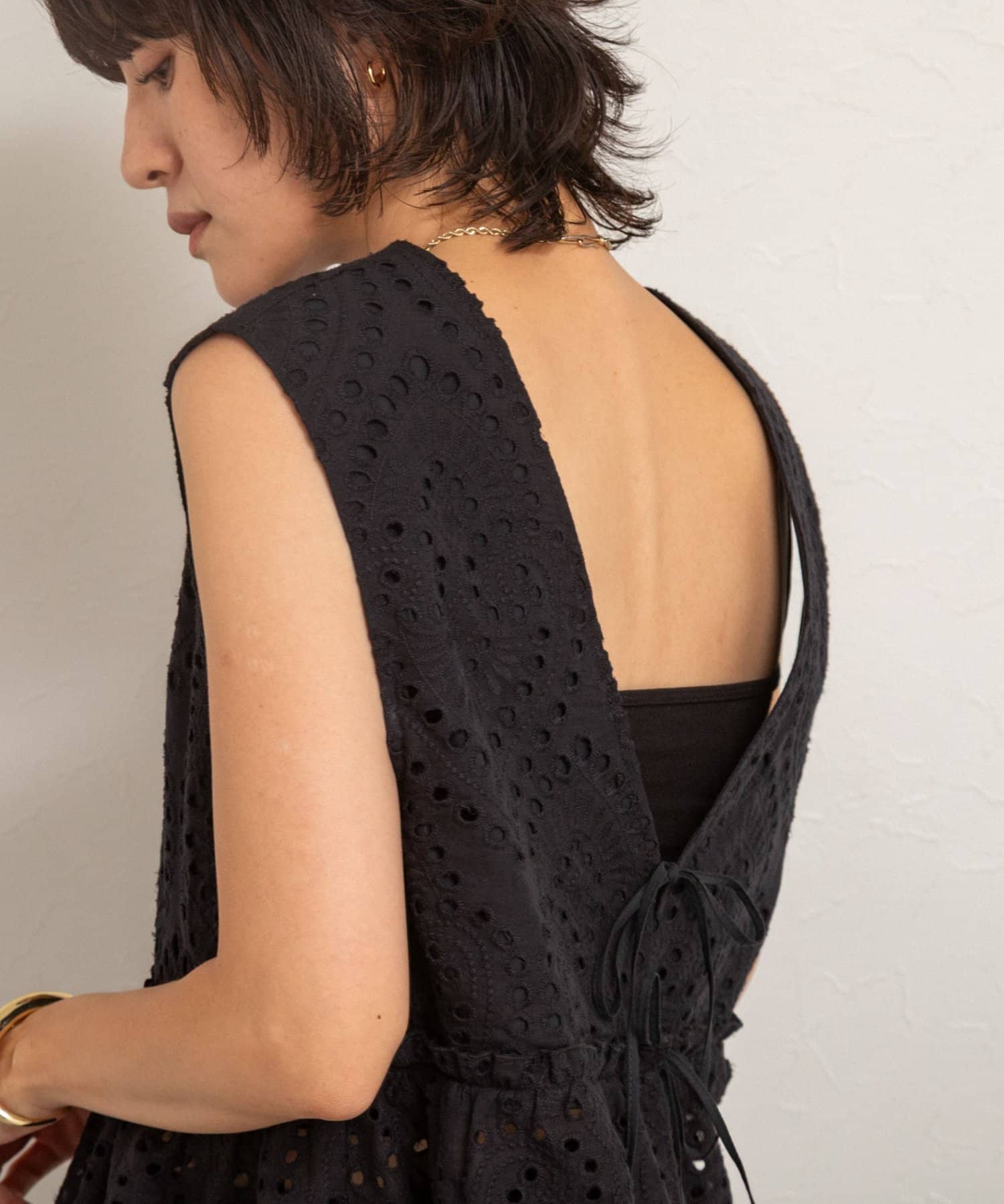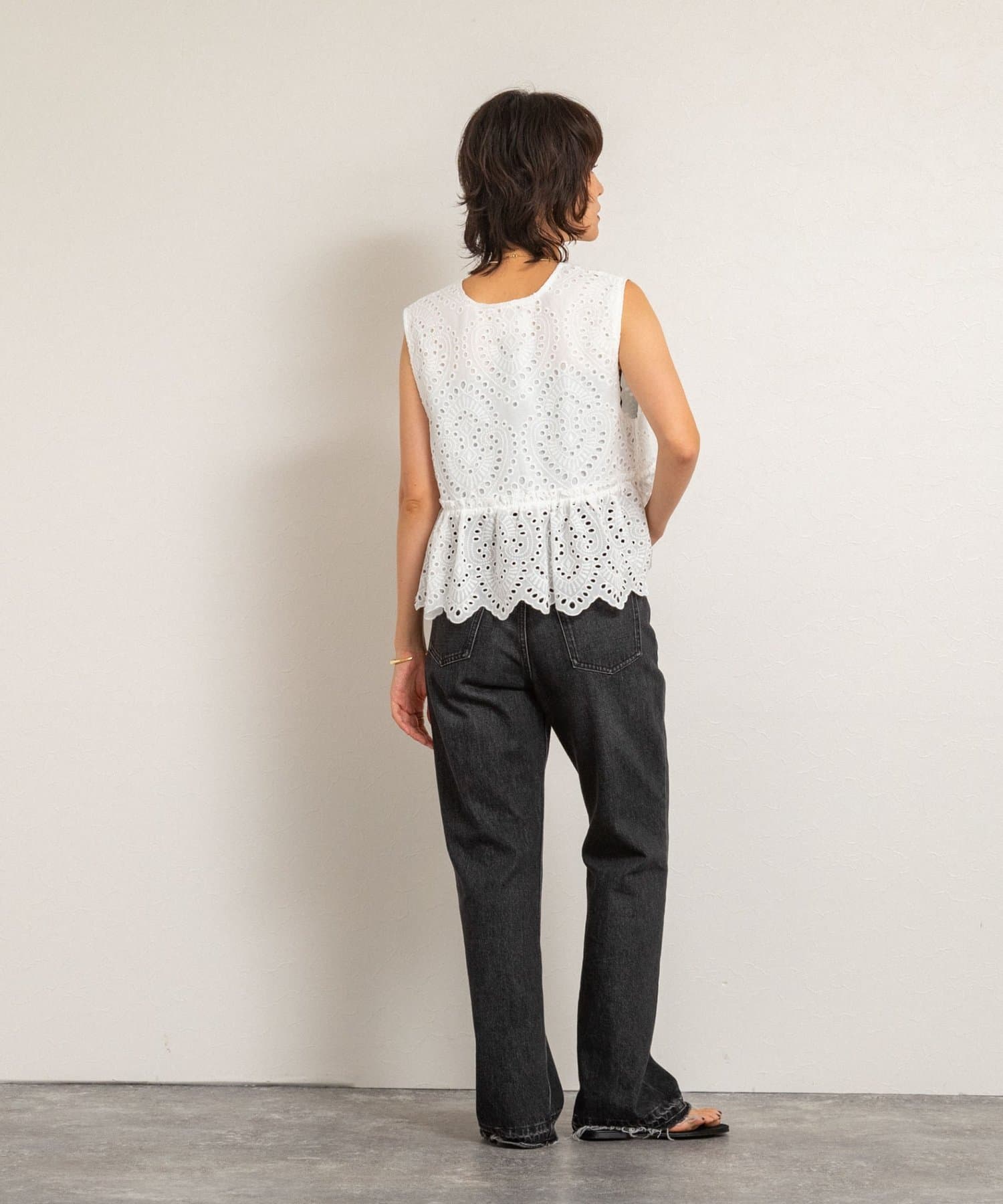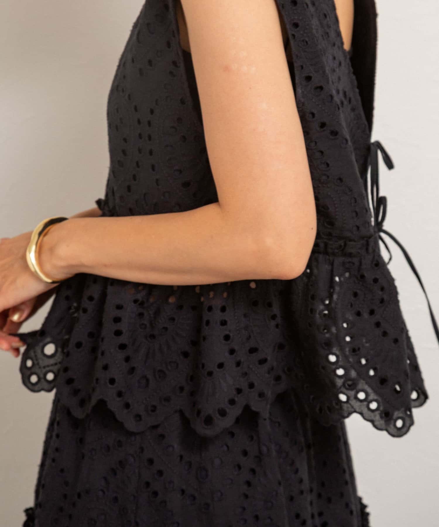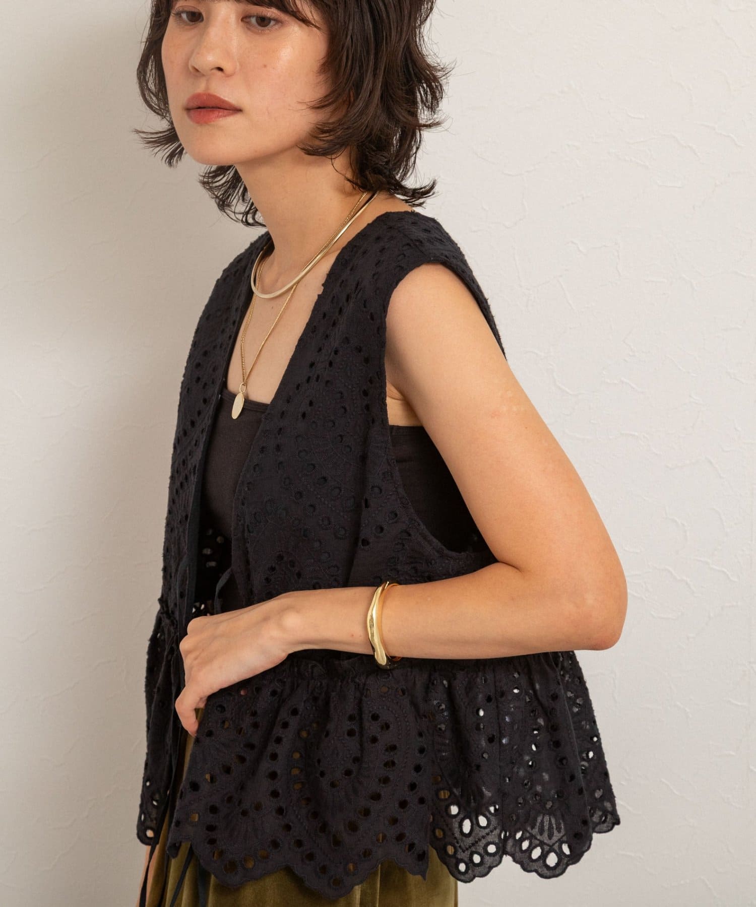 【MAQWEL】《セットアップ対応》ウォッシャブルエンブロイダリーレースベスト