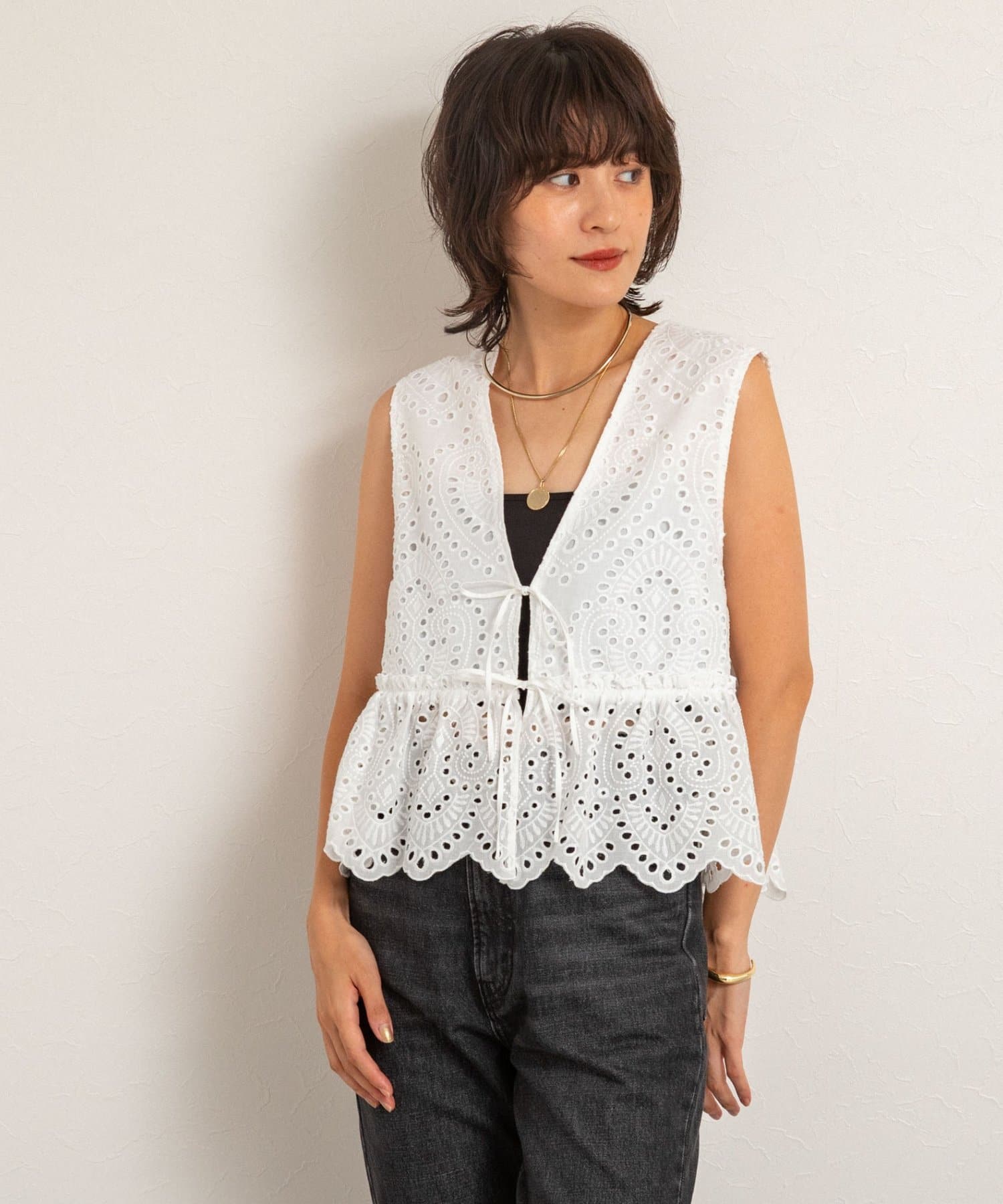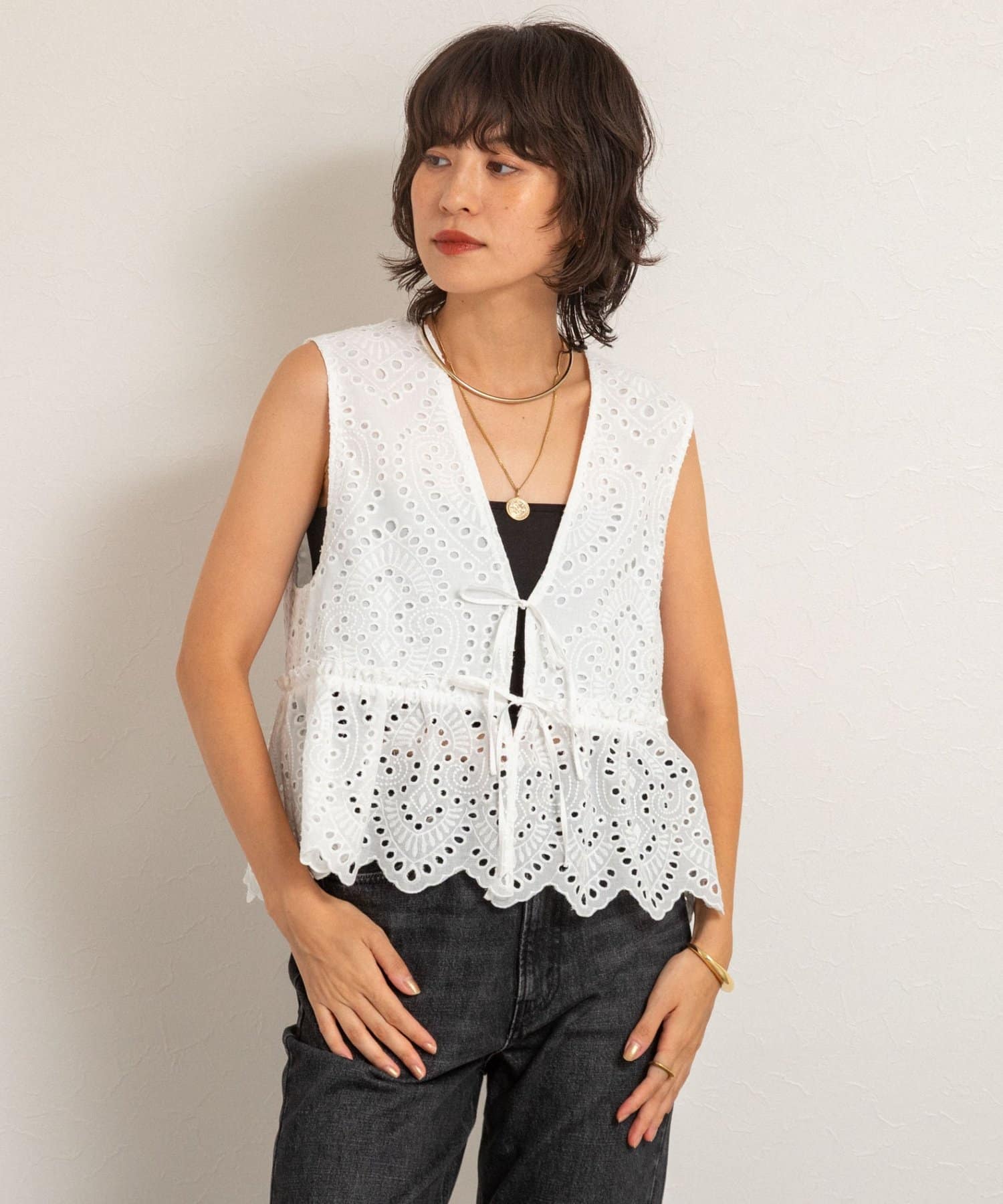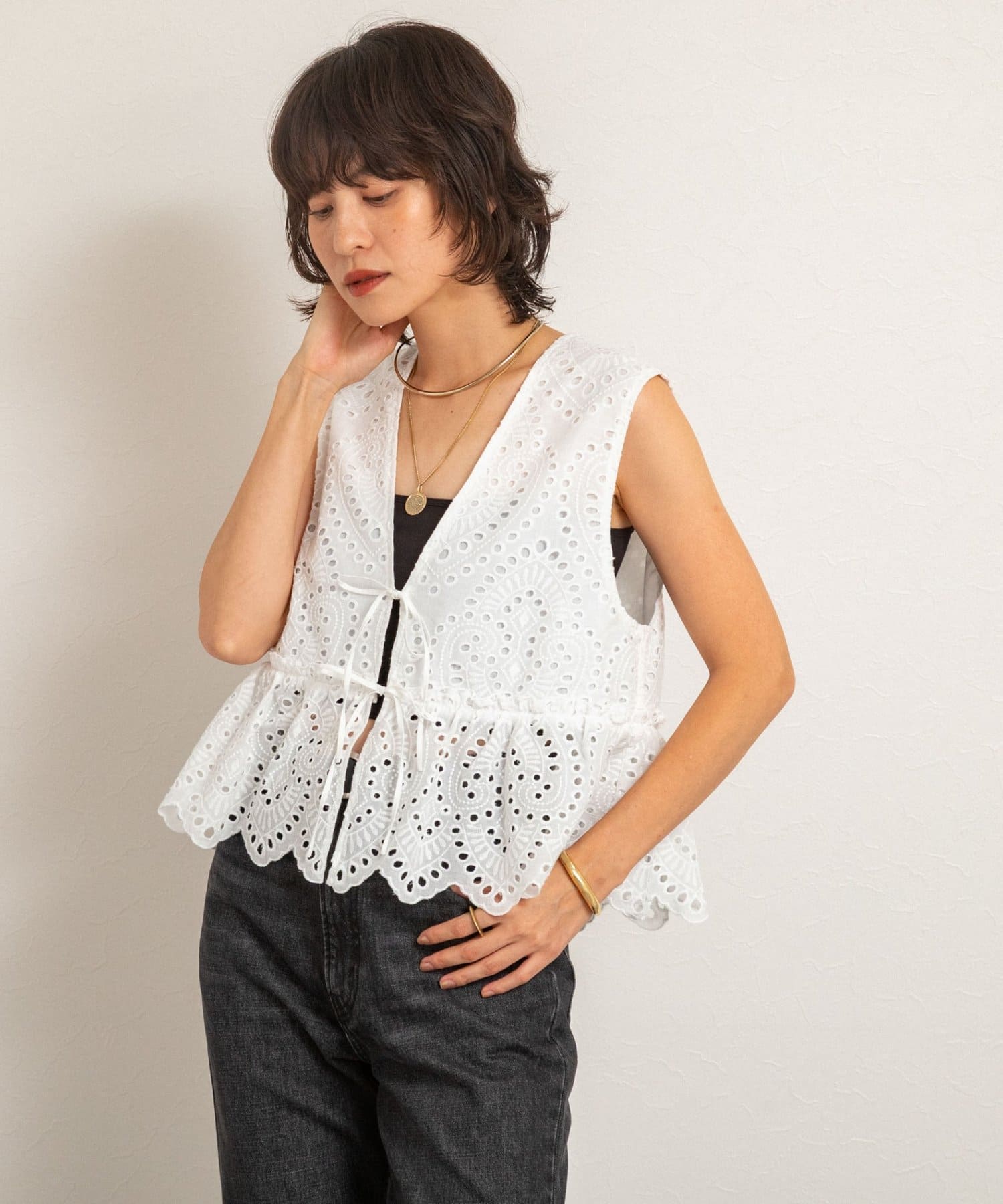 ・コーデに華をプラスしてくれるエンブロイダリーレースのベスト