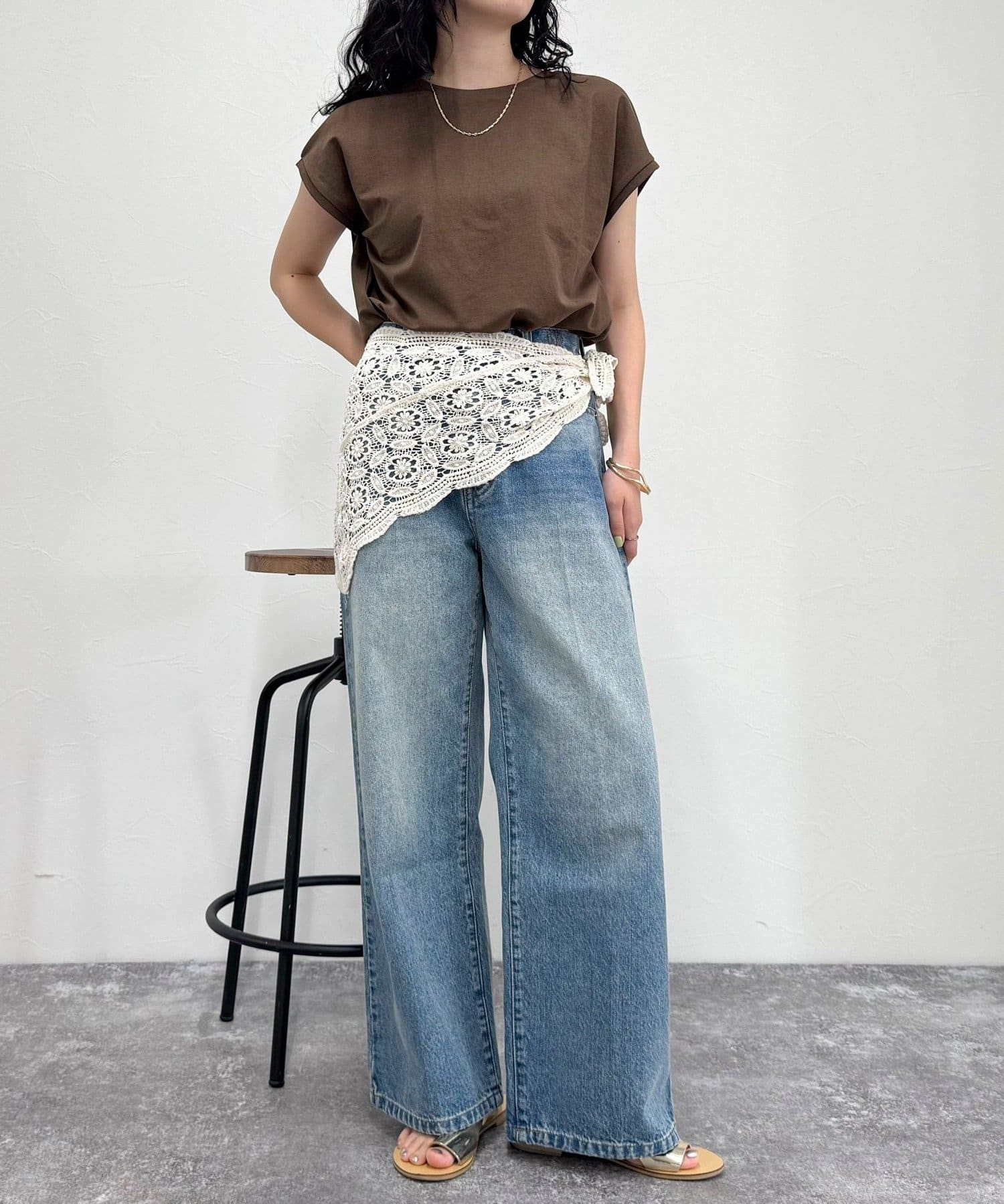 ・シンプルなTシャツにさらりと巻いてビスチェ風にしたり、腰に巻いたり、バッグに結んだりとアレンジ自由自在◎