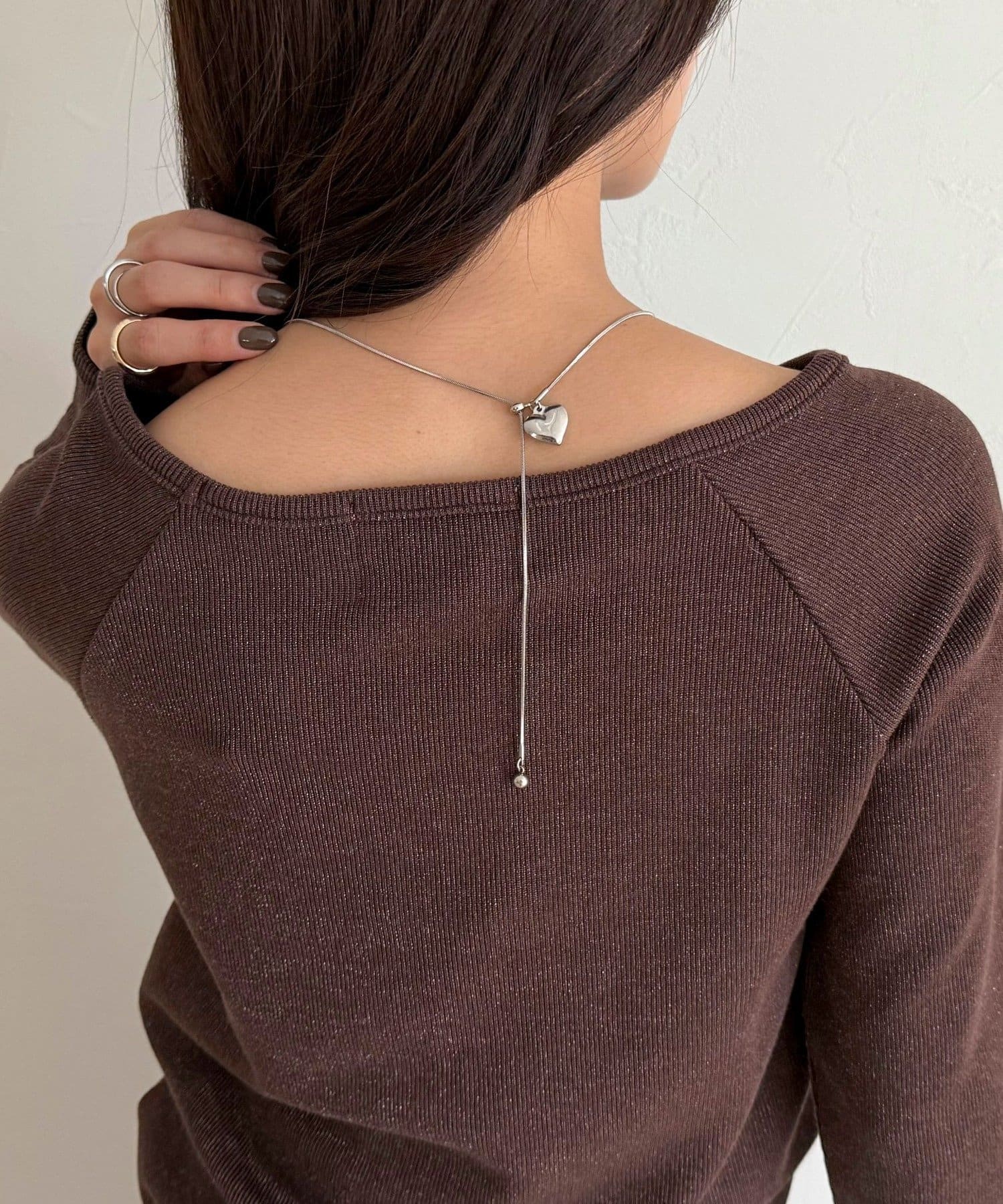 ・長さのあるデザインで、トップスの上から重ね着けしても映えるアイテム