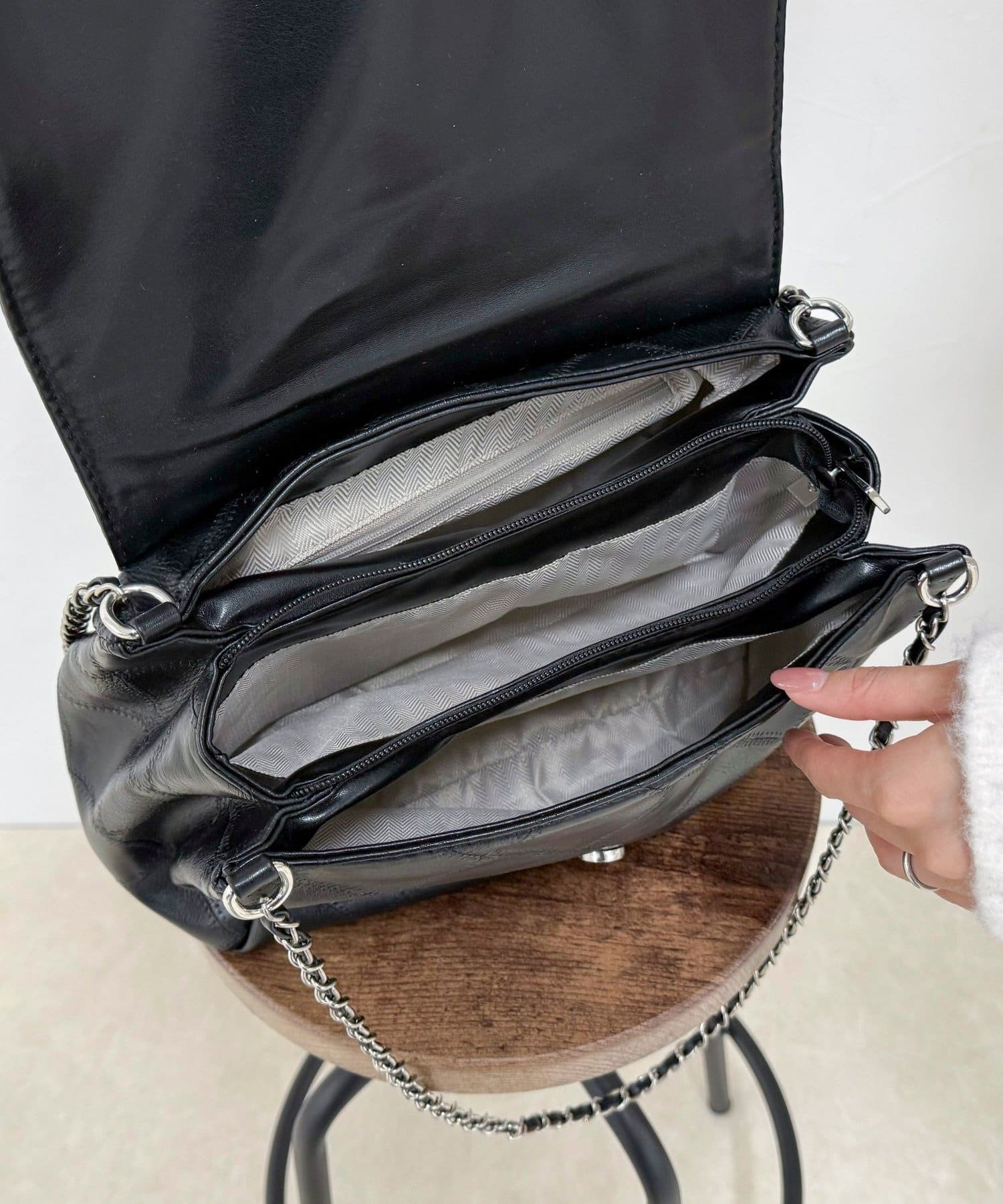 ・チェーンショルダーで肩掛けがお洒落に決まります