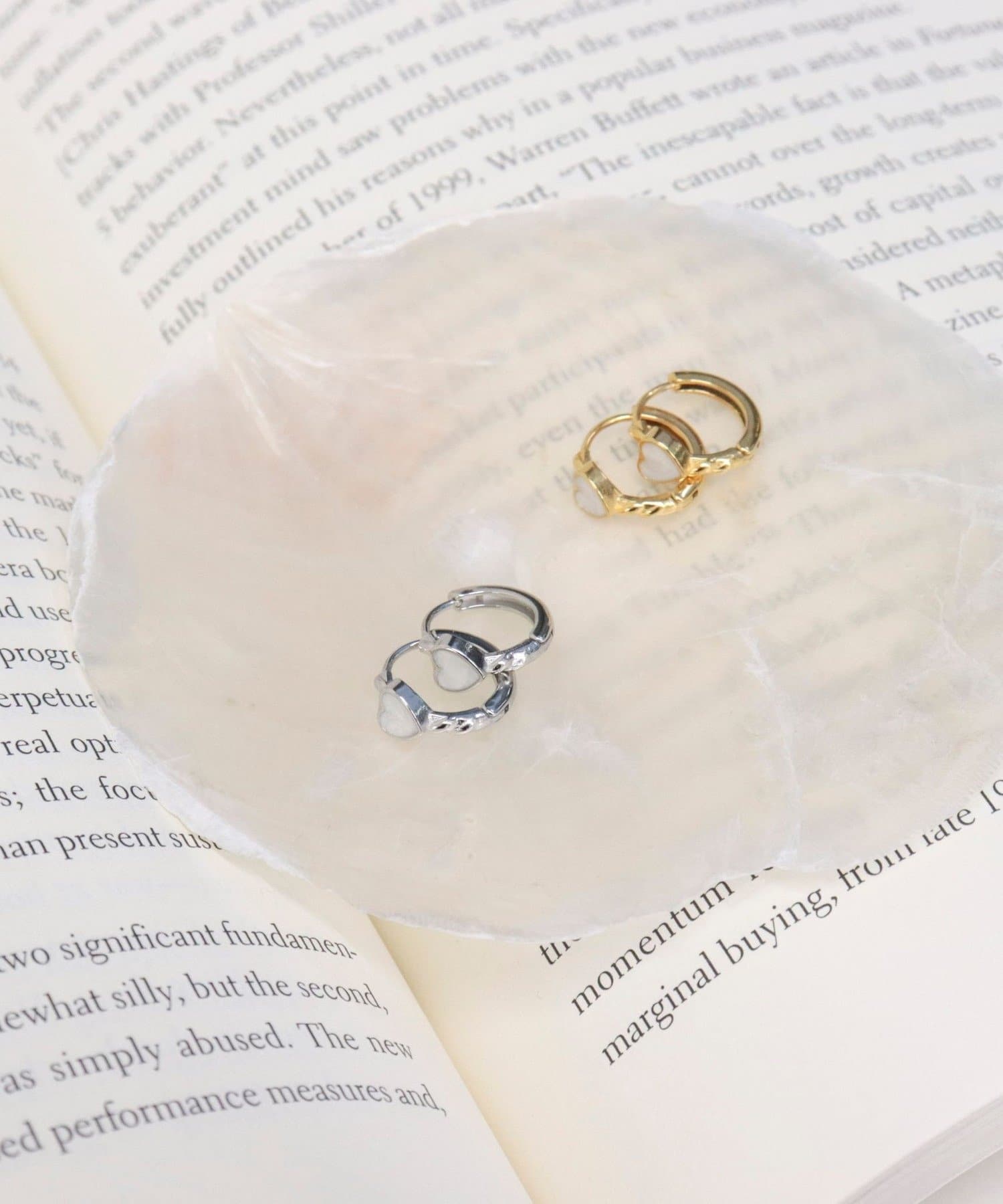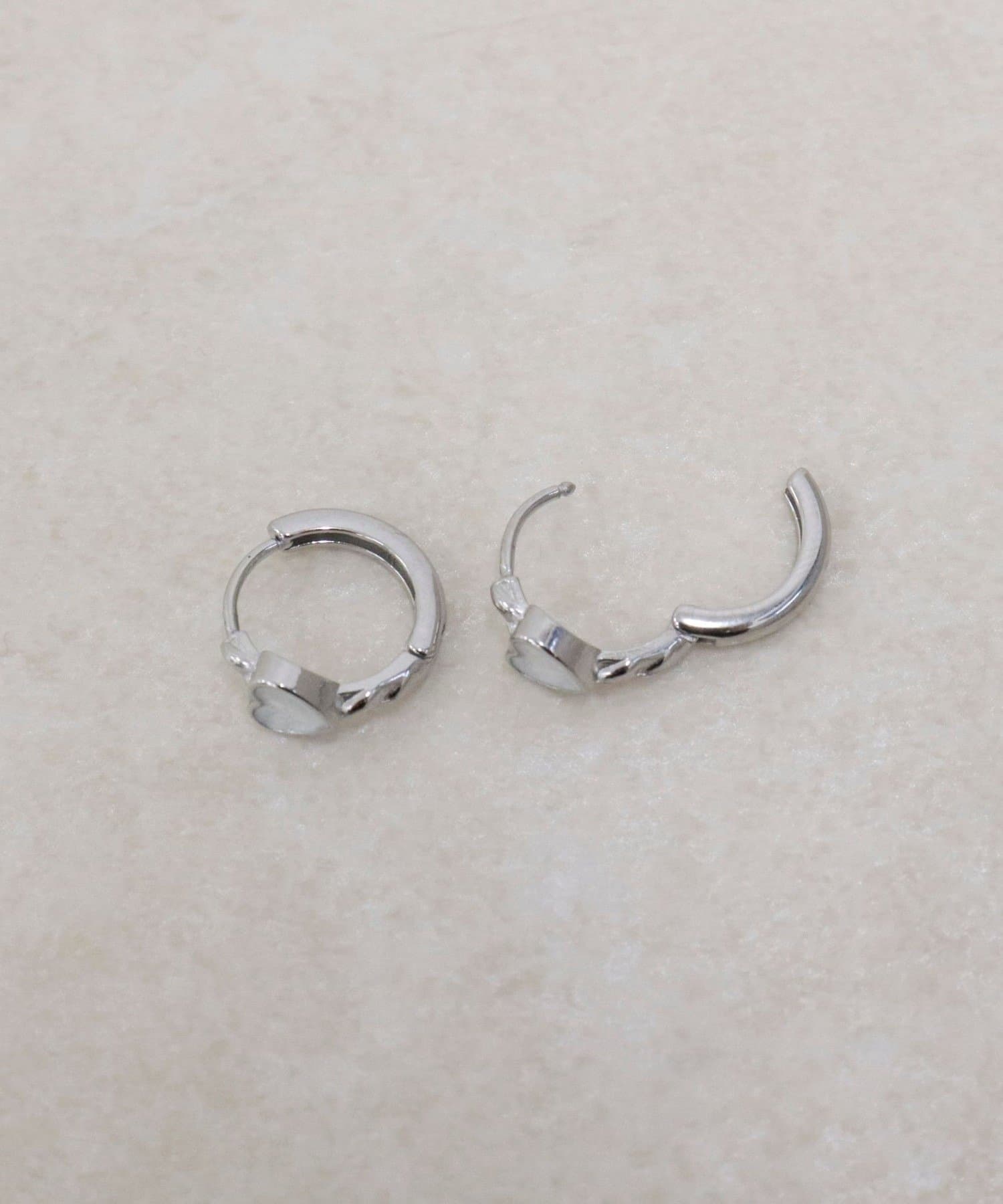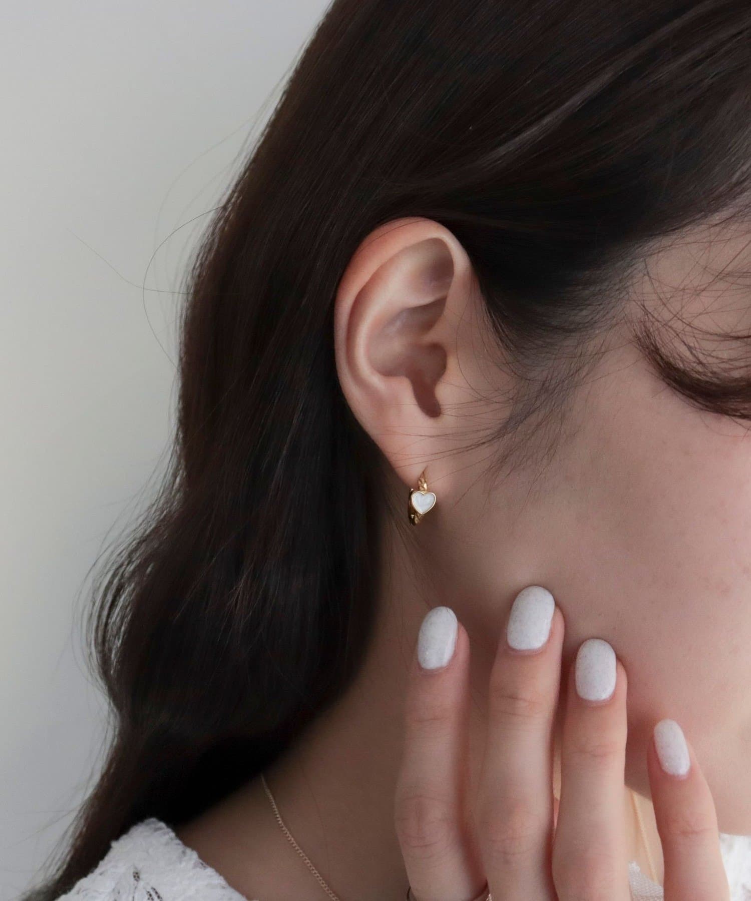 ・ミニサイズのハートモチーフが耳元に大人可愛いアクセントを添えるリングピアス