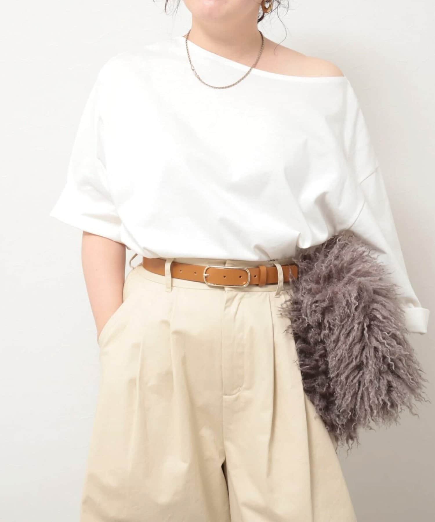 ・シンプルにパンツに合わせるだけでなく、ブラウスやワンピース、ジャケットの上など、ウェストマークにも。