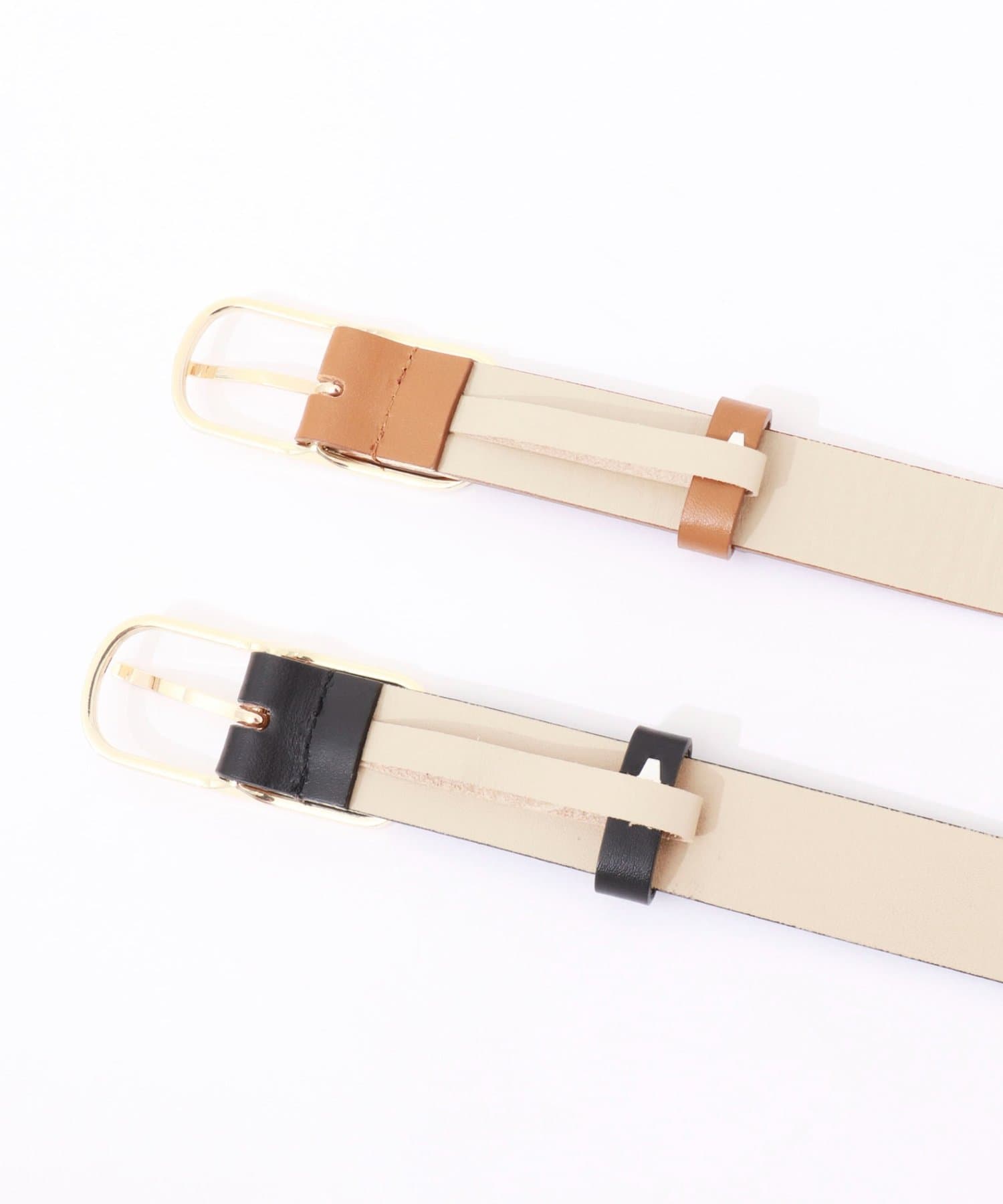 ・オーバル型のゴールドバックルがポイントのレザーベルト