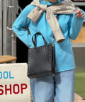 ・サイドのスタッズがポイントのスクエアトートバッグ