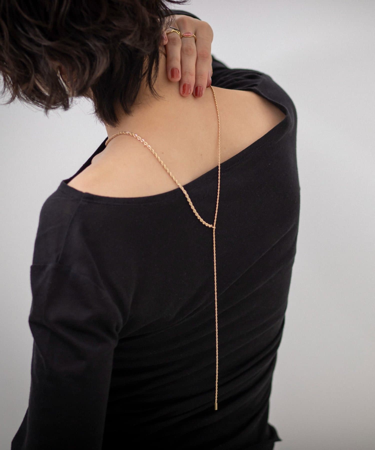 ・チョーカーのように短くつけても、Y字につけても気分によって雰囲気を変えてつけられます。