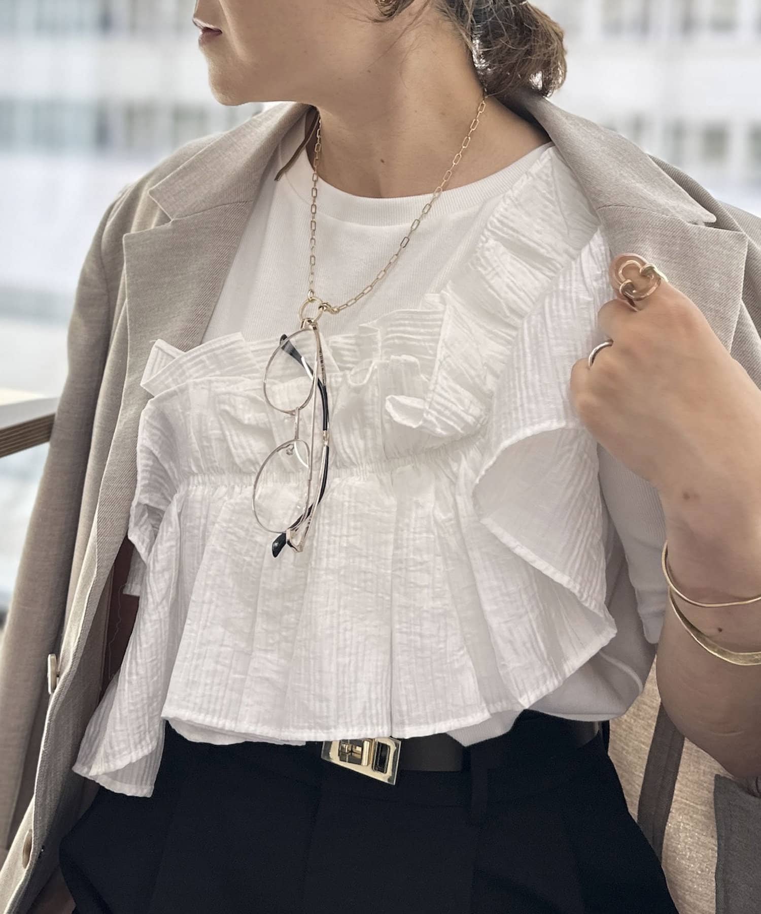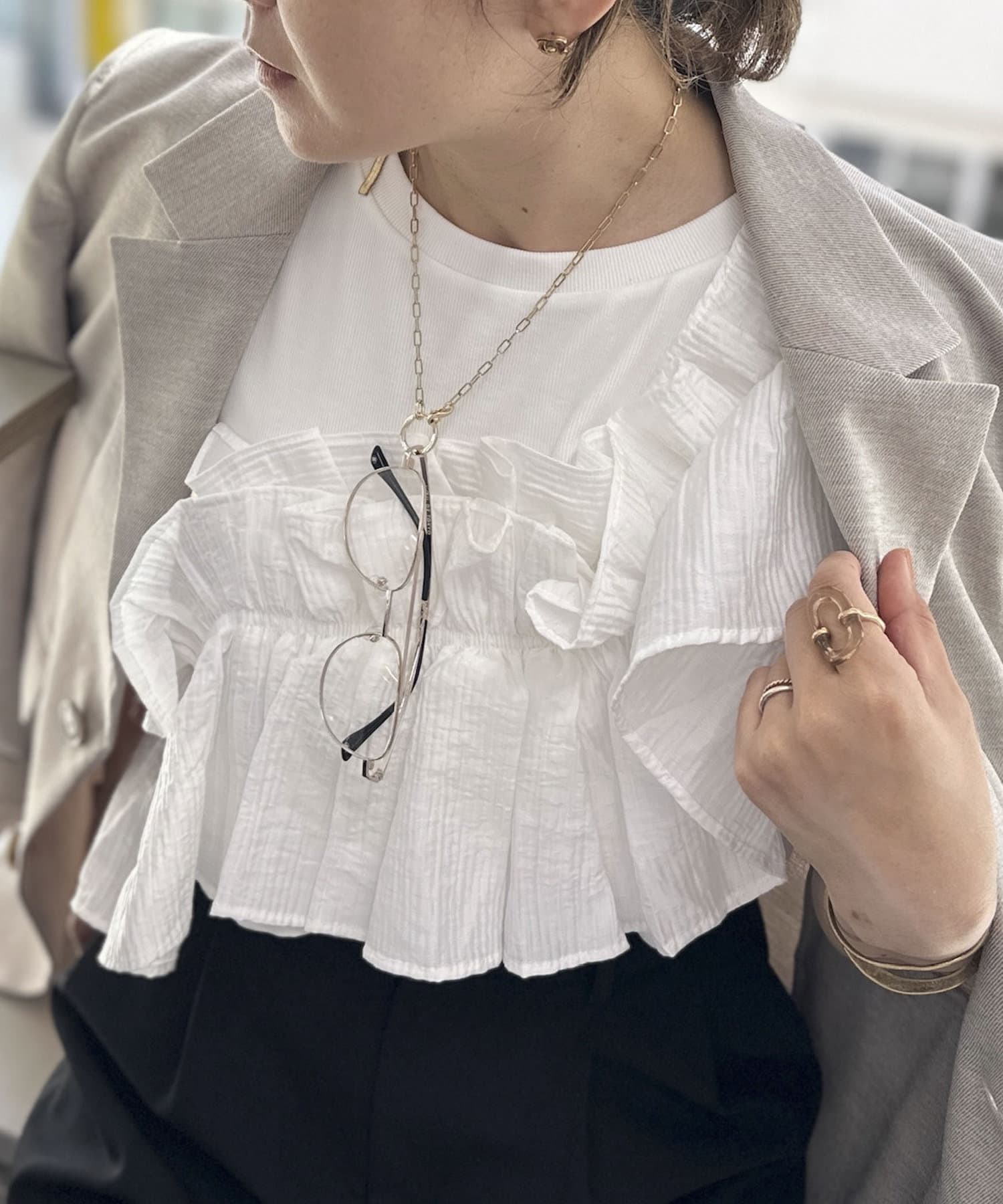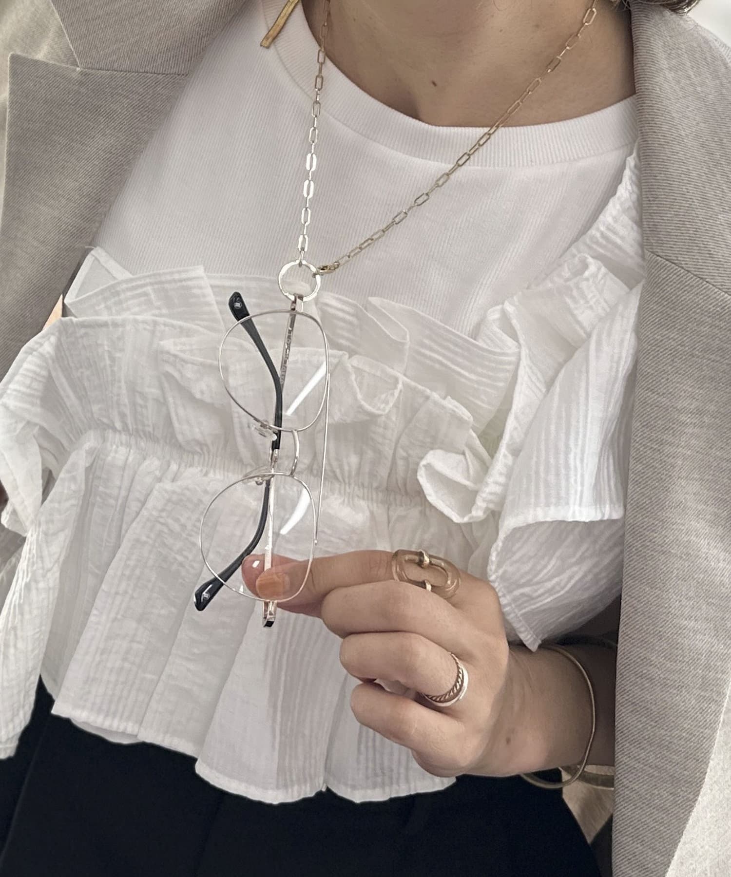 ・トップのマルカン部分にメガネやサングラスをひっかけて、ファッションの一部として取り入れたいアイテム