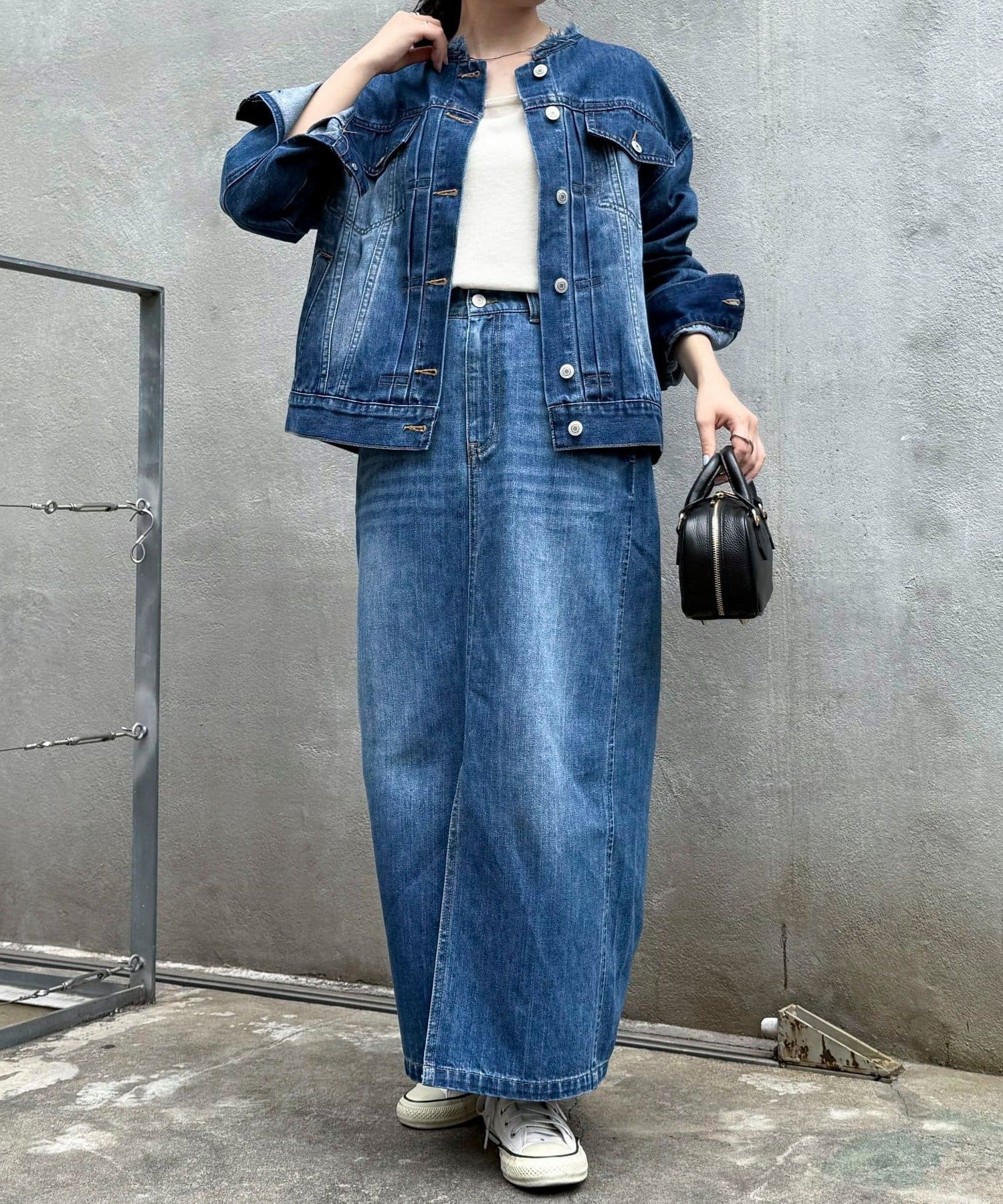 (5-0330-5-24-001ノーカラーコンパクトデニムジャケット/5-0330-5-29-001カラーストレートデニムパンツ)