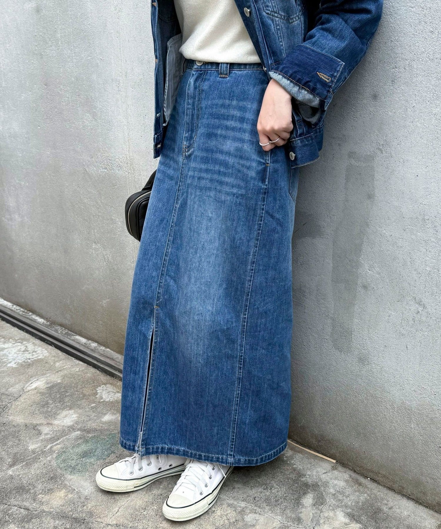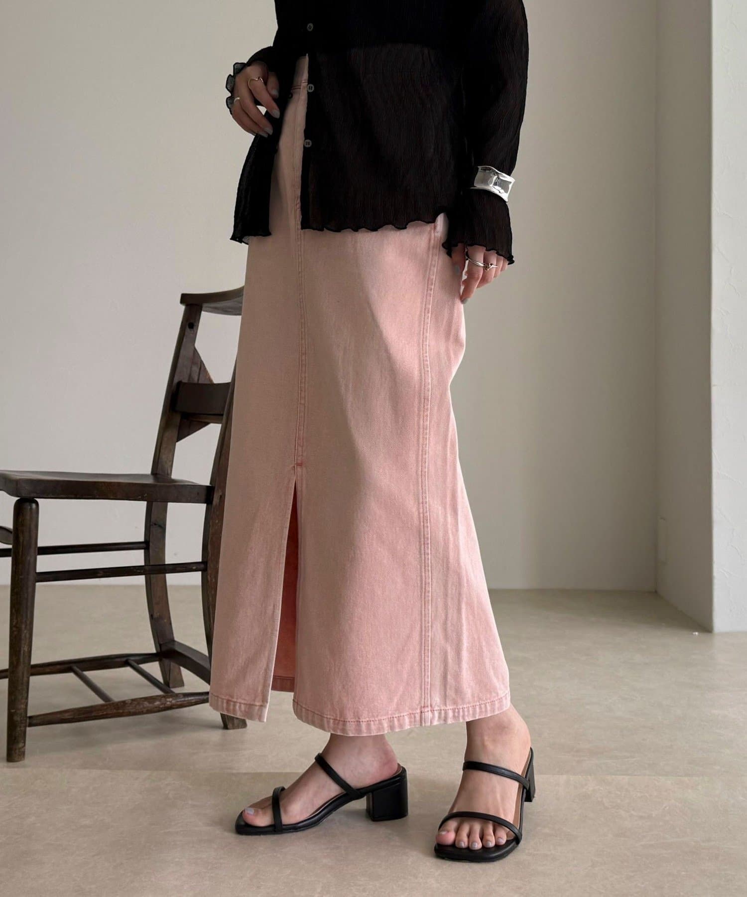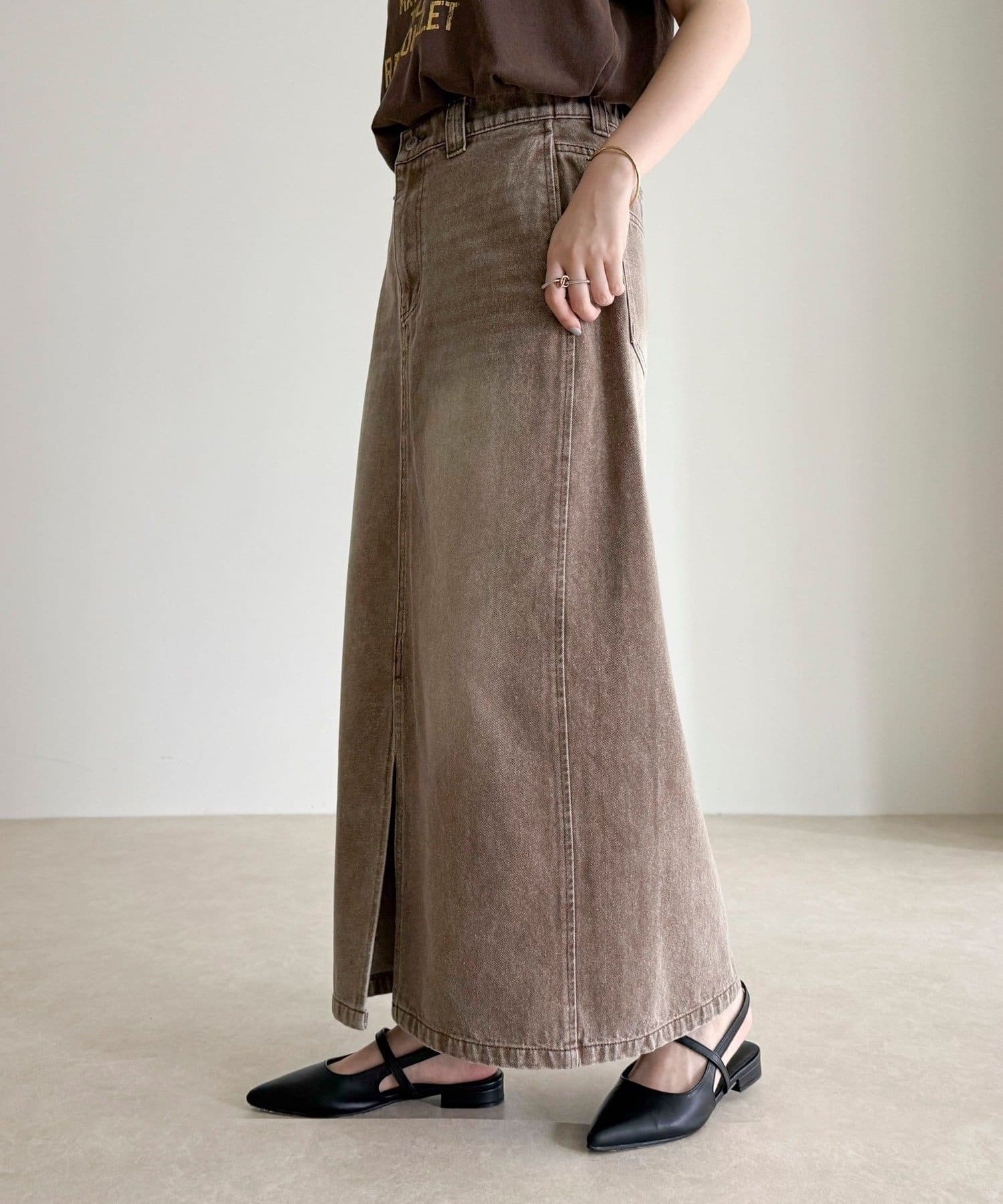 ・フロントスリット入りで足さばきもよく、抜け感のある着こなしに