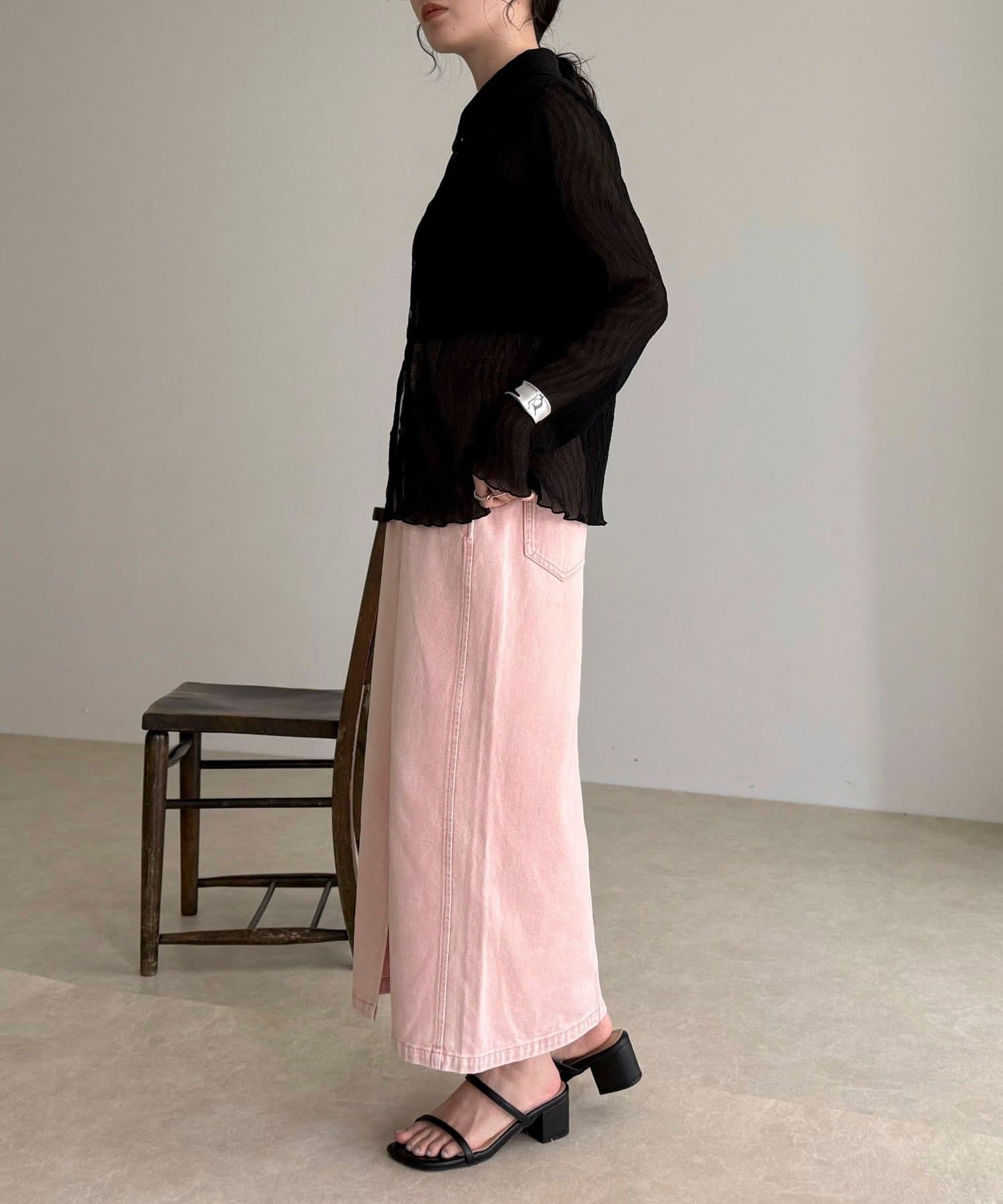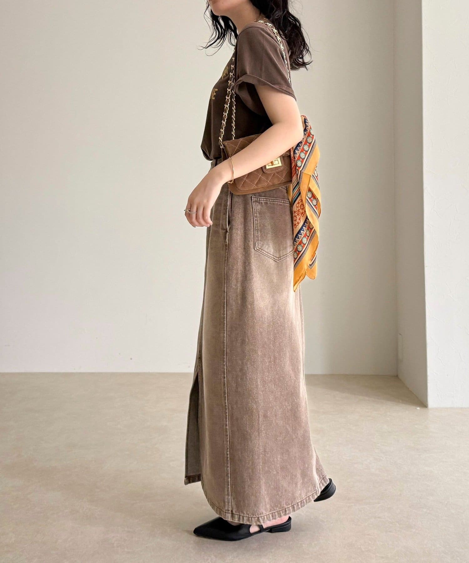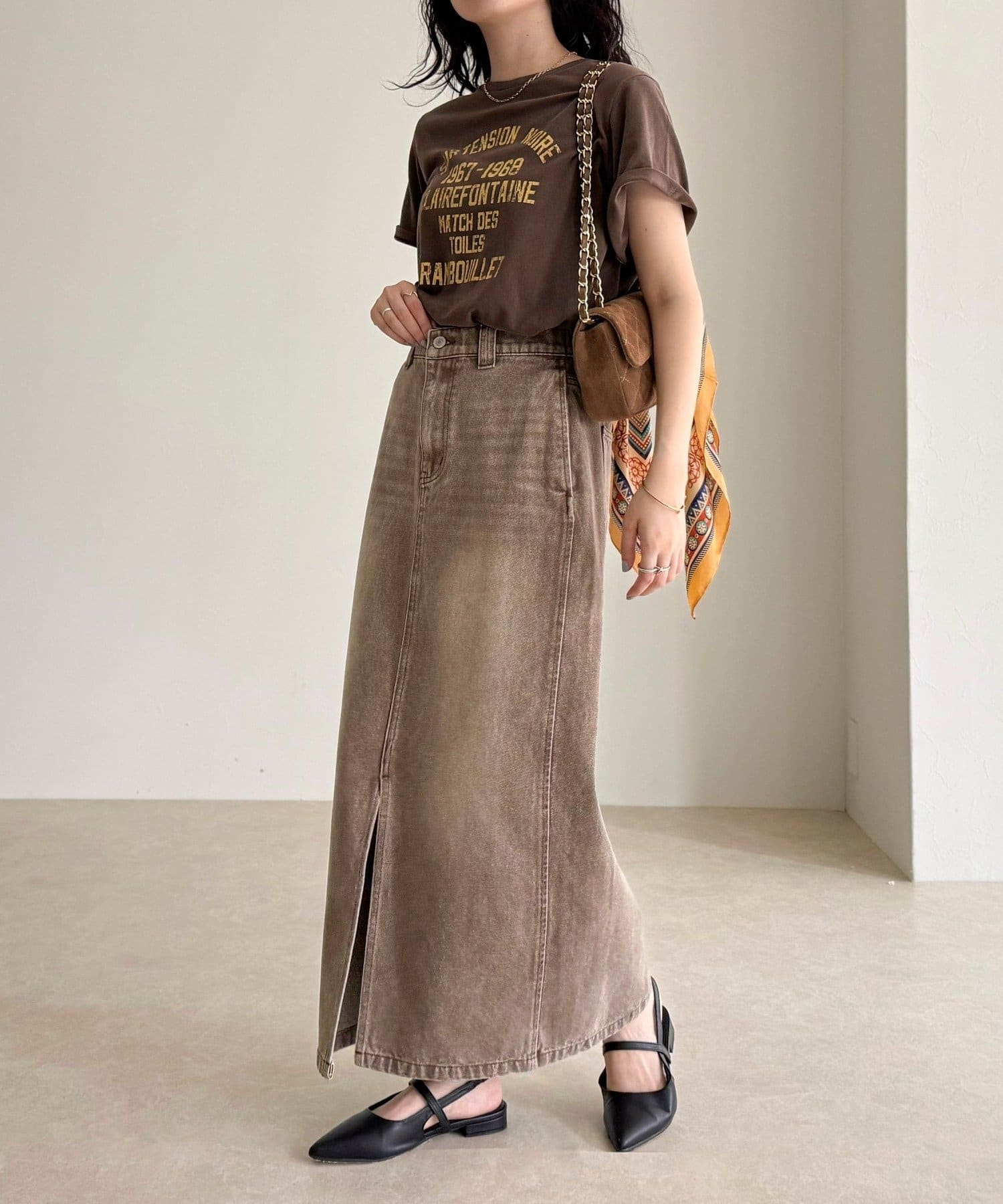 ・フロントスリット入りで足さばきもよく、抜け感のある着こなしに