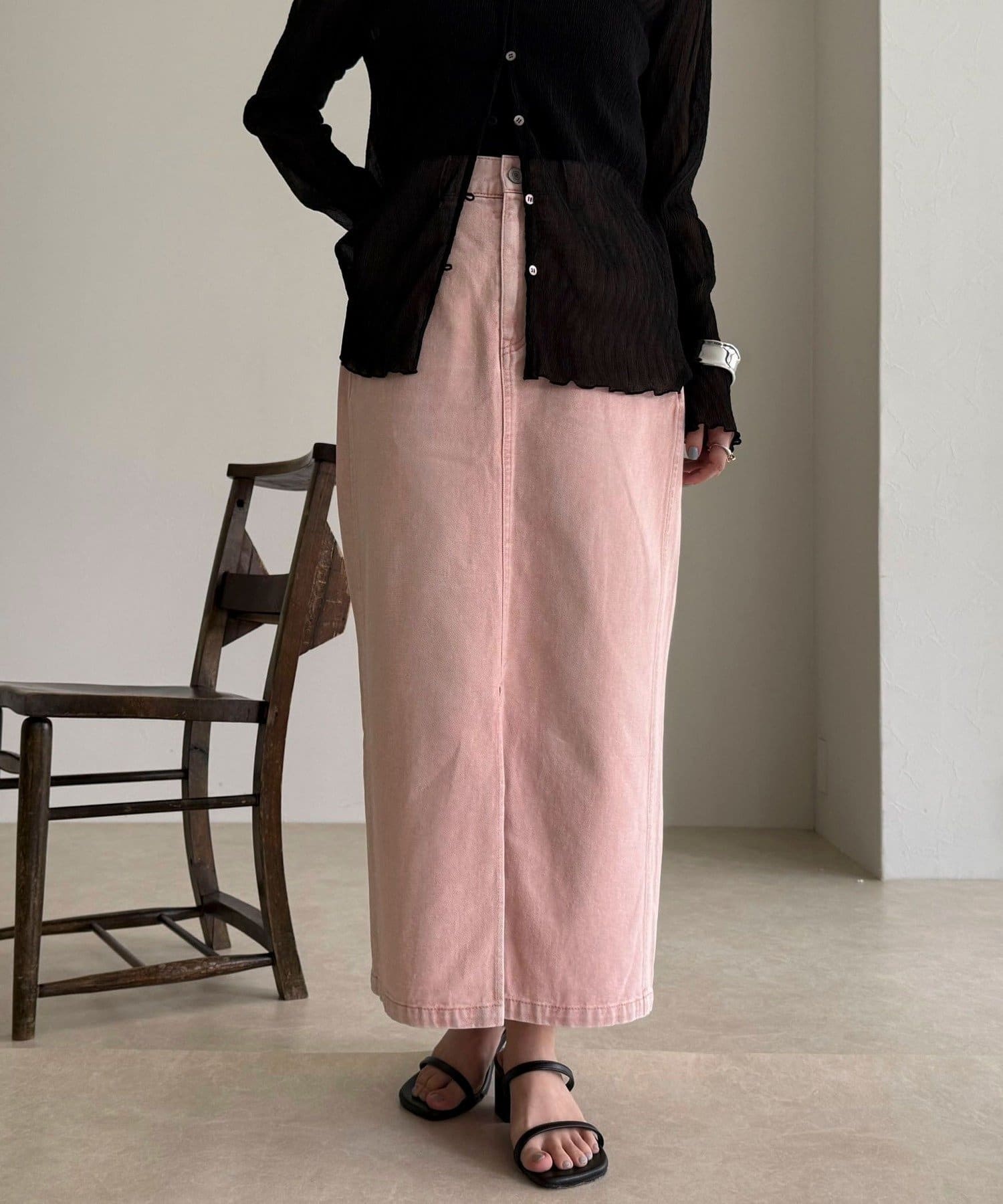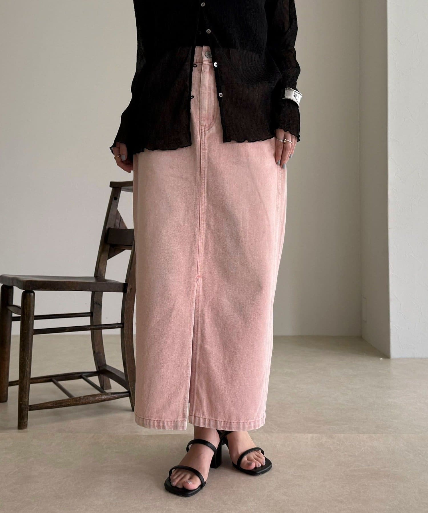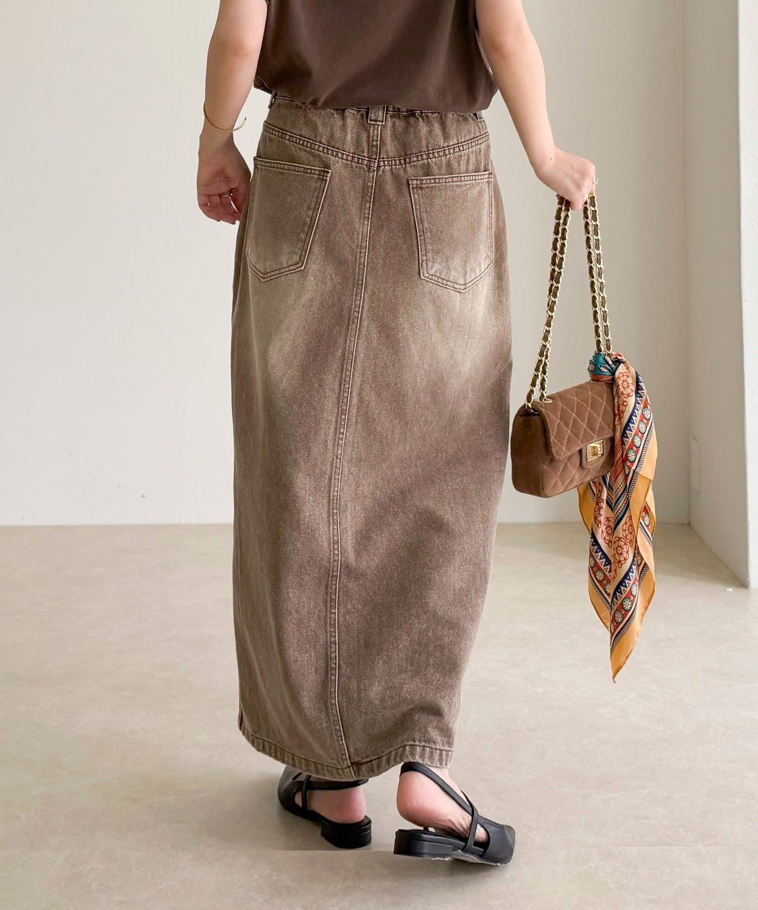 ・女性らしさを引き立てる、すっきり細見えタイトシルエットのデニムスカート