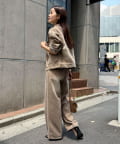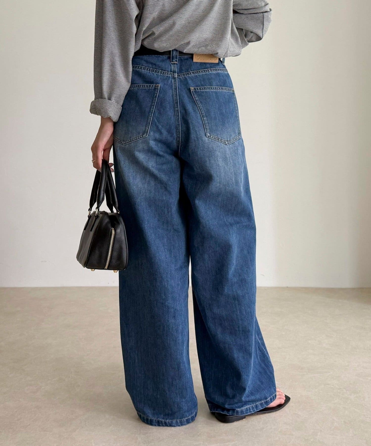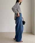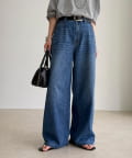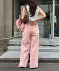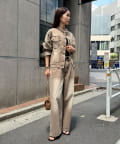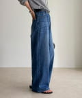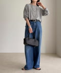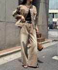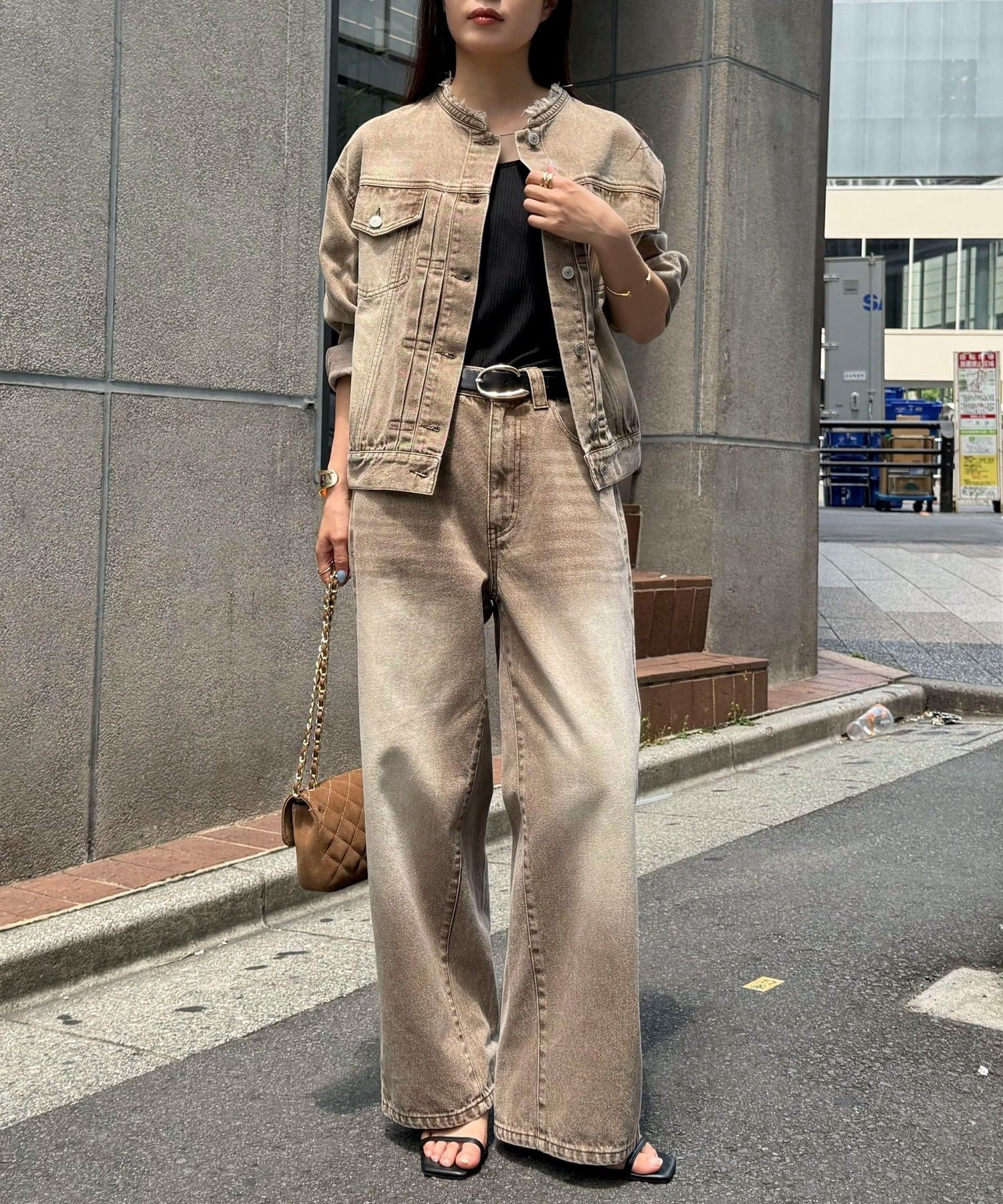 ・同素材の【ノーカラーコンパクトデニムジャケット】と合わせれば、旬のセットアップスタイルが完成!