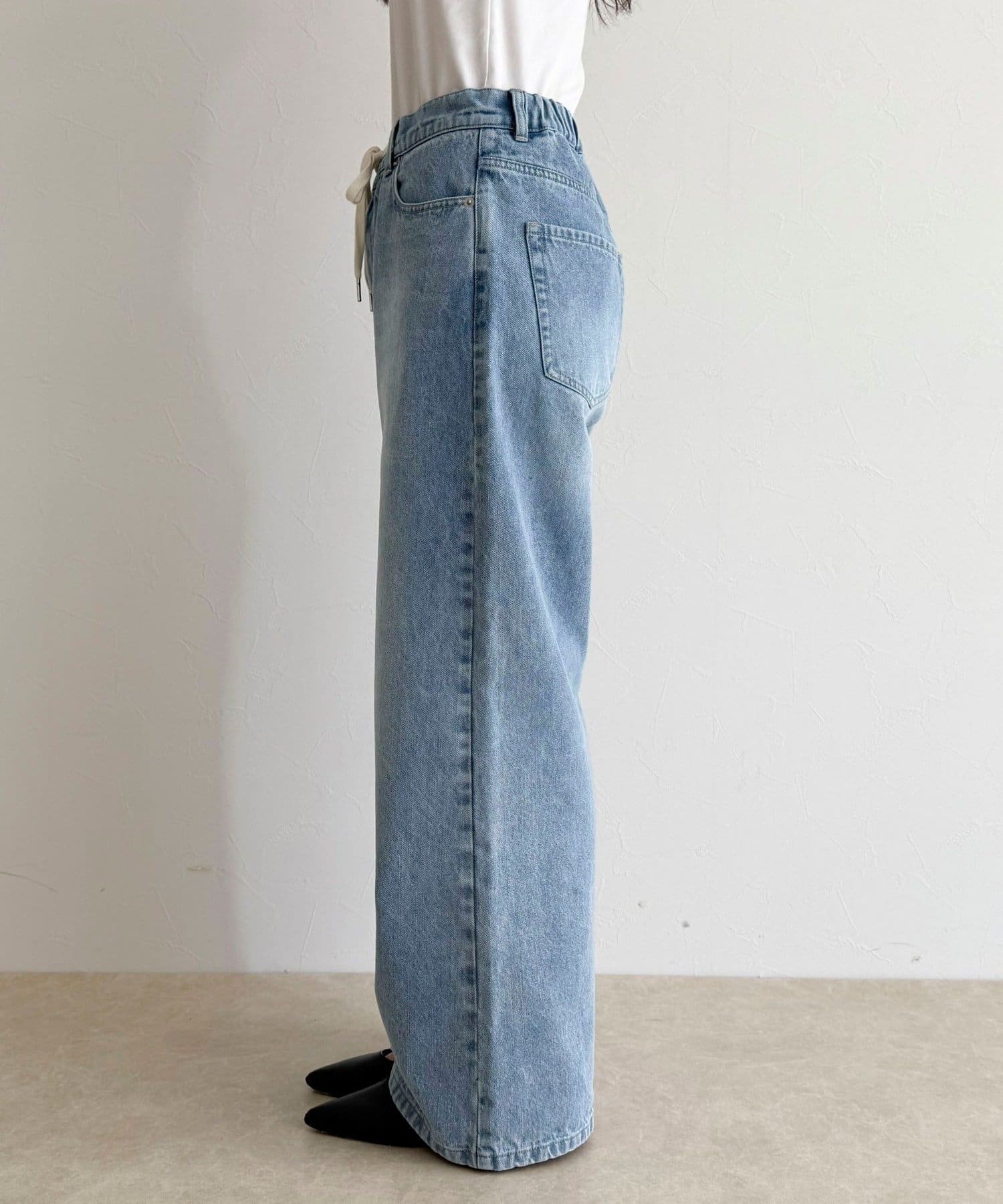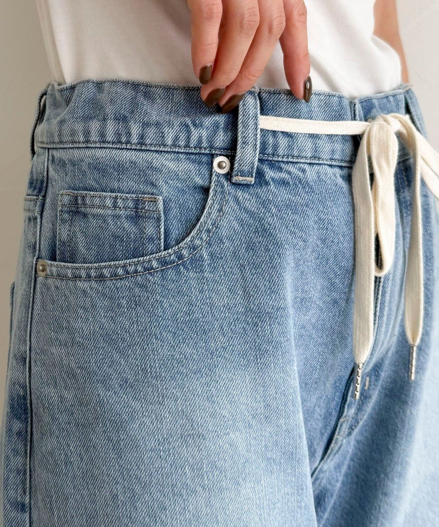 ・ドロスト仕様でウエストを調節でき、ベルトいらずの快適な履き心地