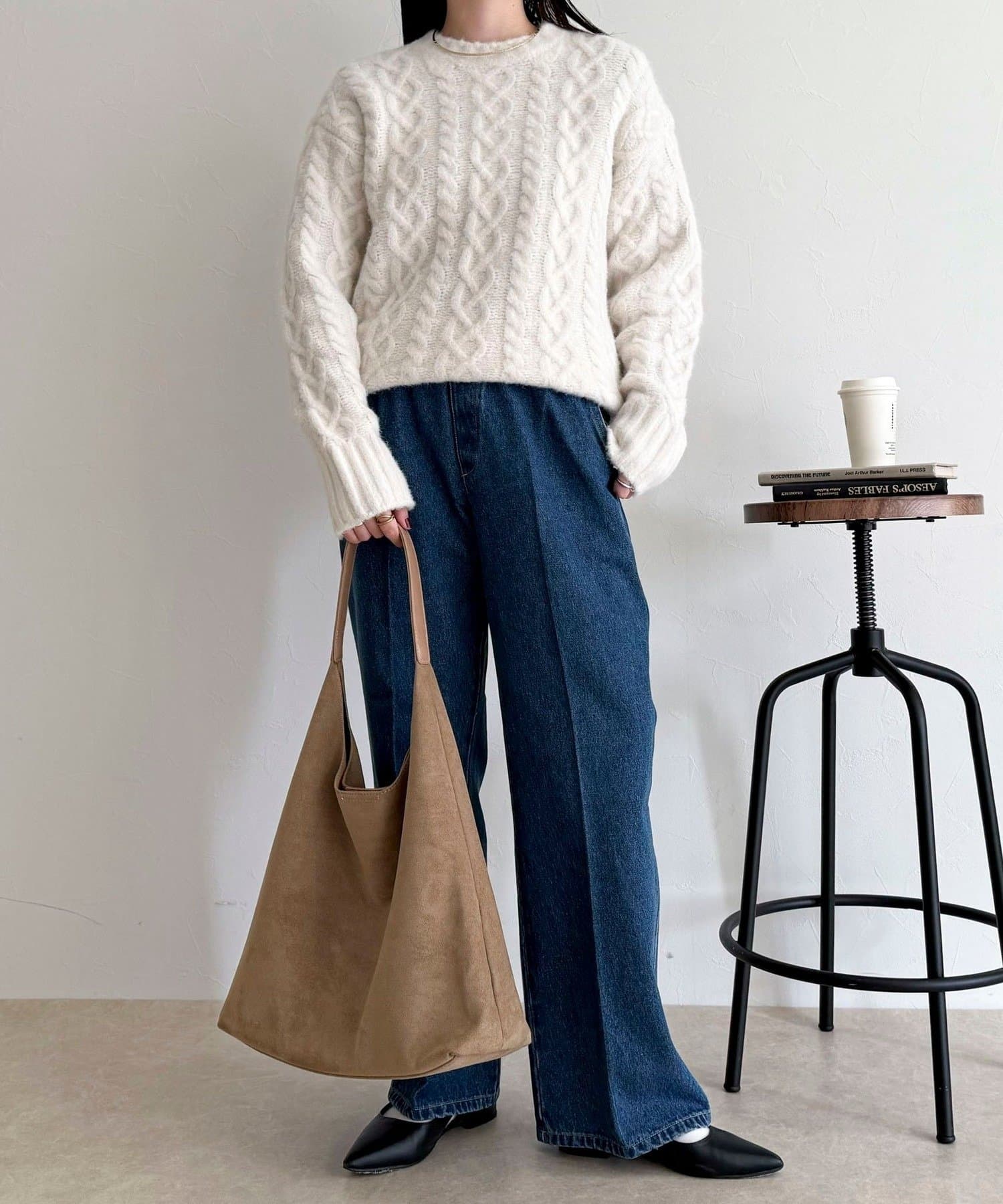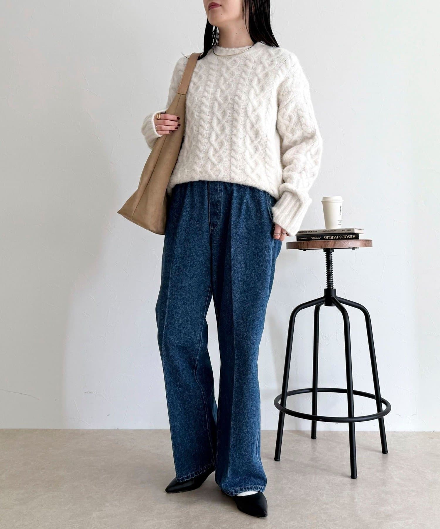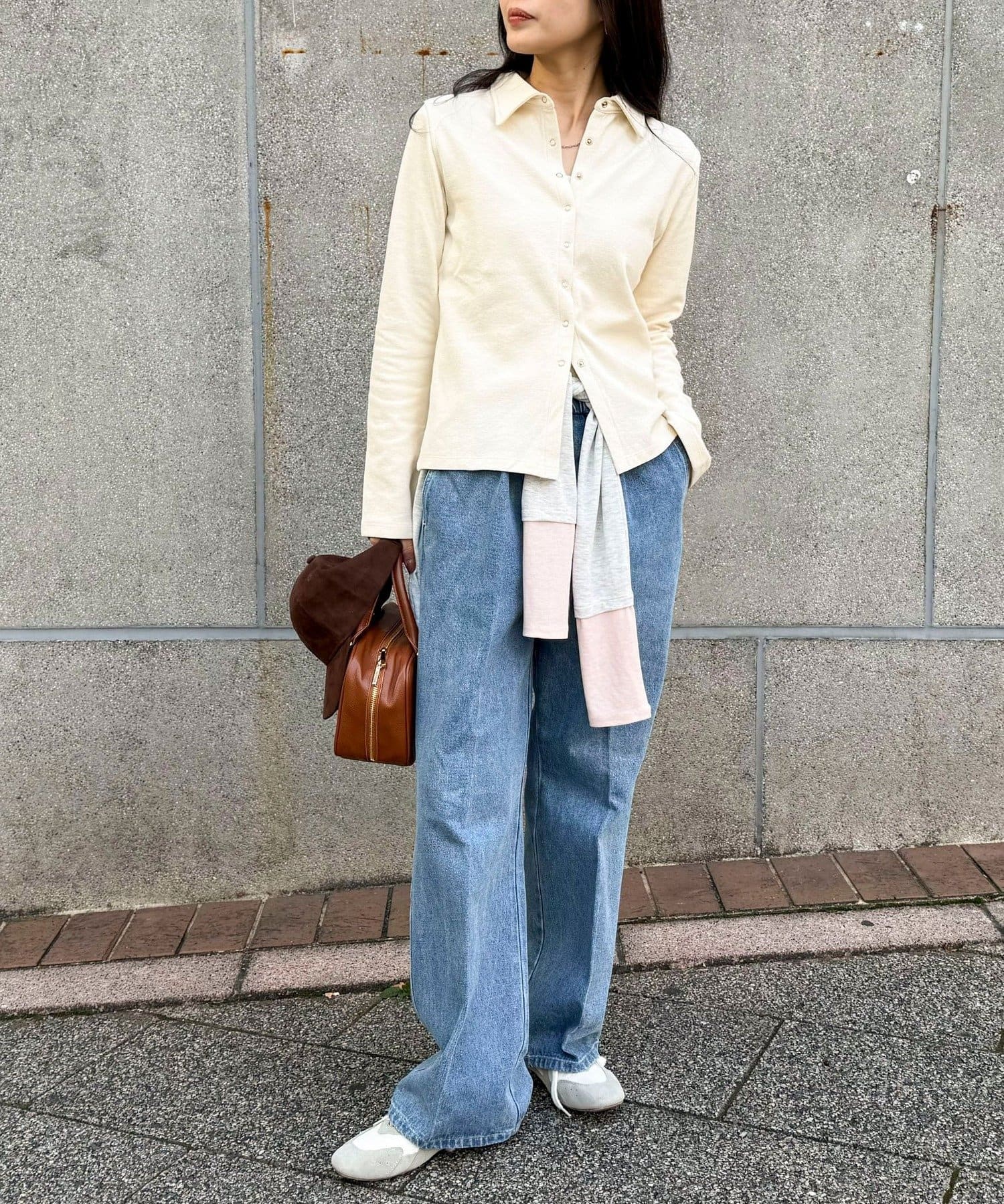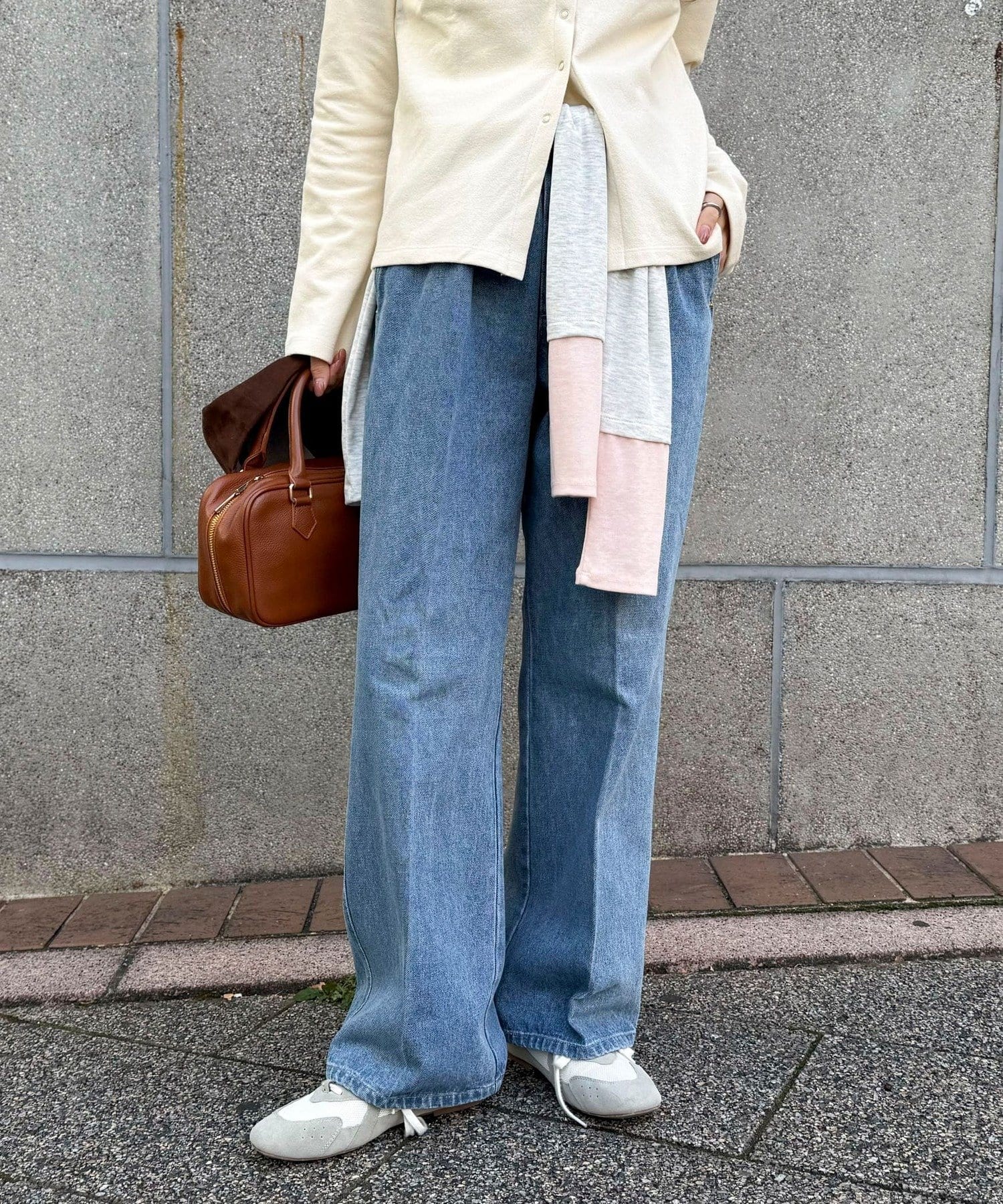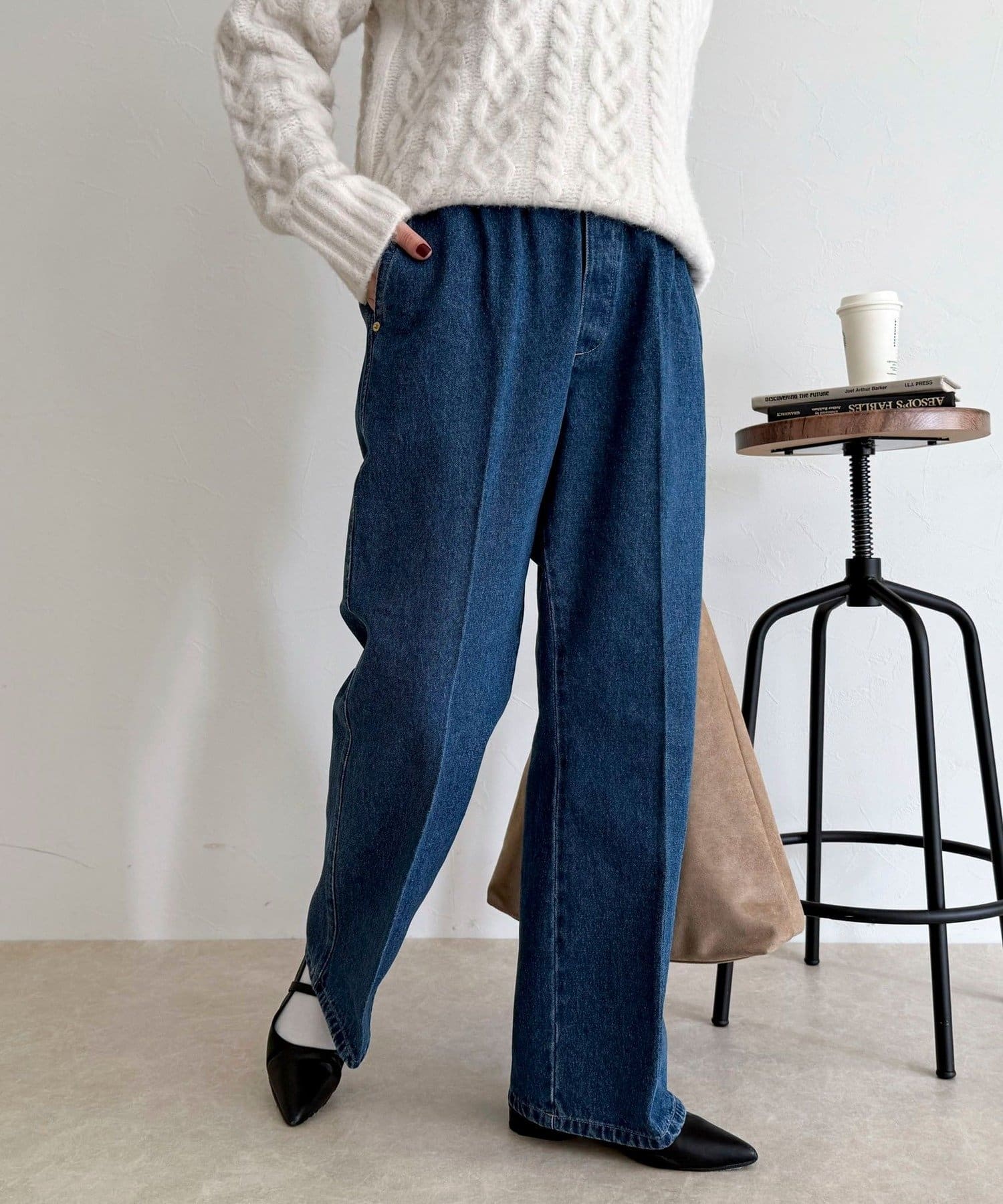 レイヤードにもオススメなフレアーデニムイージーパンツ