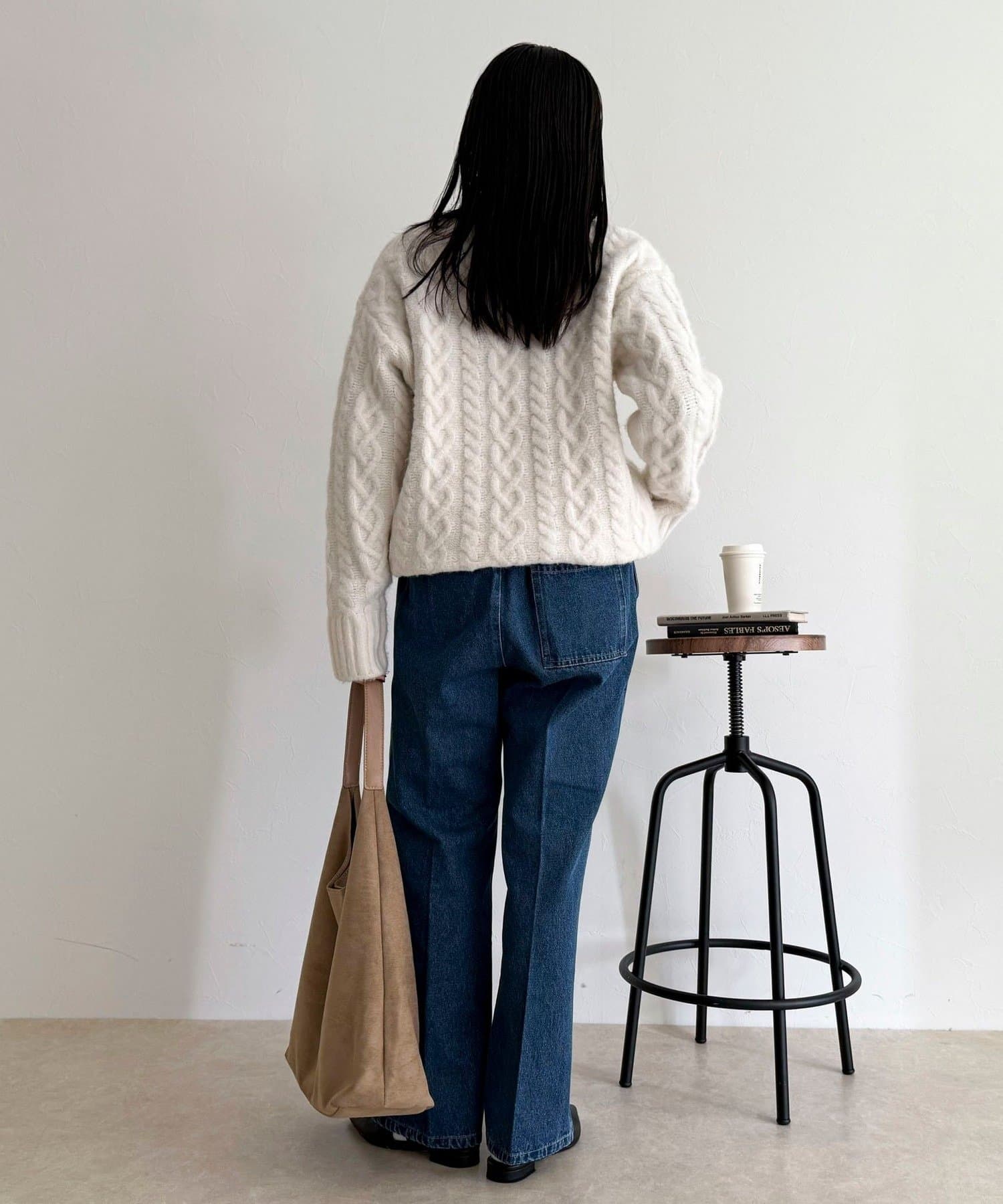 ・チュニックやニットワンピと合わせて履けるイージーなフレアーデニム