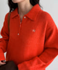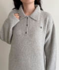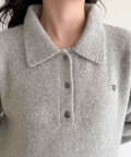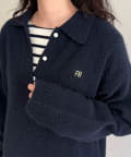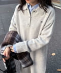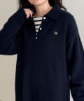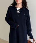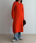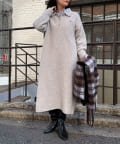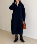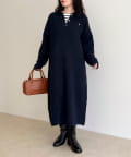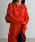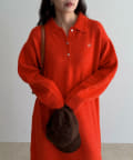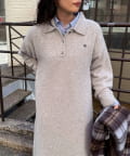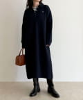 着心地柔らかなFR刺繍入り衿付きニットワンピ