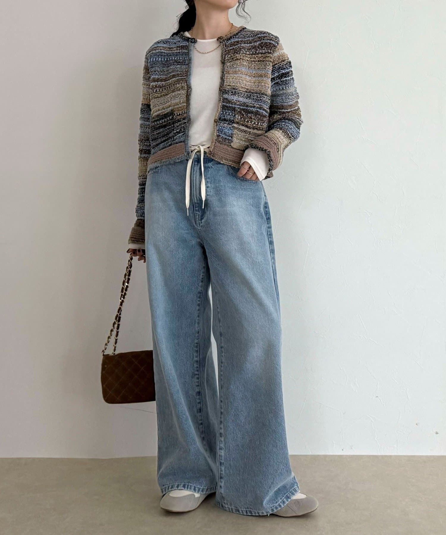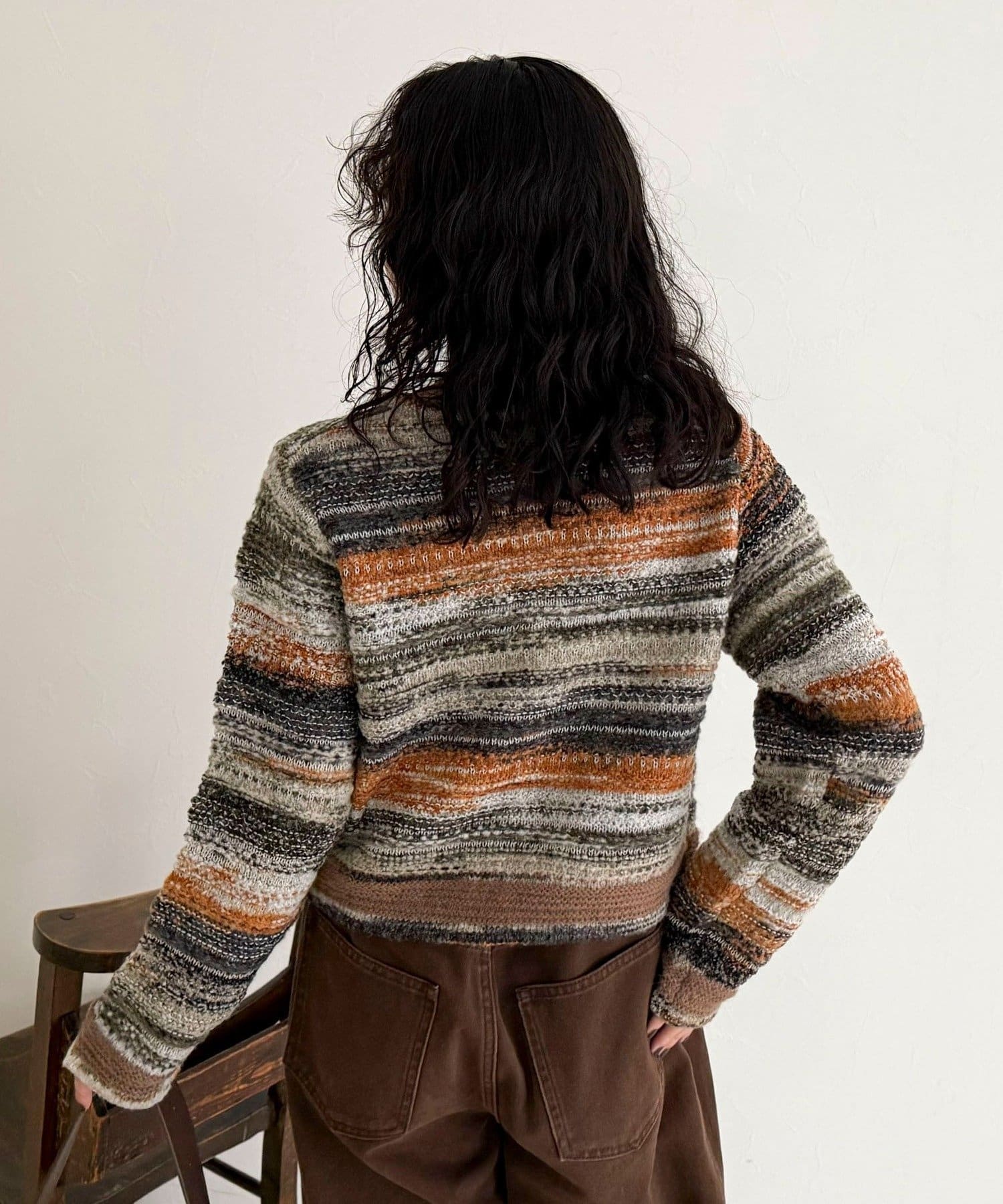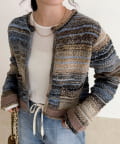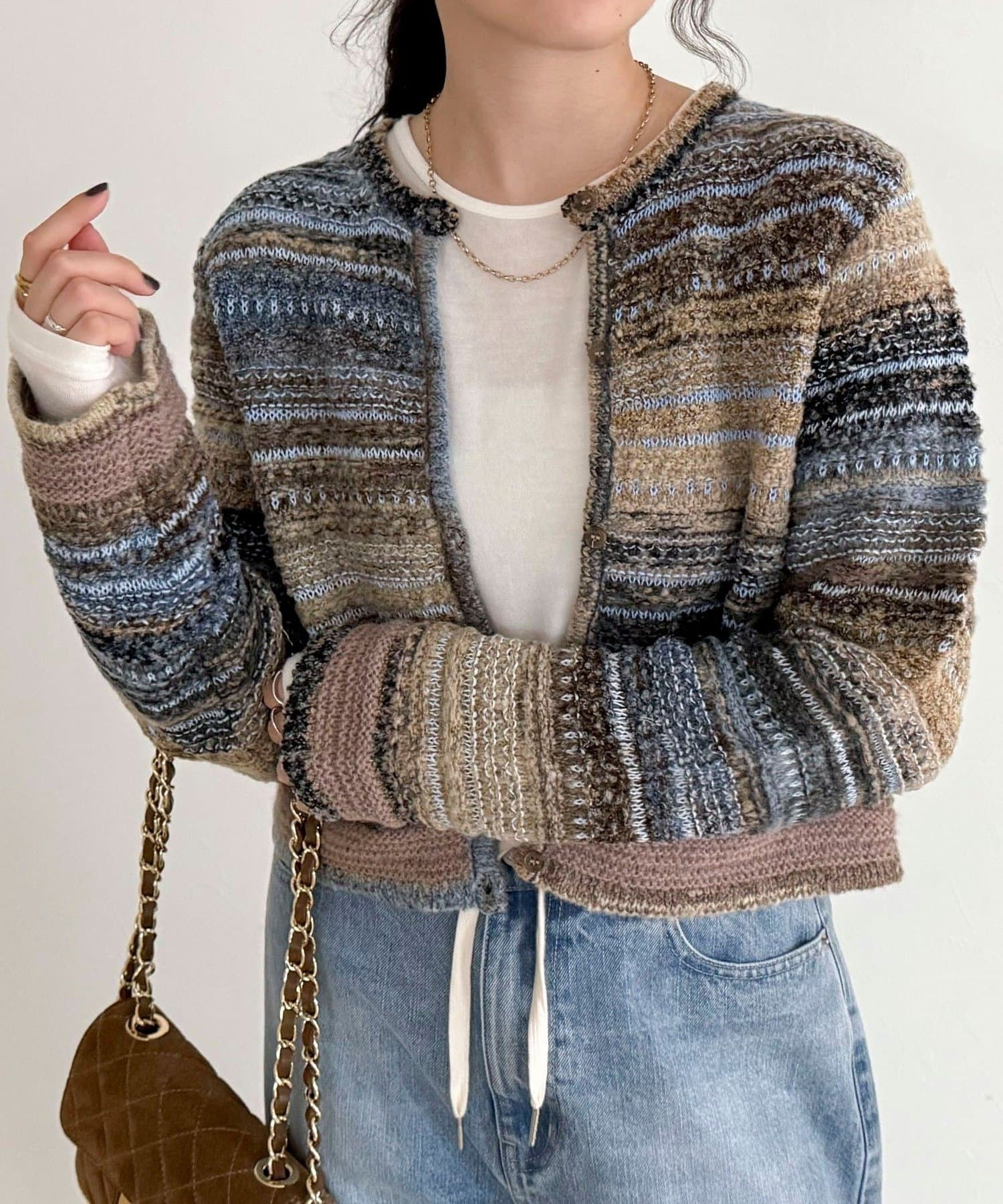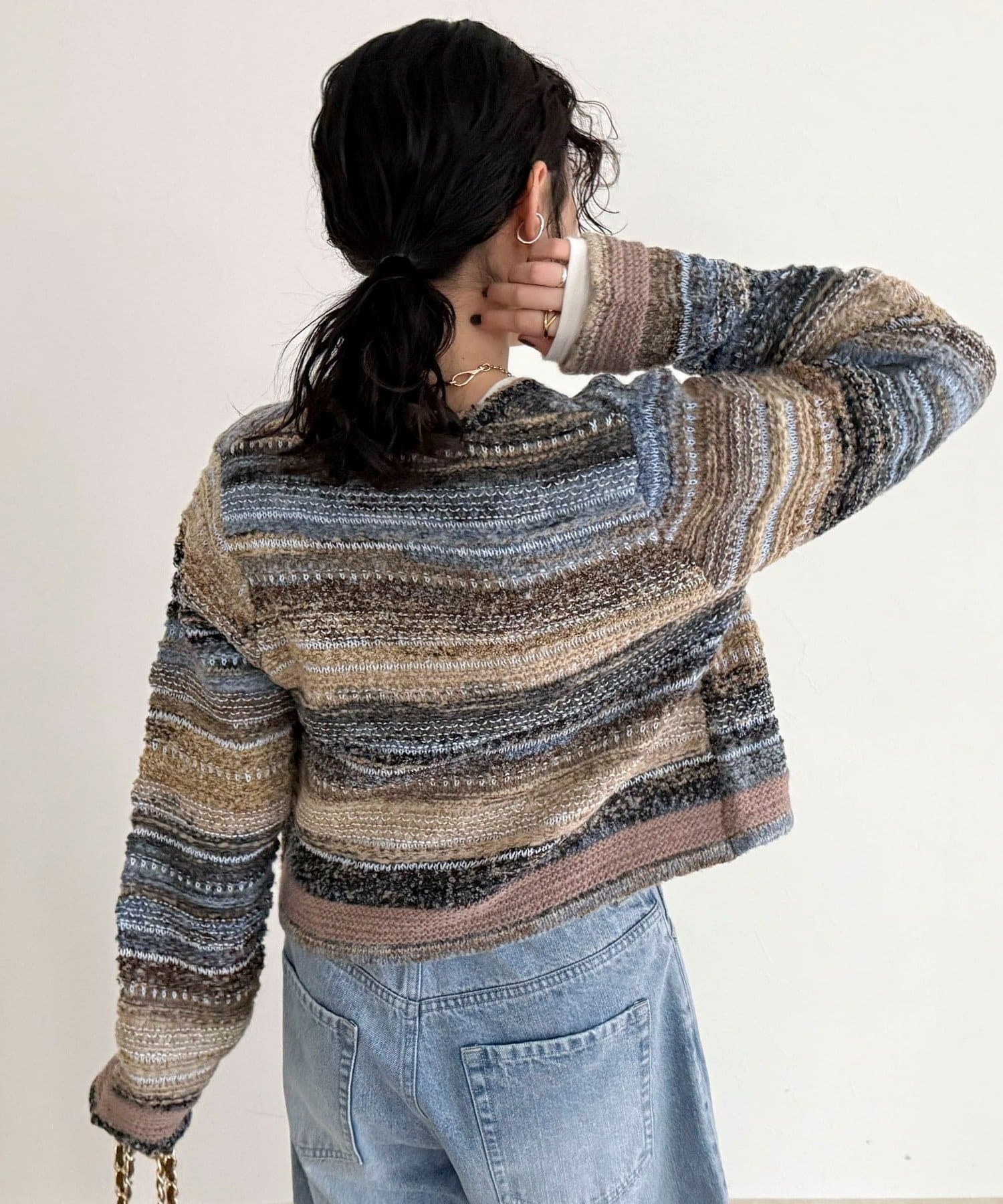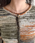 ・秋冬らしいツイード素材で仕立てた、華やかなボーダーカーディガン