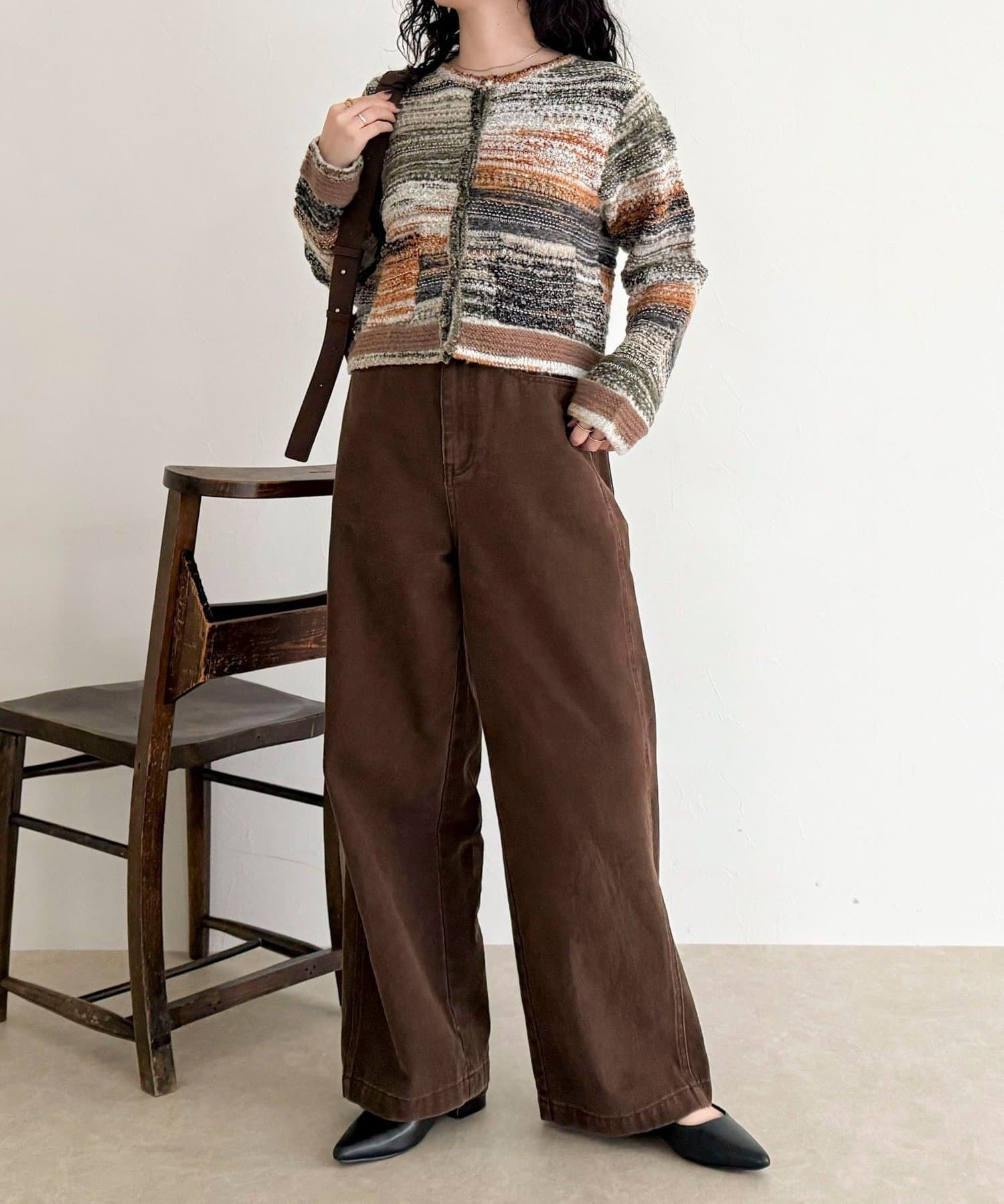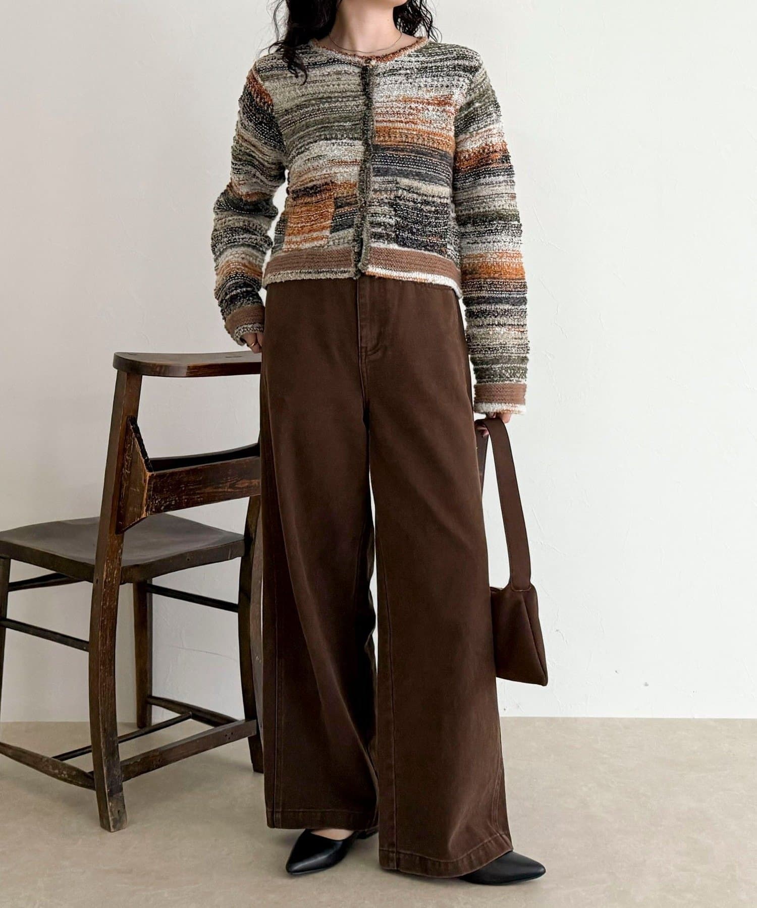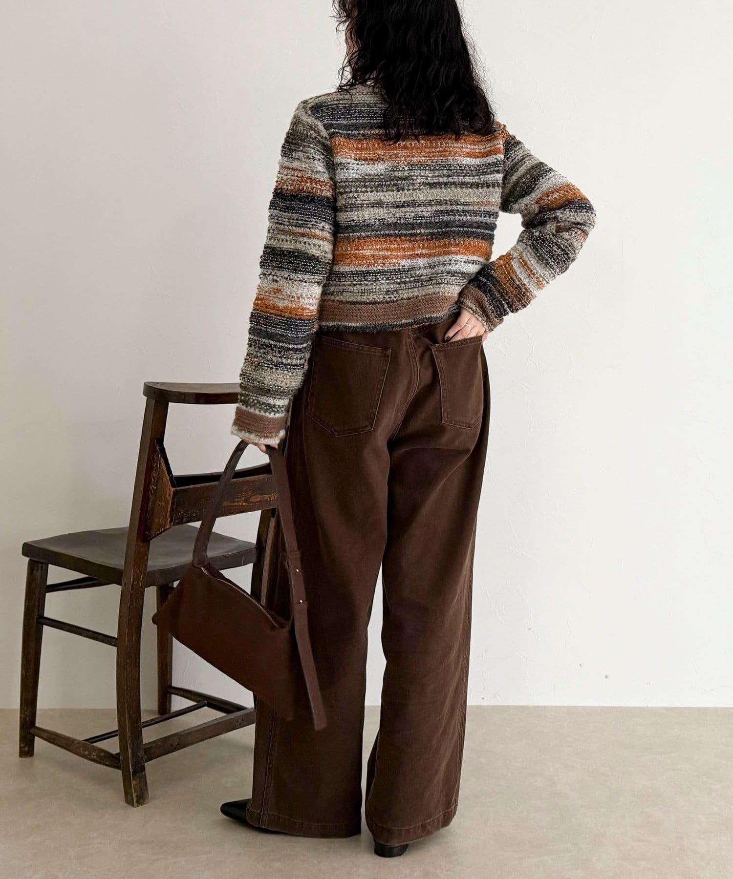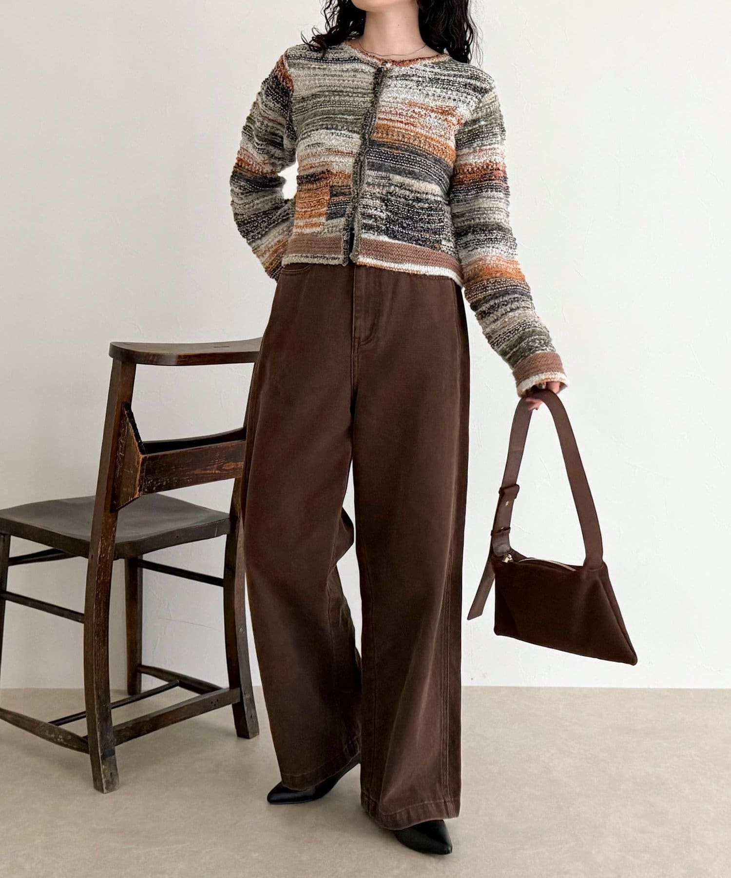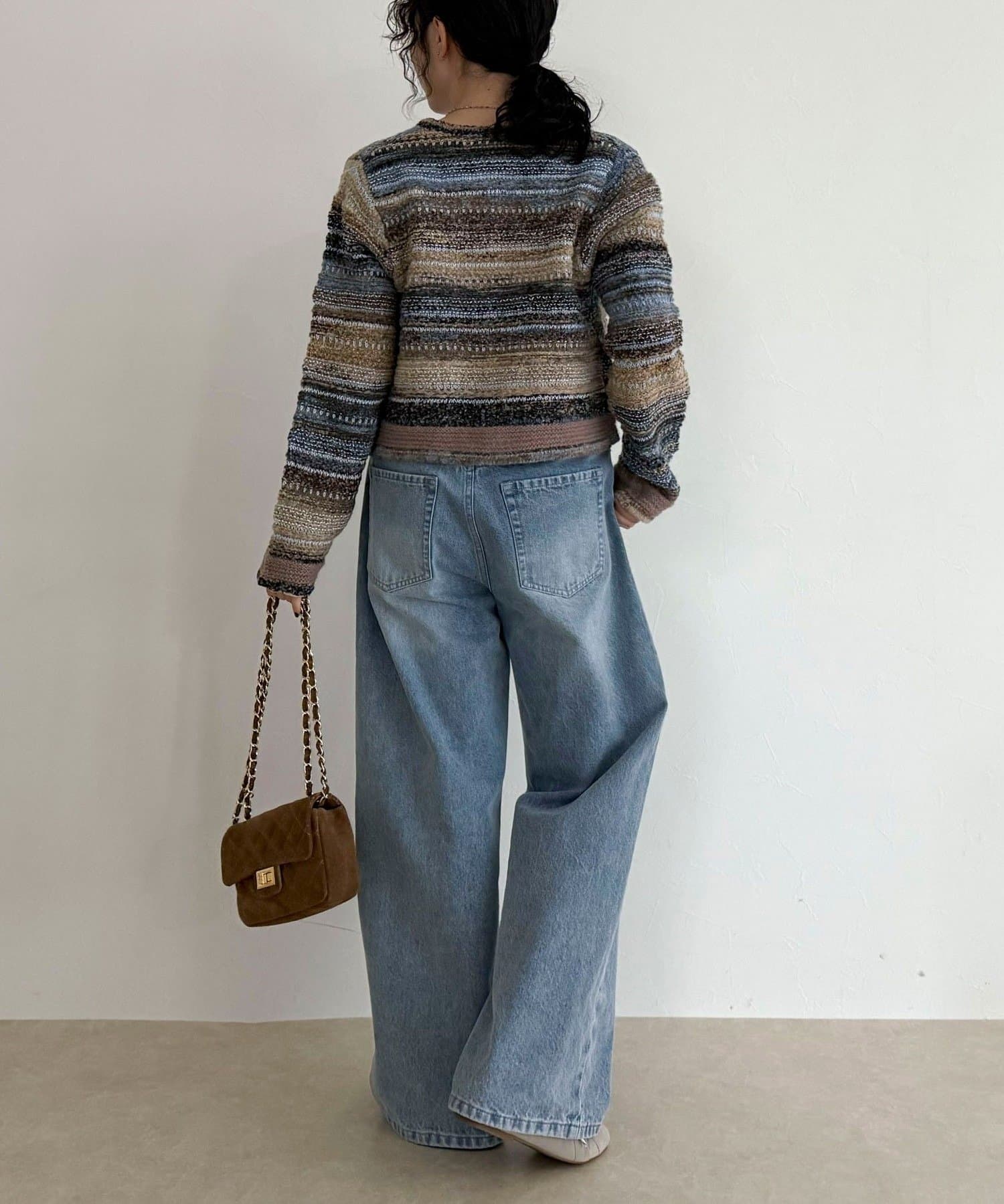 ・ツイードの素材感とボーダー柄で、大人の女性らしい秋冬スタイルにぴったりな一枚です