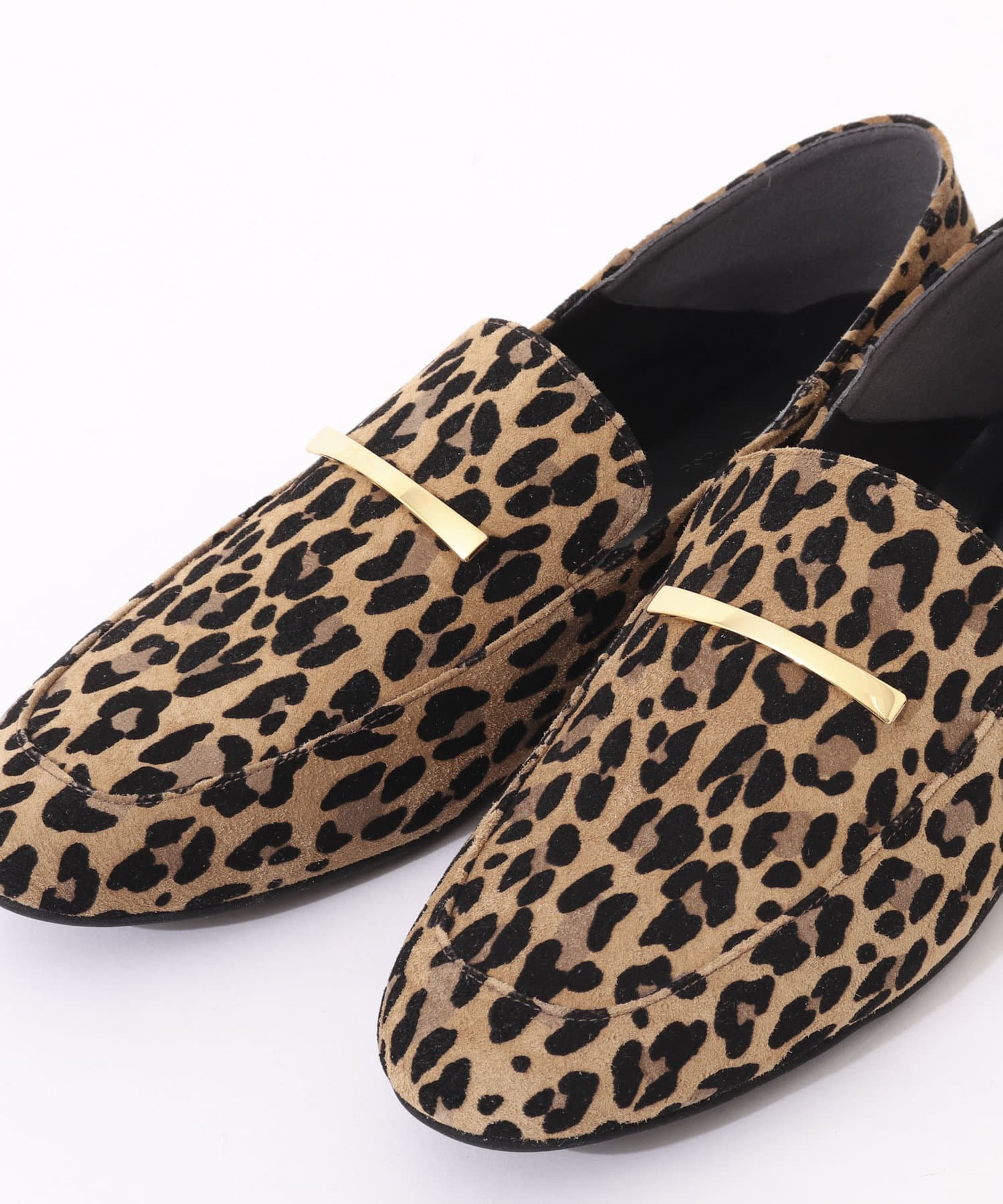 ・薄めのソールでレディライクな印象で履けるレオパードローファー。