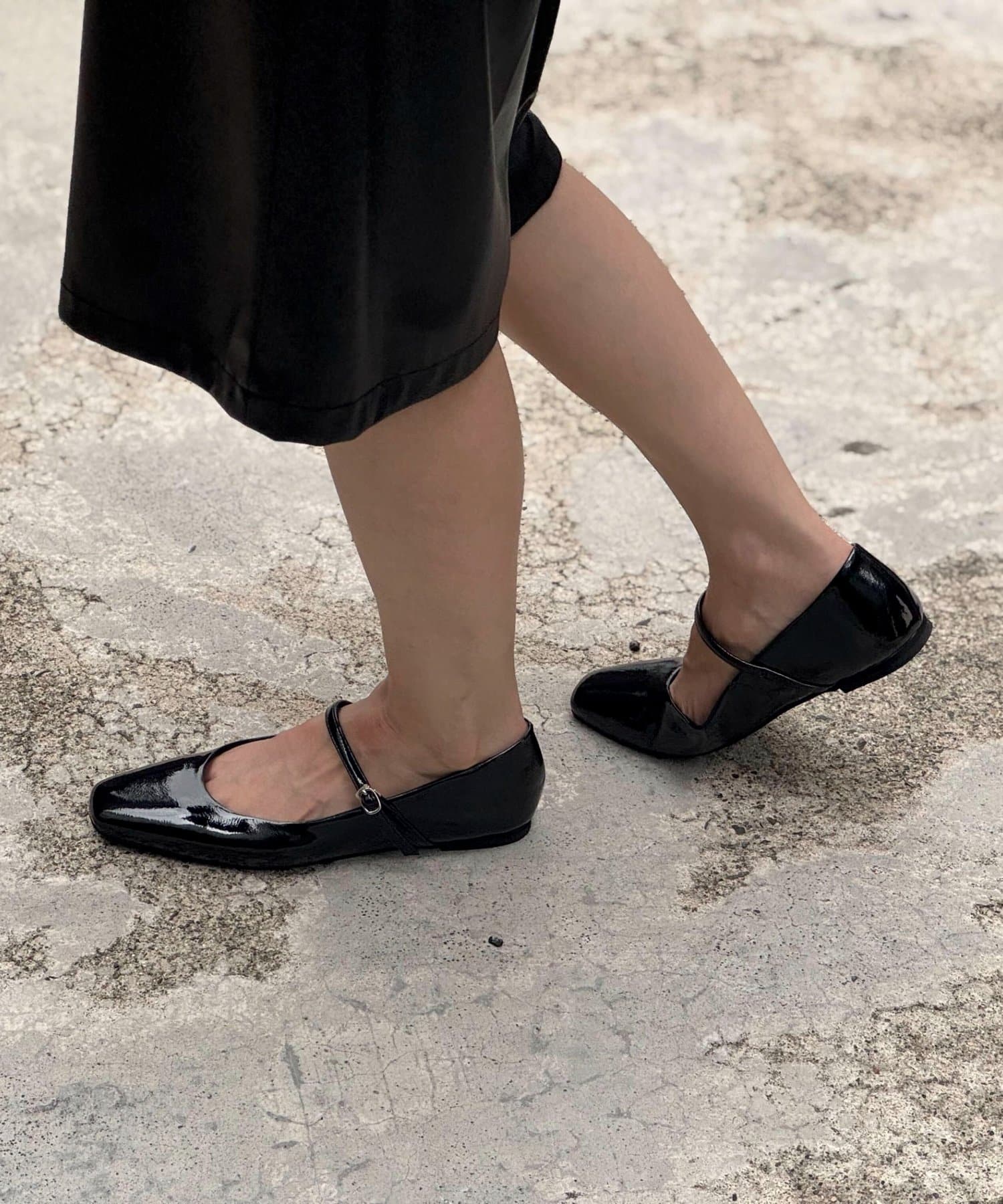 ・華奢なストラップとスクエアトゥのフォルムが、全体的にすっきりとした印象に