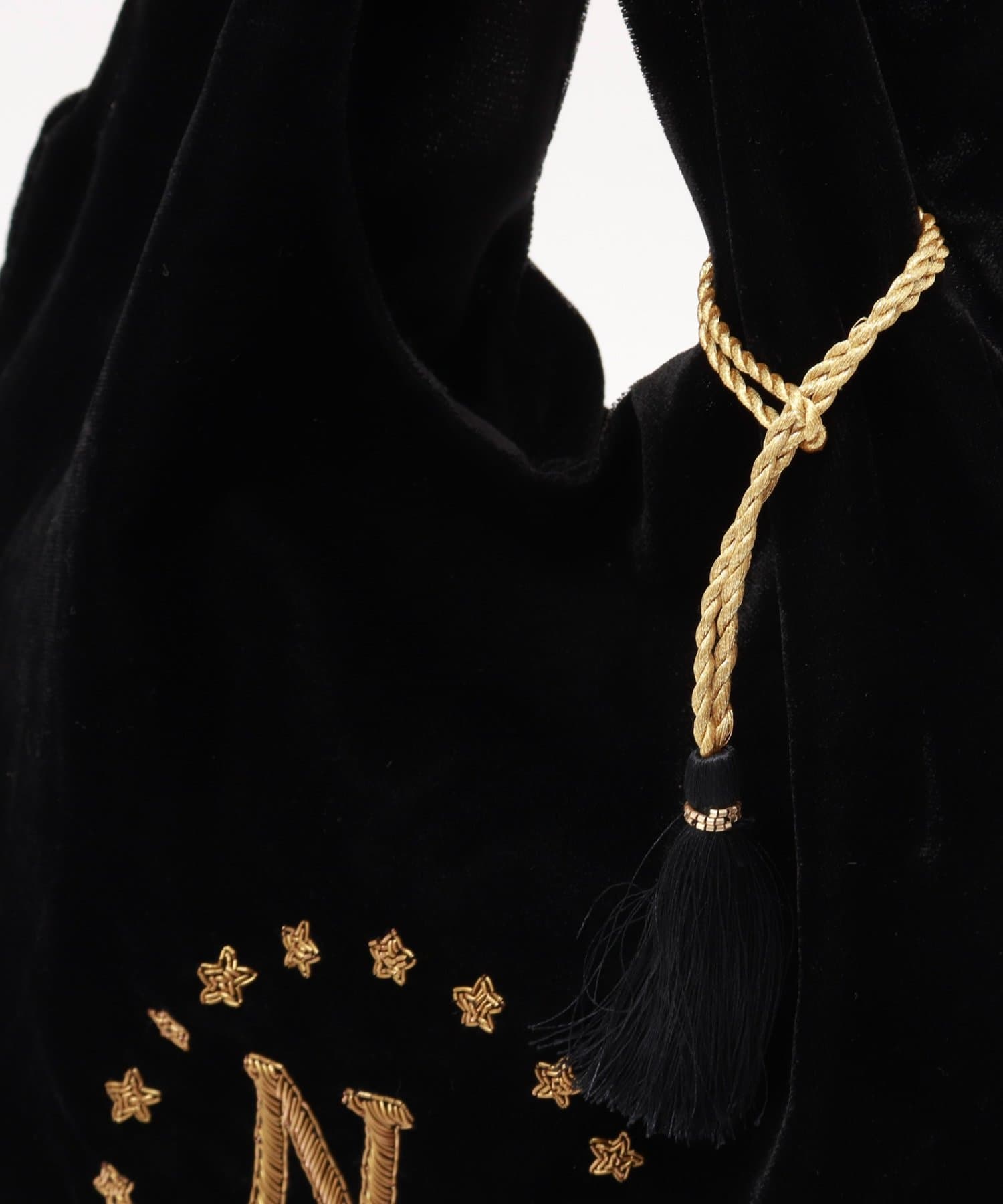 ・ベロア生地ににゴールドの刺繍・ボリューム感のあるタッセルがラグジュアリーな雰囲気に。