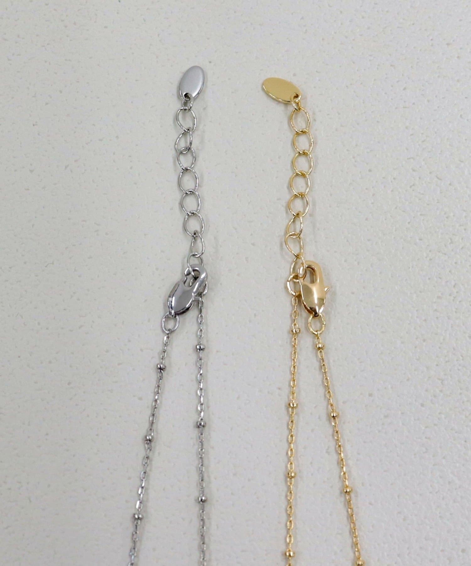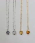・透明感のあるフェイクストーンと華奢なチェーンとの組み合わせで胸元を明るく見せてくれます
