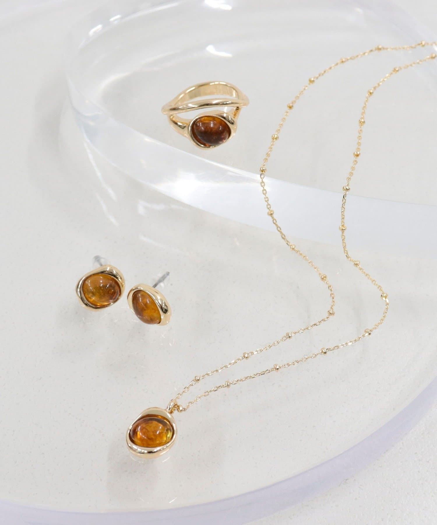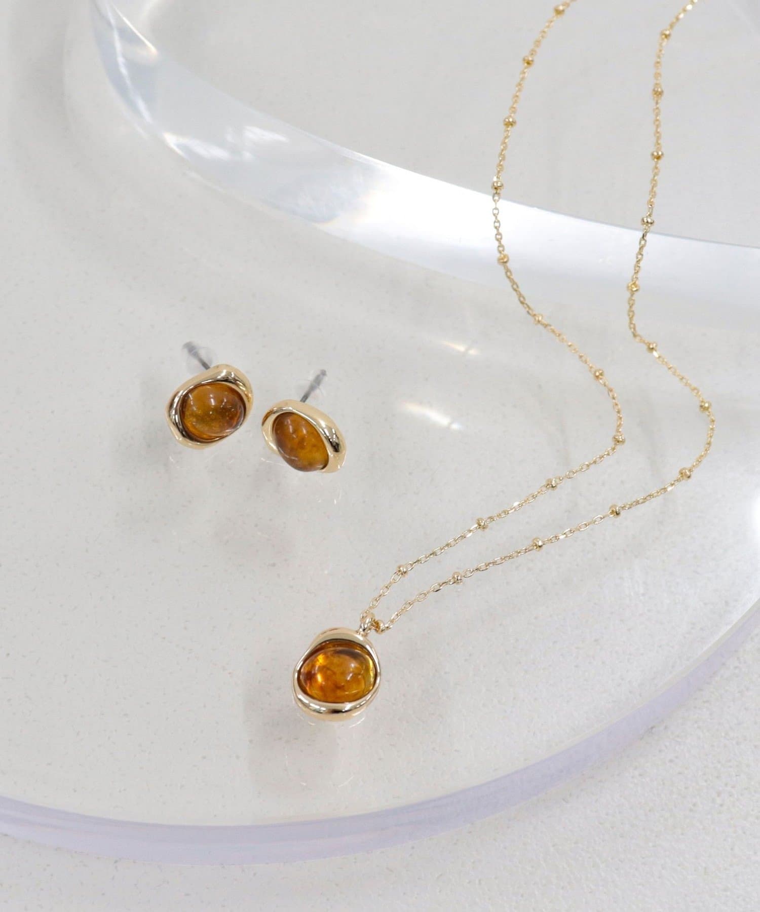 ・ころんとしたフォルムが可愛いフェイクストーンがポイントのネックレスです