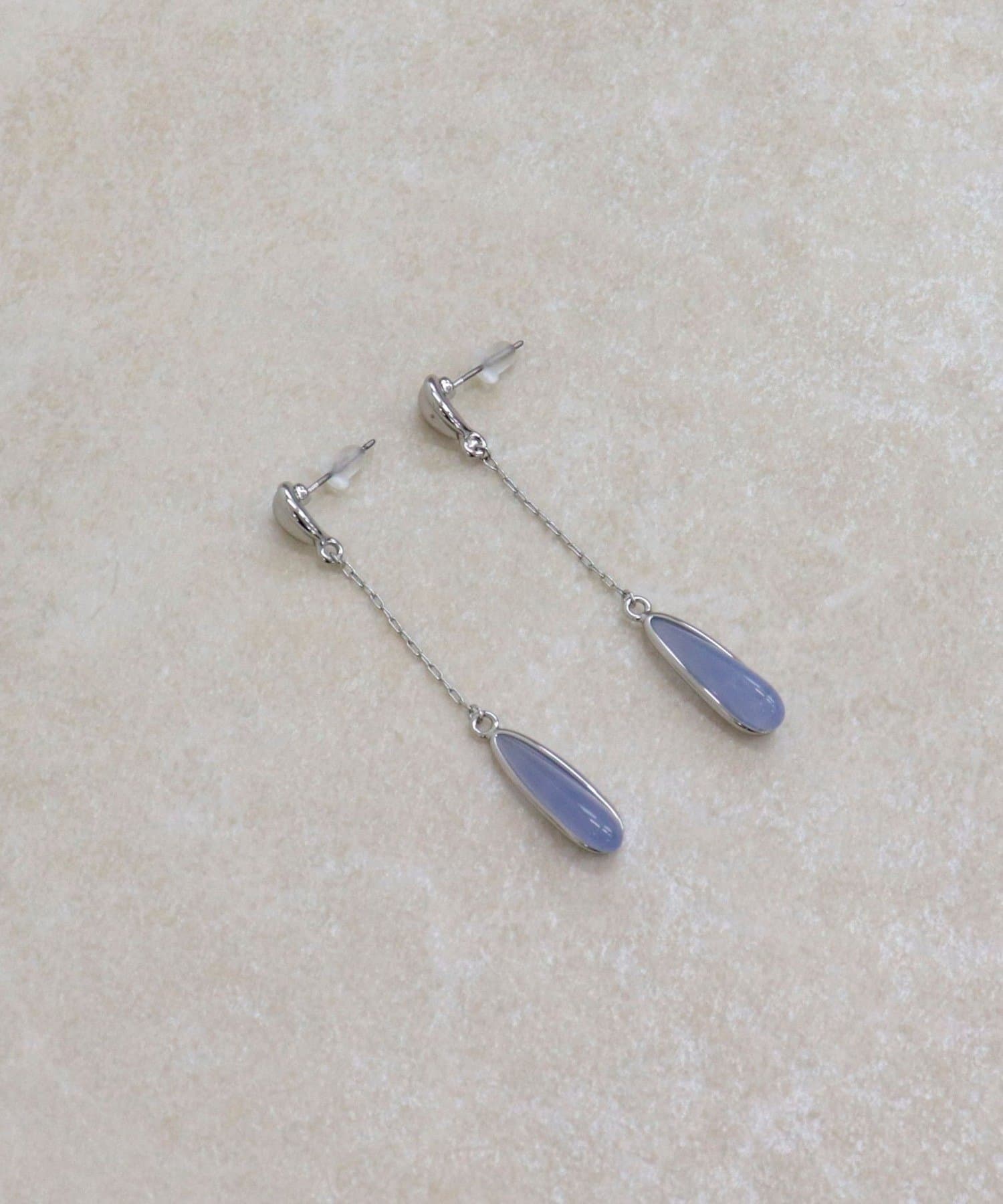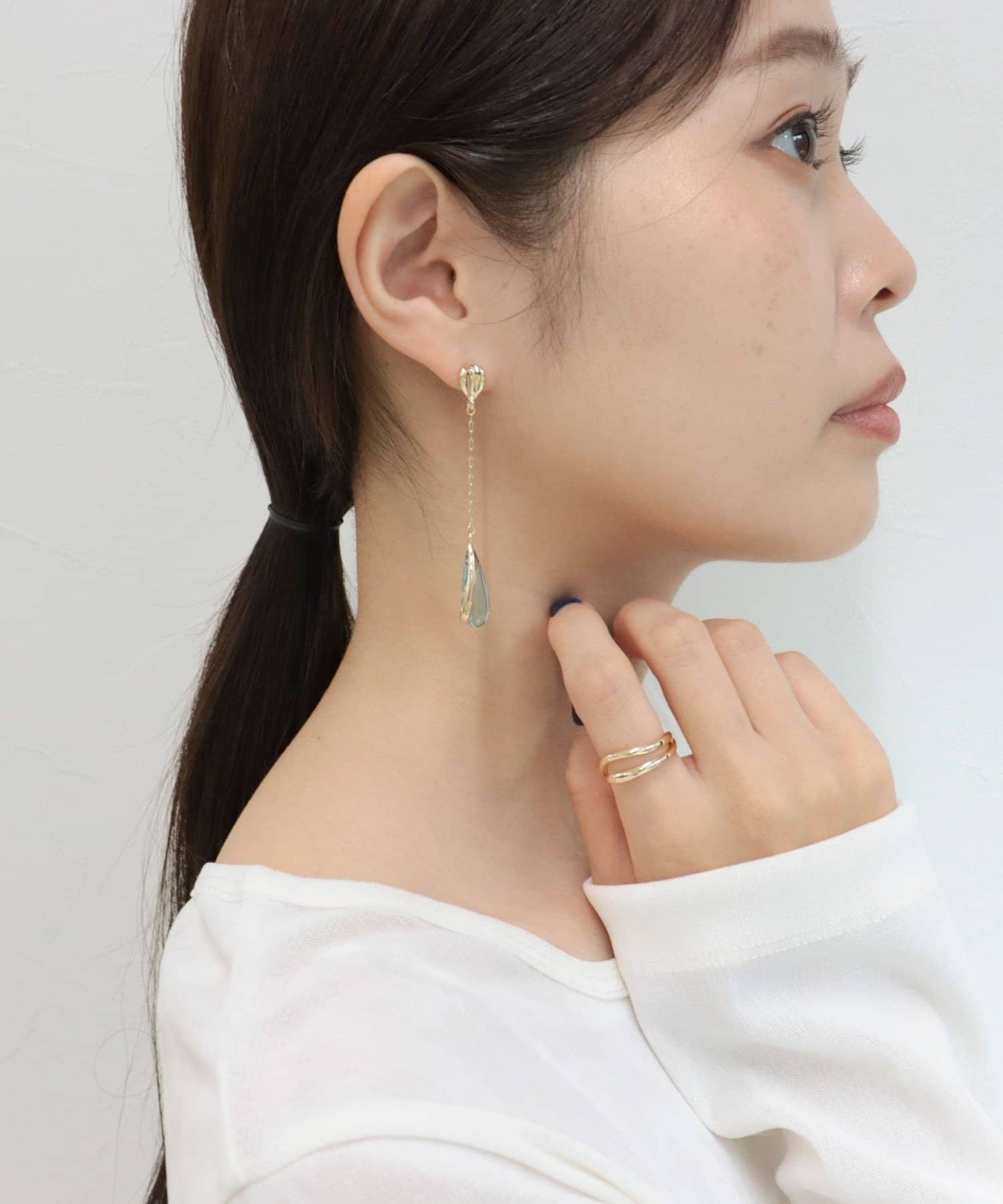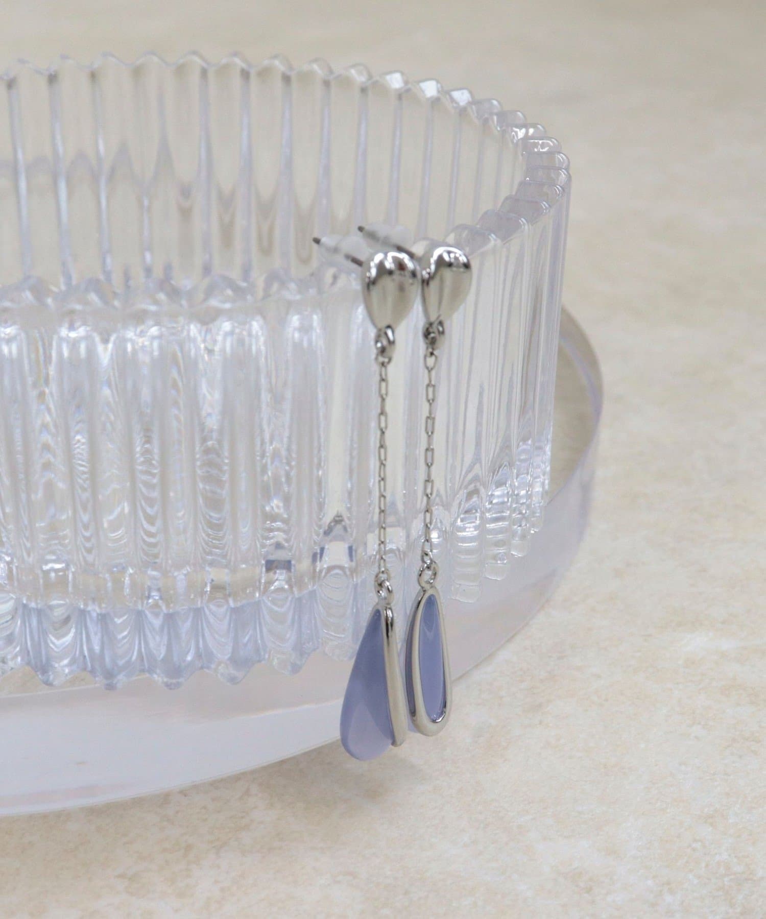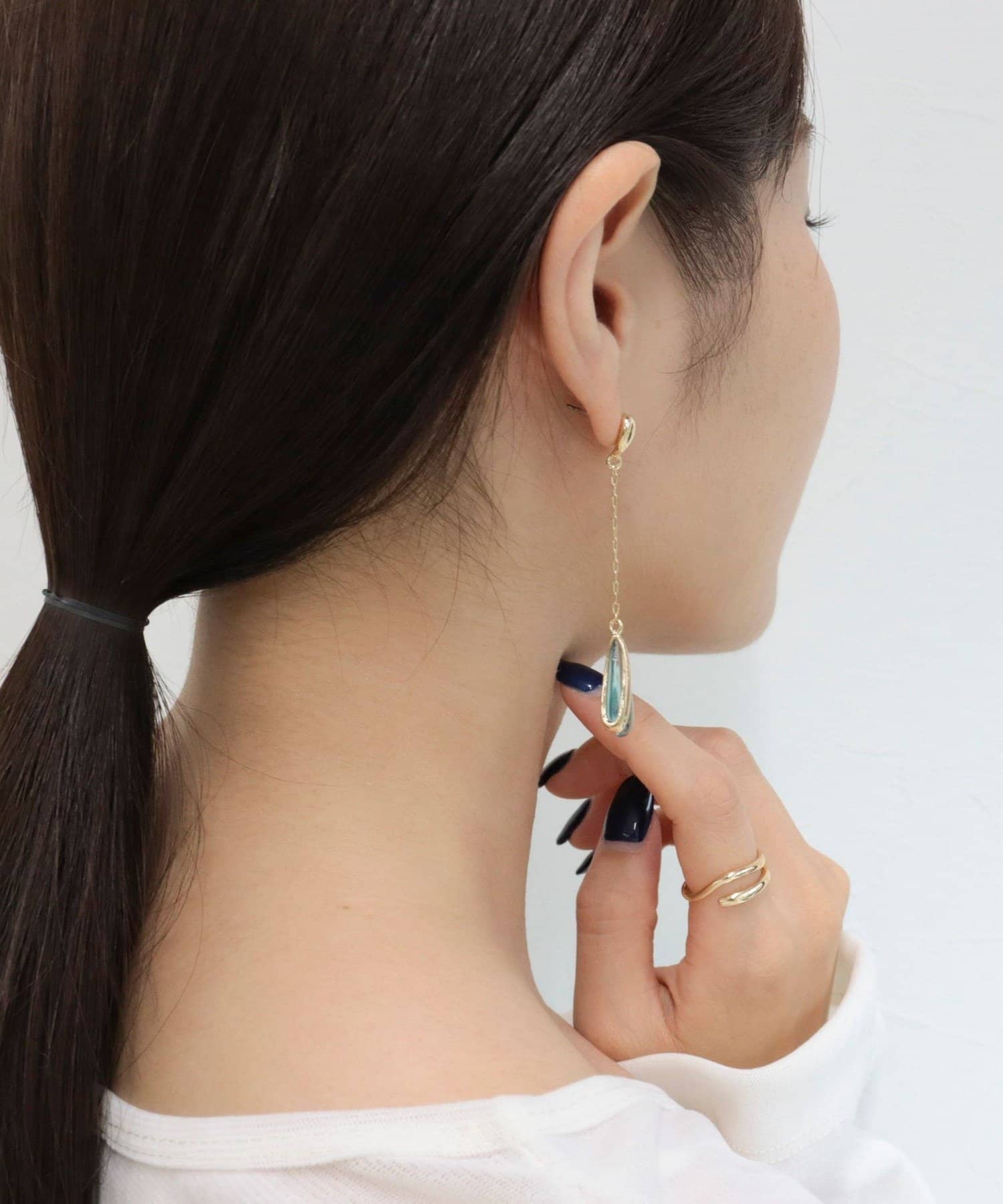 ・華奢なチェーンに、艶のあるフレームと透け感のあるモチーフを組み合わせたデザインが目を惹くピアス
